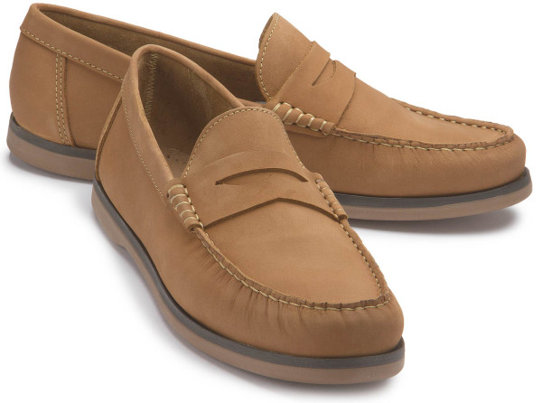 Slipper aus hochwertigem braunem Rauleder mit Zierstichen sind zeitlos elegant. Das Rauleder bietet Haltbarkeit und Komfort, während die Zierstiche einen raffinierten Akzent setzen. Diese vielseitigen Schuhe passen zu jedem Outfit und bieten sowohl auf Booten als auch an Land guten Halt. Ein Must-have für stilbewusste Schuhliebhaber.