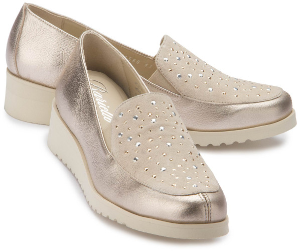 Der stilvolle Slipper von Bariello überzeugt durch sein klares Design und hochwertigem Leder. Der komfortable Blockabsatz und der elastische Einsatz an der Seite sorgen für ein angenehmes Tragegefühl – ideal für lange Tage im Büro oder unterwegs. Die dezente Plateausohle rundet den Schuh funktional und modern ab.