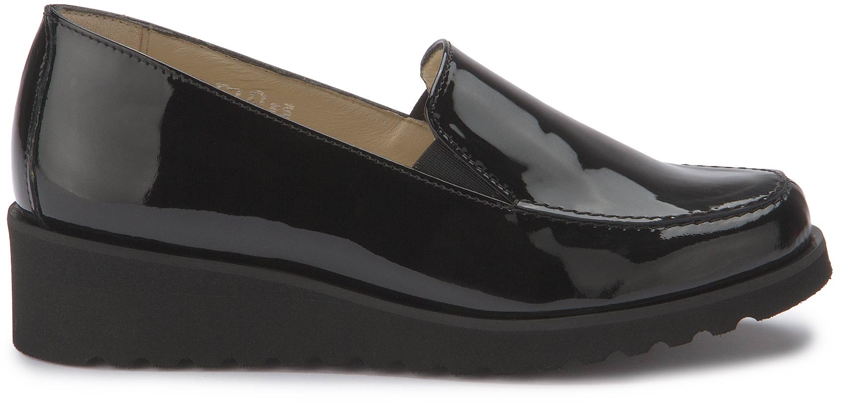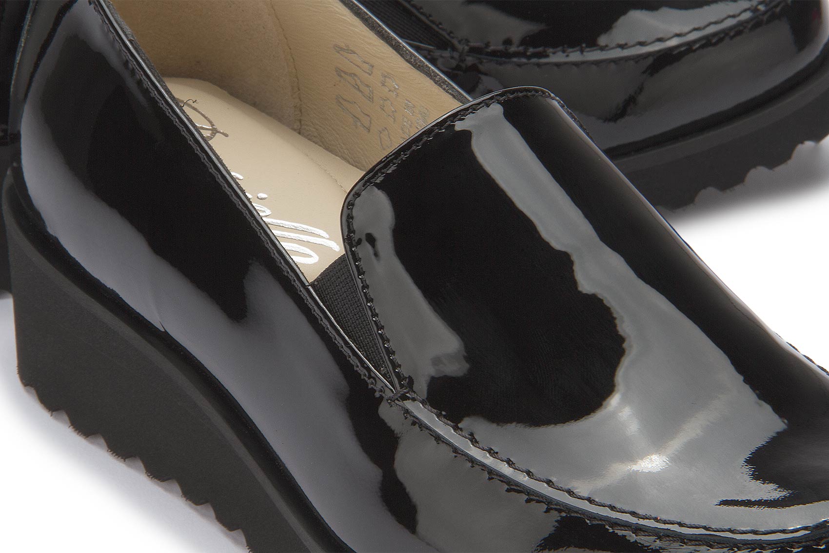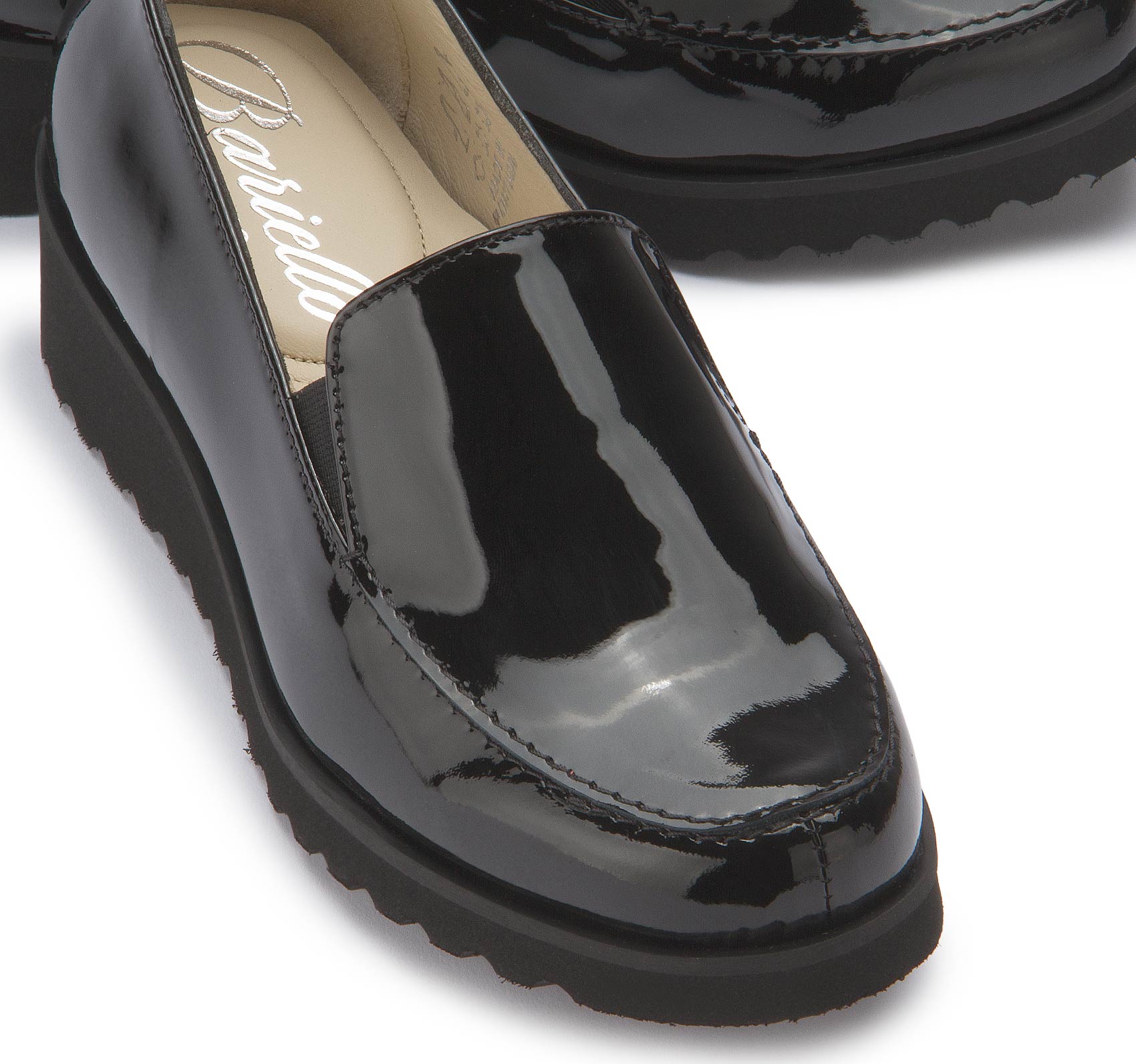 Der stilvolle Slipper von Bariello überzeugt durch sein klares Design und hochwertiges Lackleder. Der komfortable Blockabsatz und der elastische Einsatz an der Seite sorgen für ein angenehmes Tragegefühl – ideal für lange Tage im Büro oder unterwegs. Die dezente Plateausohle rundet den Schuh funktional und modern ab.