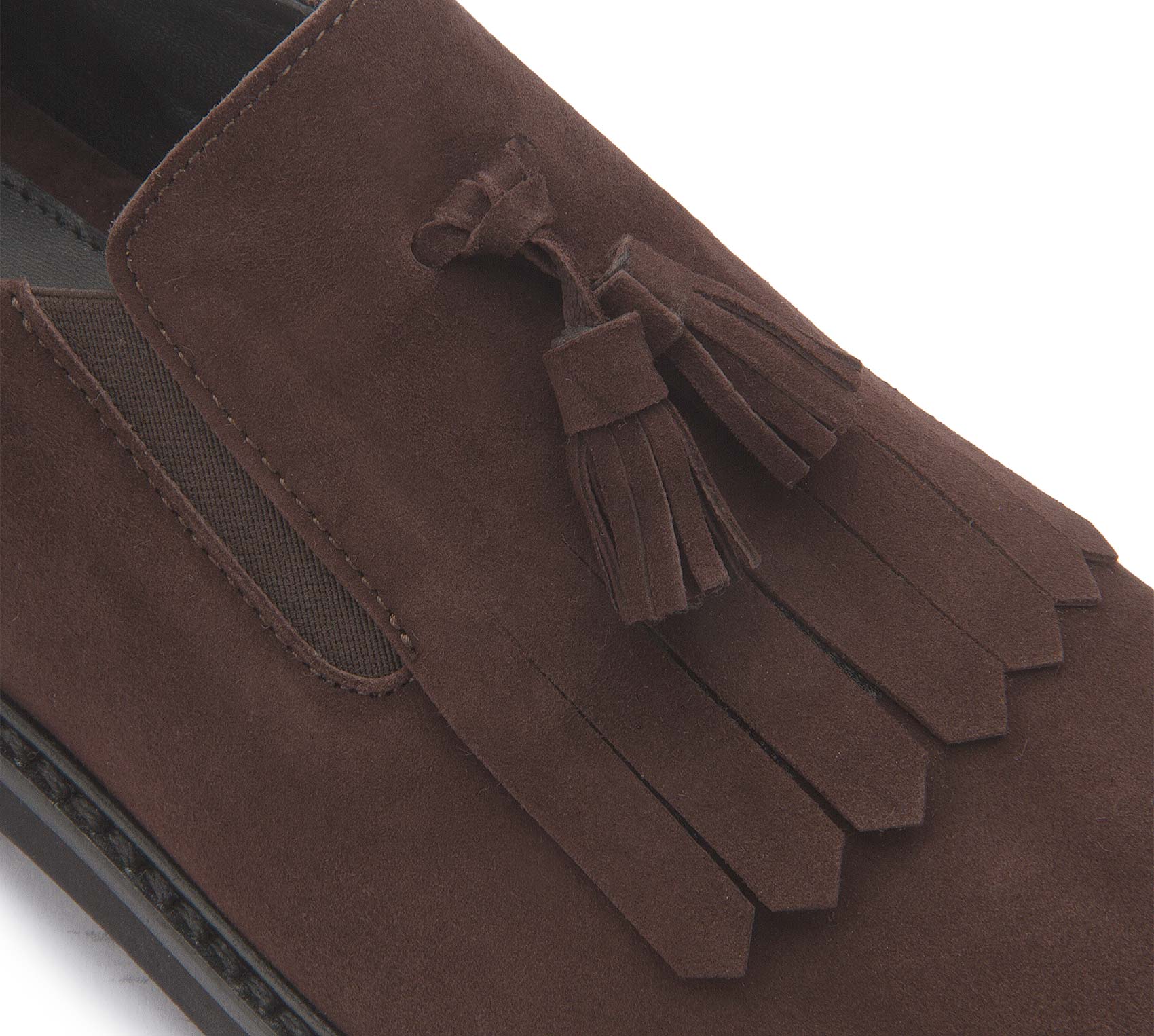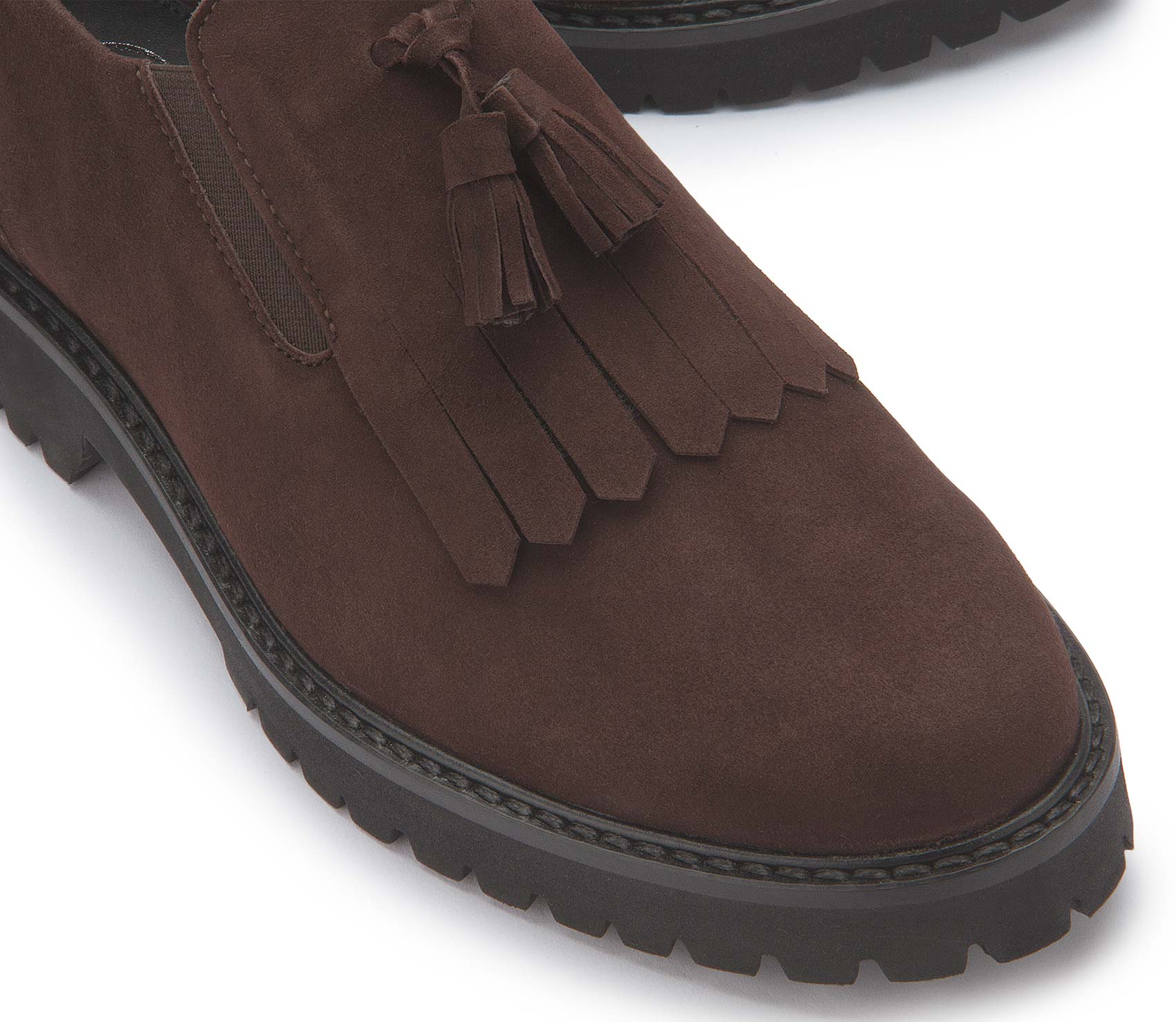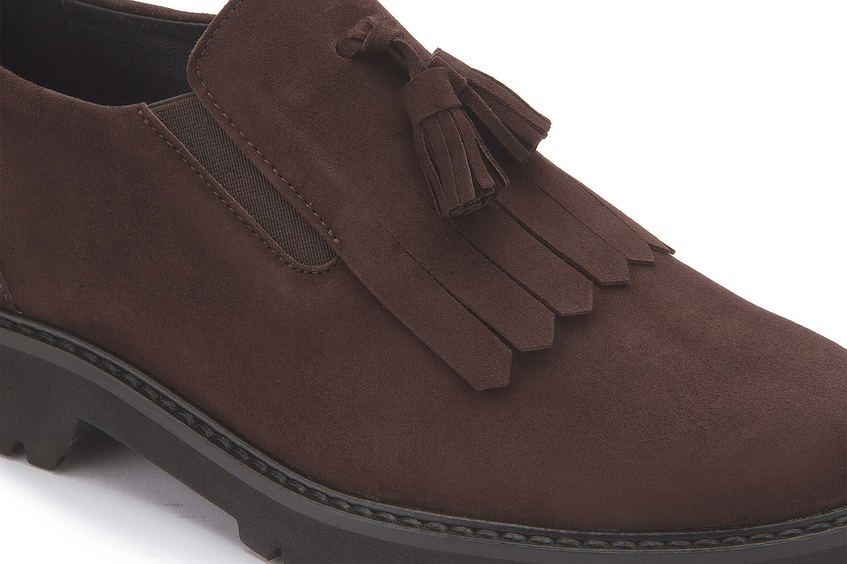 Dieser Bariello Schuh vereint zeitlose Eleganz mit modernem Komfort. Aus hochwertigem Rauleder gefertigt, überzeugt er durch seine markante Profilsohle und stilvolle Fransen-Quaste auf dem Spann. Ideal für stilbewusste Auftritte – sowohl im Alltag als auch zu besonderen Anlässen.