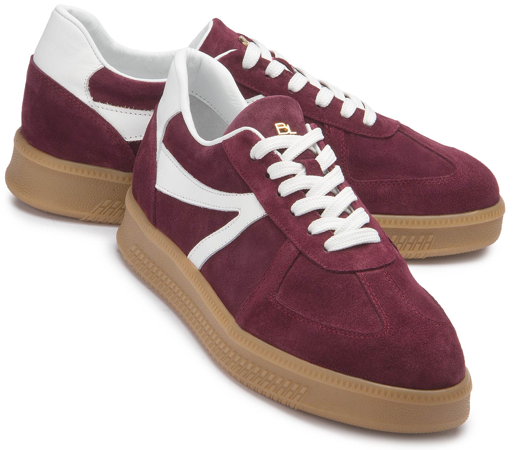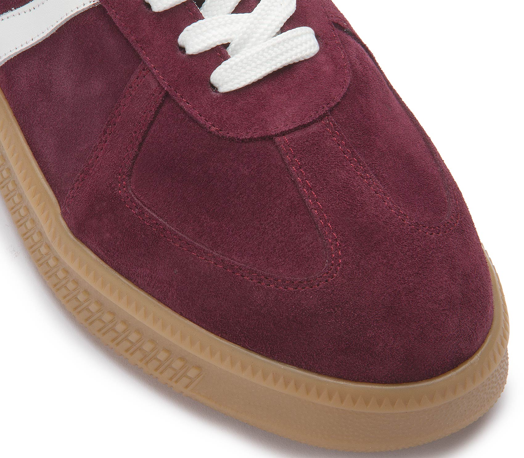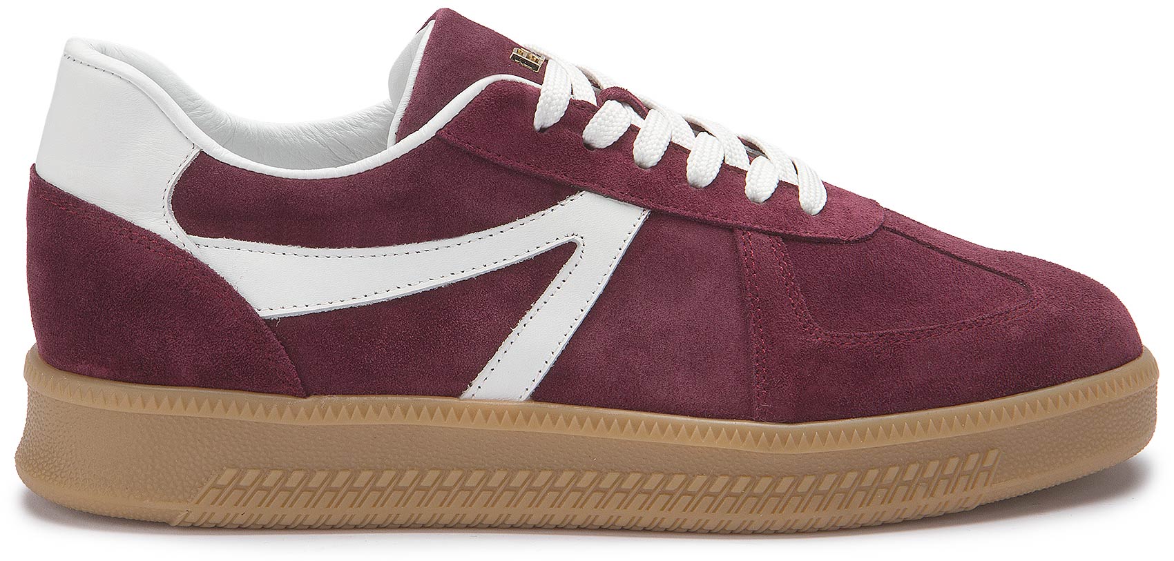 Dieser Sneaker von Miotti überzeugt mit edlem Rauleder in sattem Bordeauxrot und weißen Leder-Details, die für sportliche Kontraste sorgen. Die robuste Gummisohle garantiert angenehmen Tragekomfort, während das moderne Design stilvolle Akzente setzt. Ein idealer Schuh für lässige Freizeit-Looks mit besonderem Charakter.