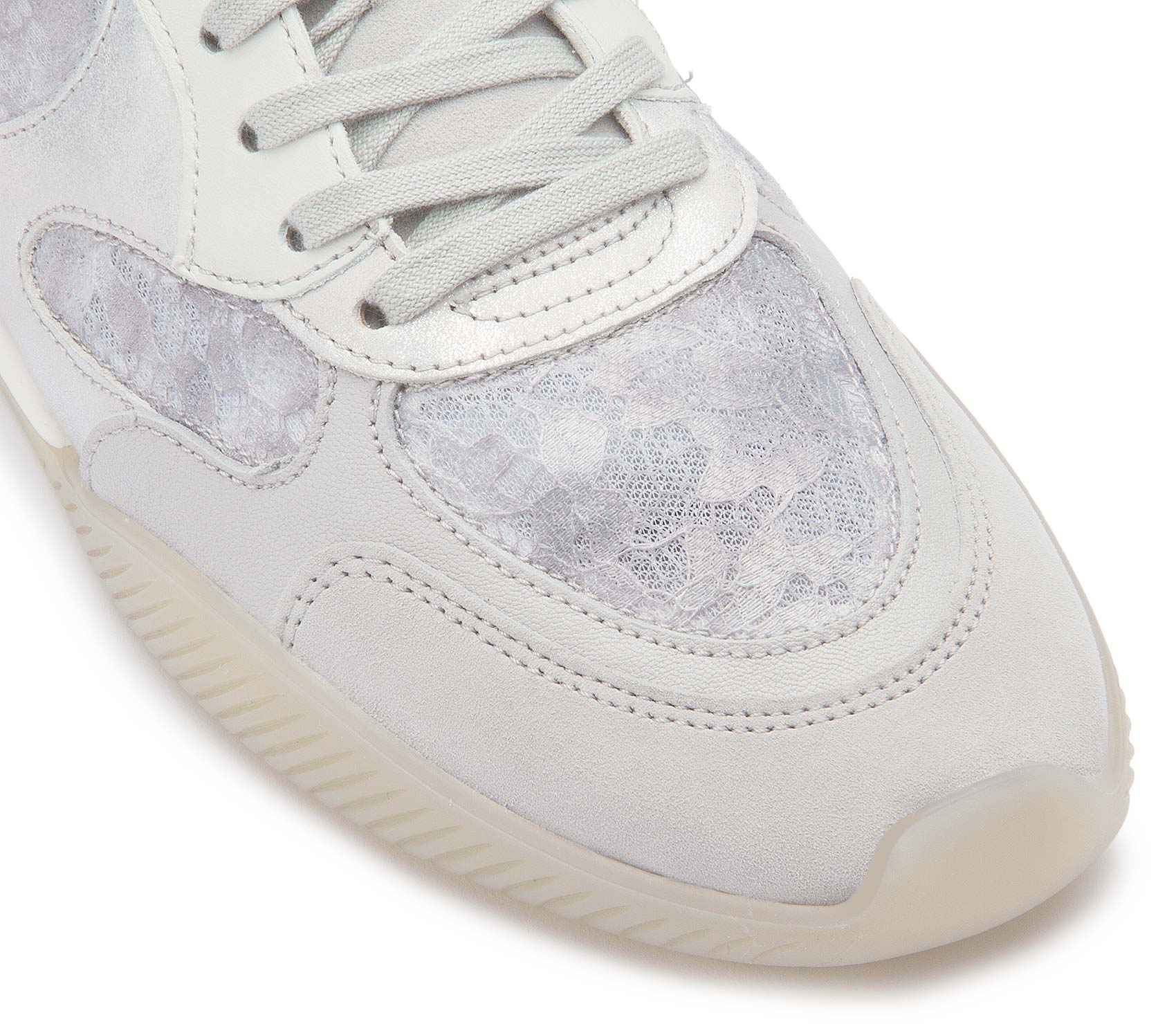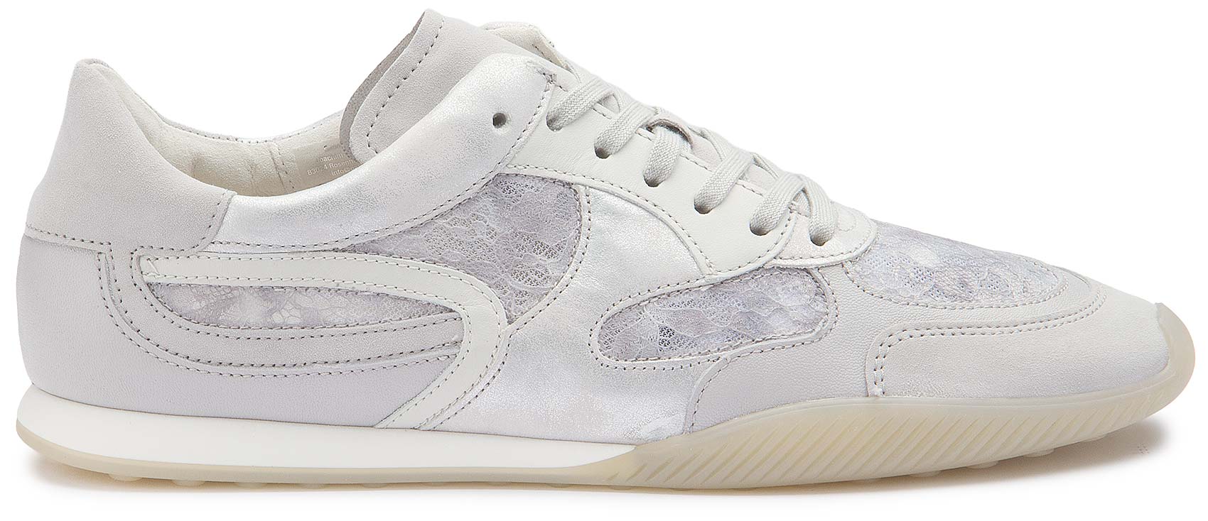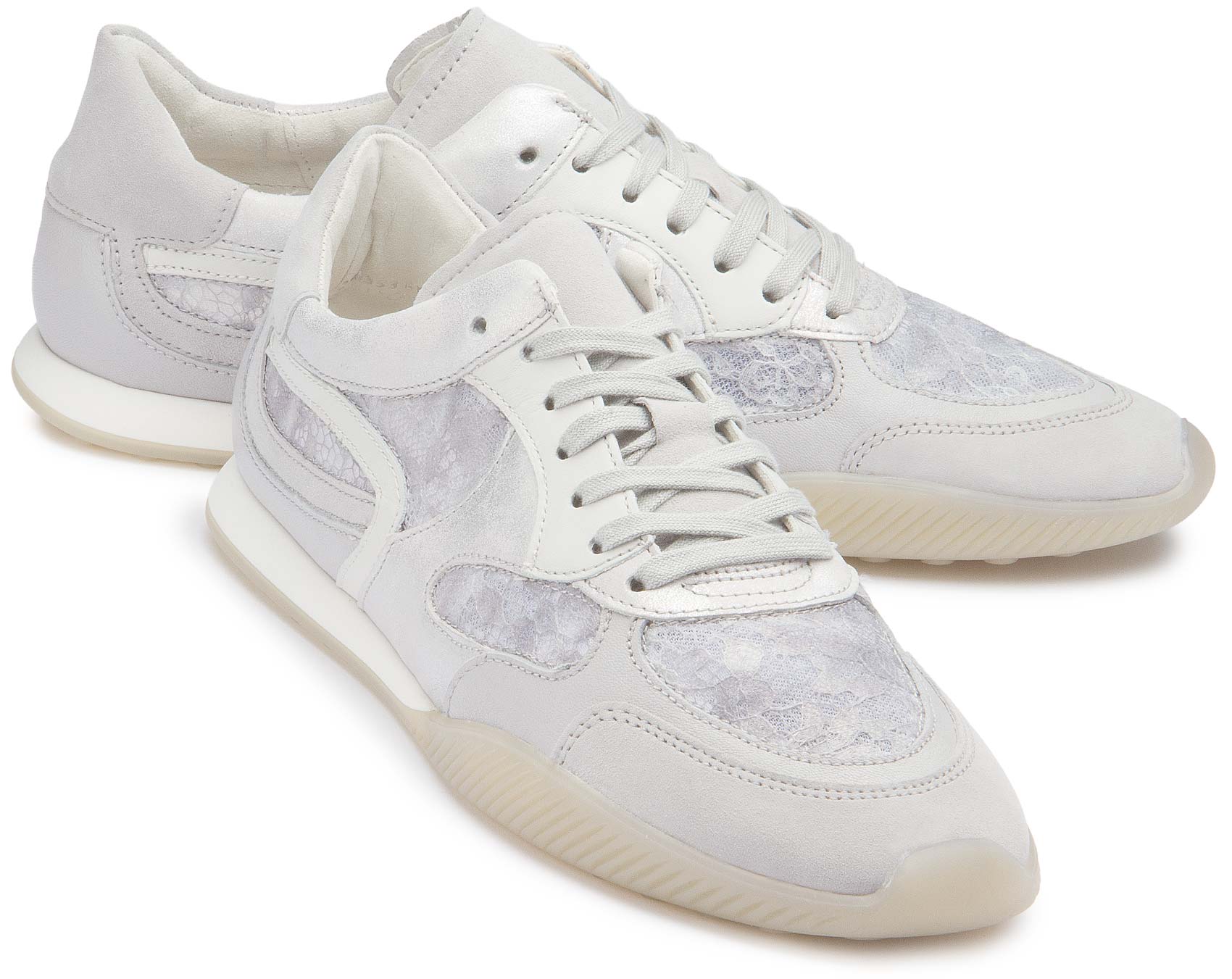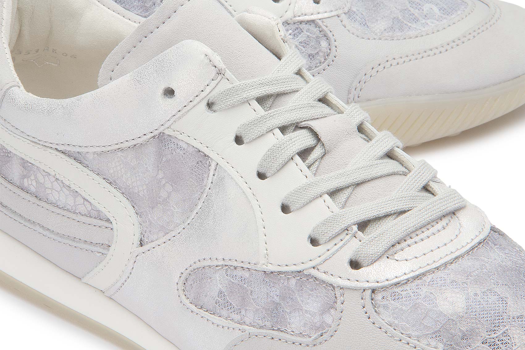 Dieser elegante Sneaker von Gabor besticht durch eine harmonische Kombination aus hellem Leder und edlen, leicht schimmernden Einsätzen. Die flexible Sohle und die bequeme Passform sorgen für angenehmen Tragekomfort den ganzen Tag. Ein stilvoller Allrounder, der sportliche Looks ebenso ergänzt wie feminine Outfits.