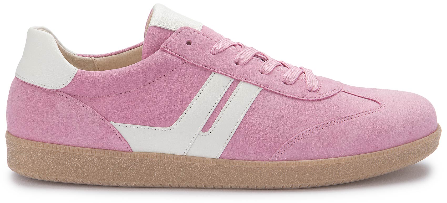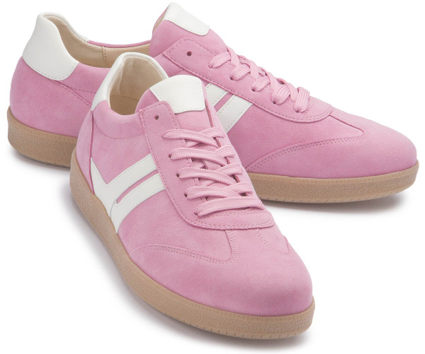 Der rosa Sneaker von Gabor aus hochwertigem Leder überzeugt mit Lederfutter, weißen Highlights und einem praktischen Wechselfußbett. Die Schnürung sorgt für eine optimale Passform und macht ihn zum perfekten Alltagsbegleiter für modebewusste Frauen.
