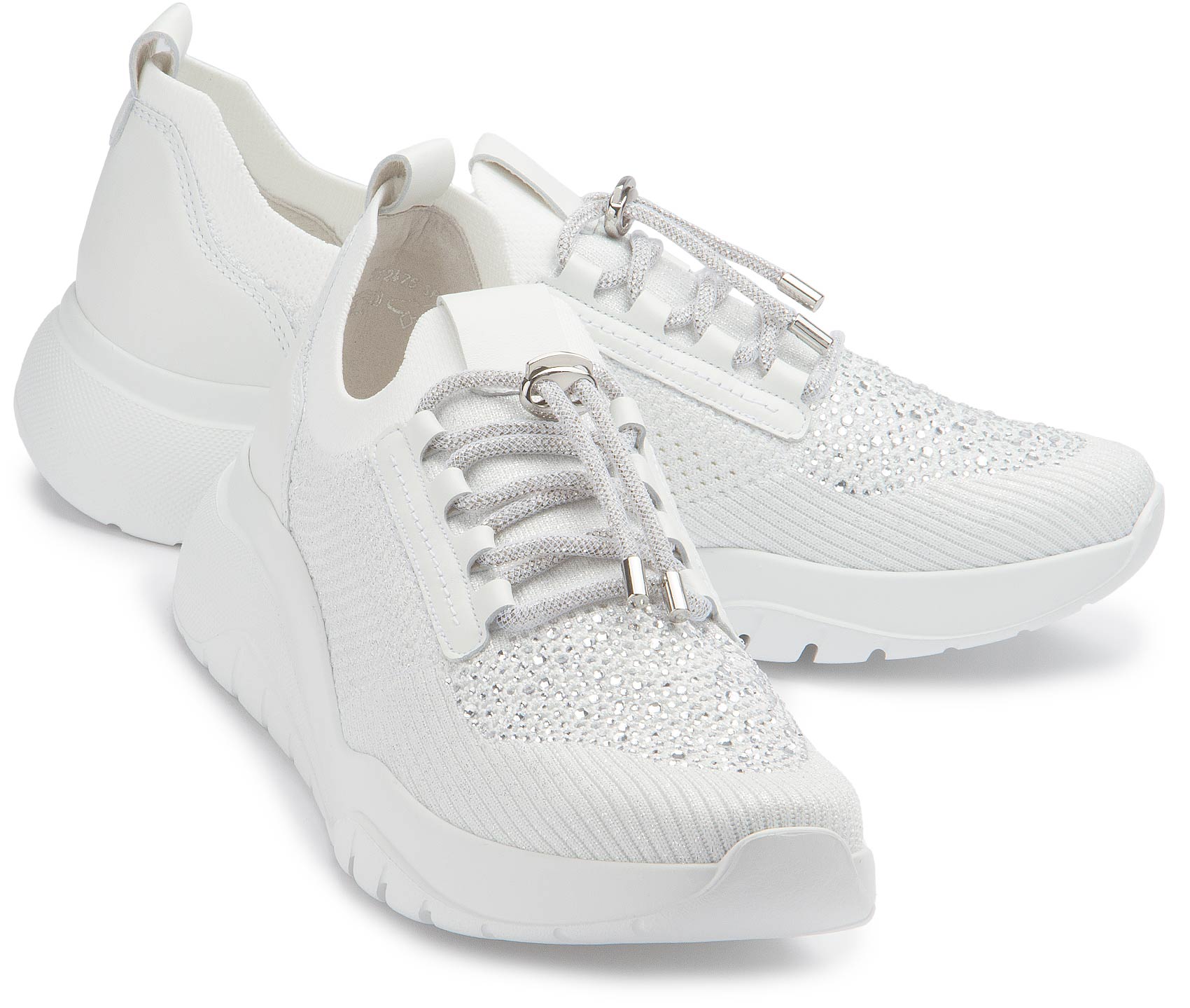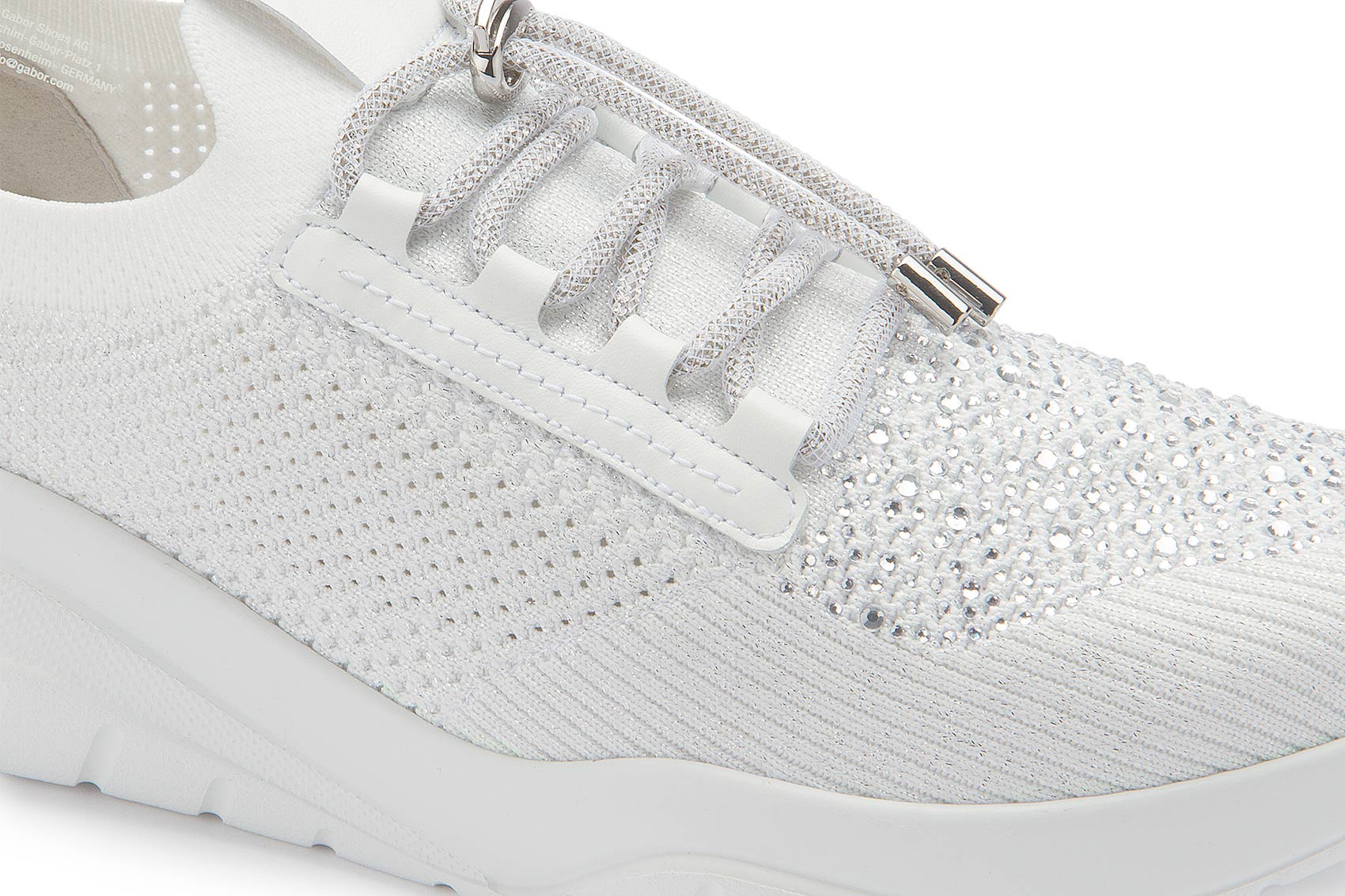 Style und Comfort garantiert dieser Sneaker von Gabor in Weiß. Das Mesh-Material ist nicht nur atmungsaktiv, sondern passt sich dem Fuß optimal an. Die Steinchen auf der Schuhspitze garantieren den großen Auftritt.