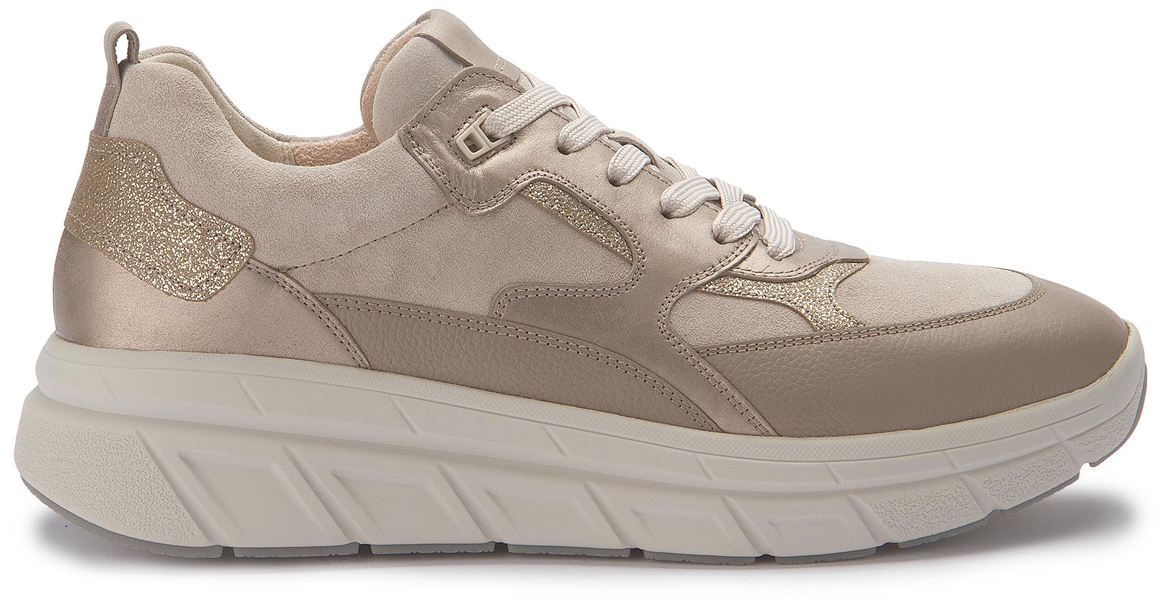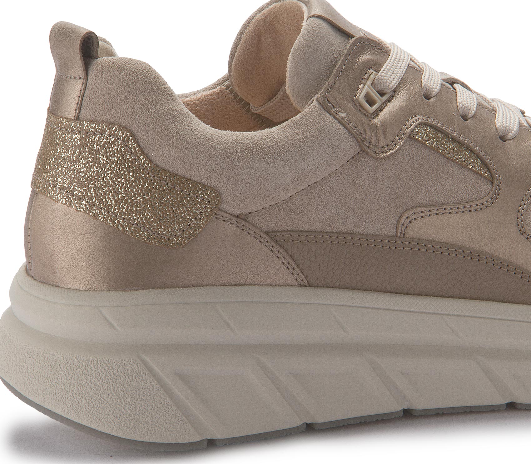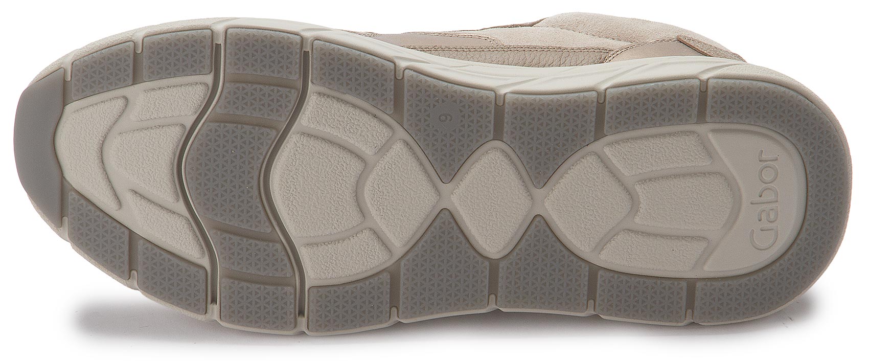 Dieser sportive Sneaker von Gabor vereint trendiges Design mit höchstem Komfort. Die markante Plateausohle sorgt für einen modernen Look und bietet zugleich ein angenehm leichtes Laufgefühl. Dezente Glanzeinsätze setzen modische Akzente und machen den Schuh zum vielseitigen Allrounder für Freizeit und Alltag.