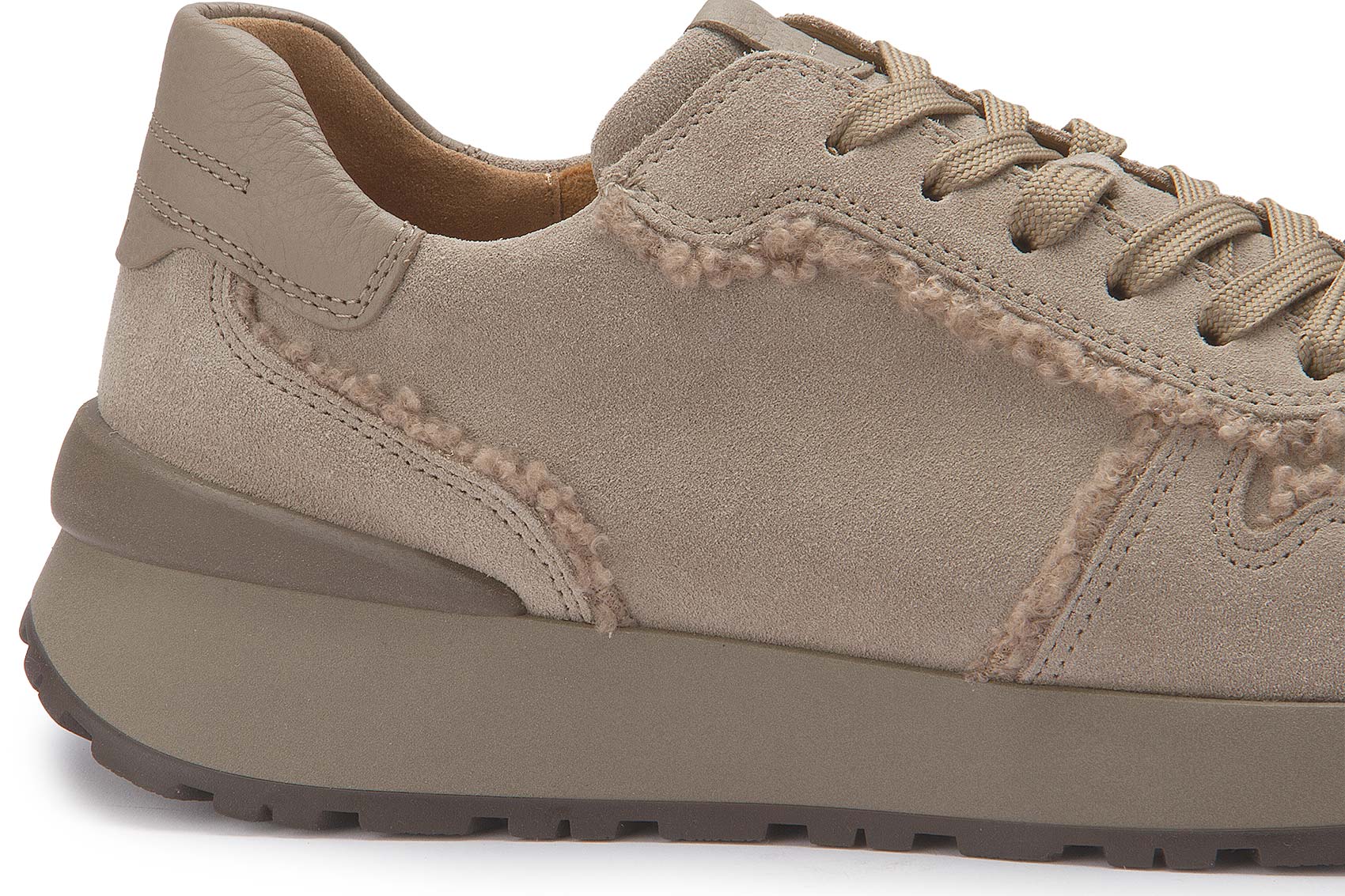 Dieser Sneaker aus softem Rauleder in Beige überzeugt mit seinem cleanen, zeitlosen Design und lässt sich mühelos zu verschiedensten Outfits kombinieren. Die dezente Farbgebung macht ihn zum idealen Begleiter für jeden Tag. Dank der herausnehmbaren Innensohle ist auch für zusätzlichen Komfort gesorgt – perfekt für einen stilvollen, entspannten Auftritt.