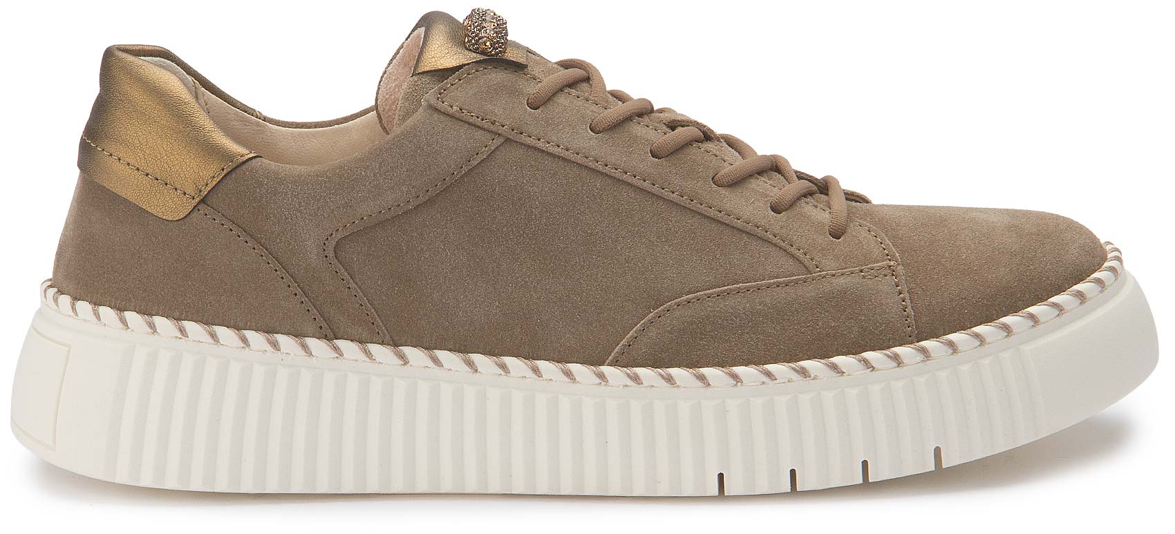 Dieser sportlich-elegante Sneaker aus weichem, braunem Rauleder verleiht deinem Outfit einen natürlichen Farbakzent. Sein klares, zurückhaltendes Design passt perfekt zu Jeans, Chinos oder auch Röcken – ganz gleich, ob im Alltag oder in der Freizeit. Die herausnehmbare Innensohle sorgt für ein angenehmes Tragegefühl und macht den Schuh zu einem vielseitigen Begleiter für jeden Tag.