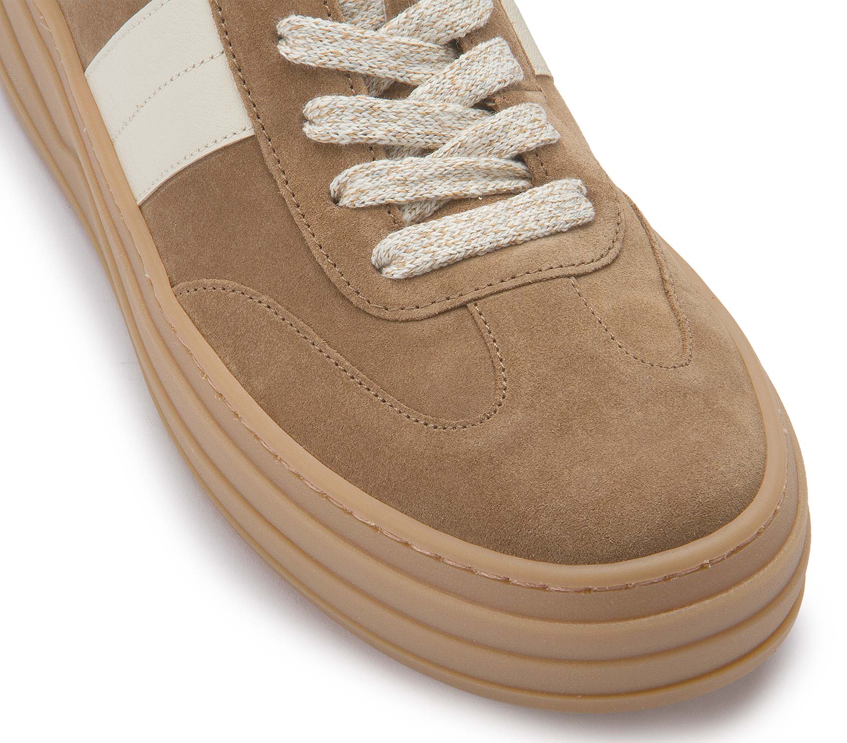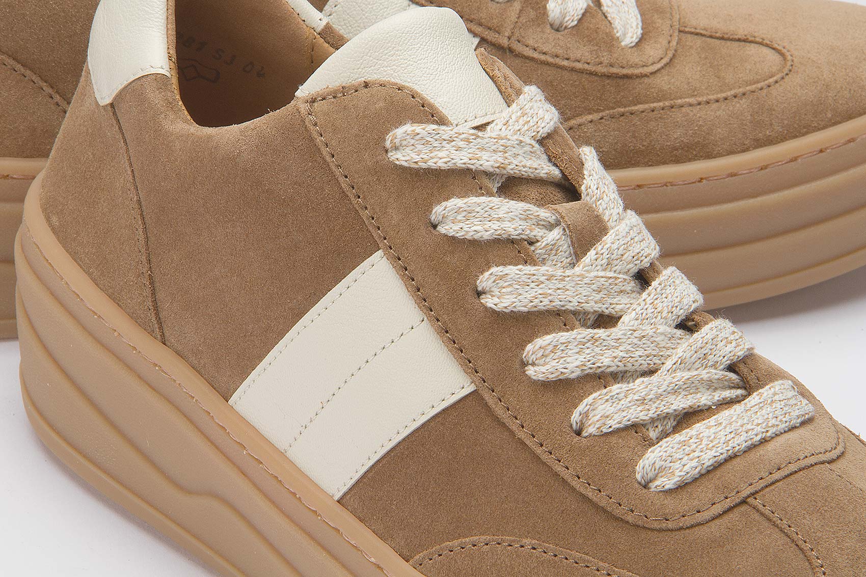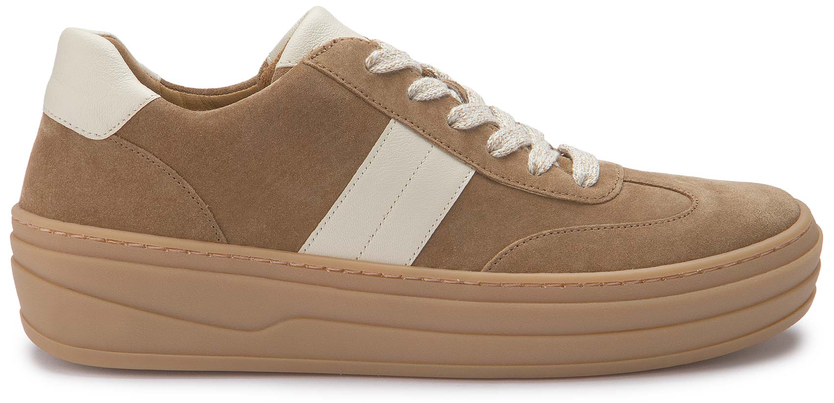 Der Sneaker von Gabor vereint sportlichen Chic mit hohem Tragekomfort. Aus weichem Rauleder gefertigt und mit einer markanten Plateausohle ausgestattet, sorgt er für einen modernen Auftritt und ein angenehmes Laufgefühl – ideal für stilbewusste Alltagslooks.