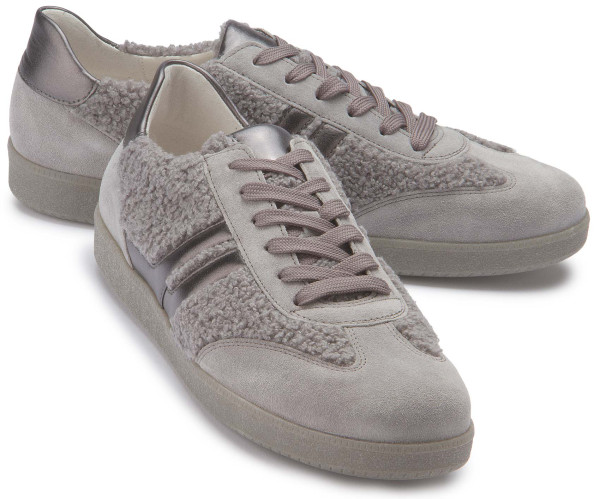 Dieser modische Sneaker von Gabor kombiniert weiches Rauleder mit kuscheligen Textileinsätzen und sorgt so für einen stylischen und zugleich gemütlichen Look. Die dezente Farbgebung und die edlen Details machen ihn zum perfekten Begleiter für entspannte Outfits mit einem Hauch Eleganz.