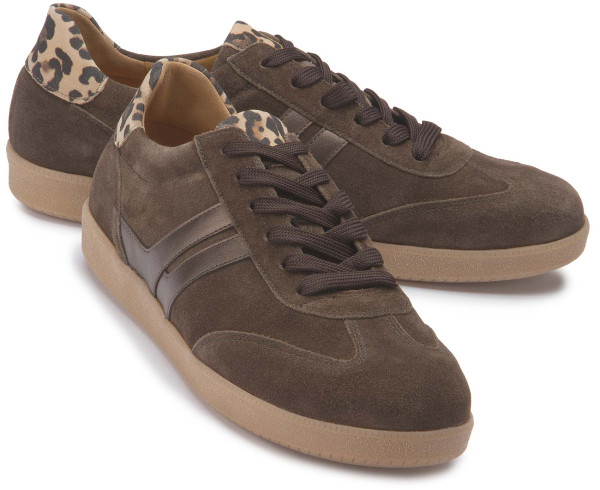 Dieser sportliche Gabor Sneaker überzeugt mit einem edlen Veloursleder-Finish und einem trendigen Leo-Print an Zunge und Ferse. Die harmonische Farbkombination und die komfortable Passform machen ihn zum idealen Begleiter für modische Casual-Looks mit dem gewissen Etwas.
