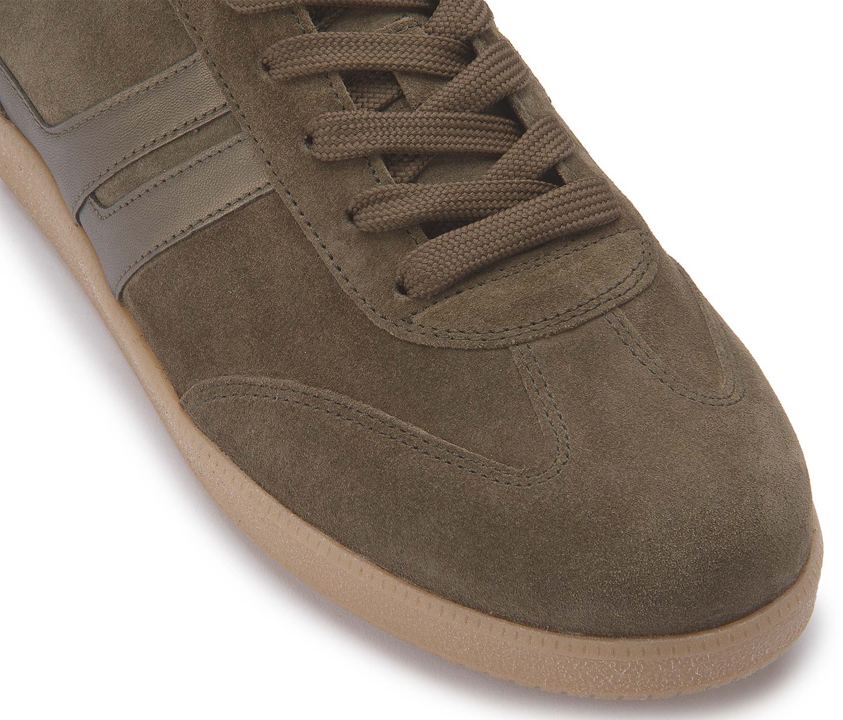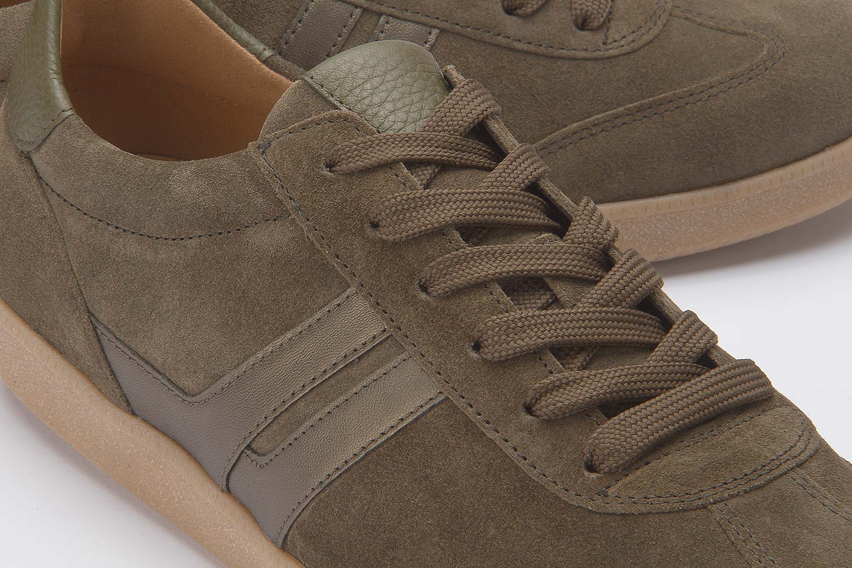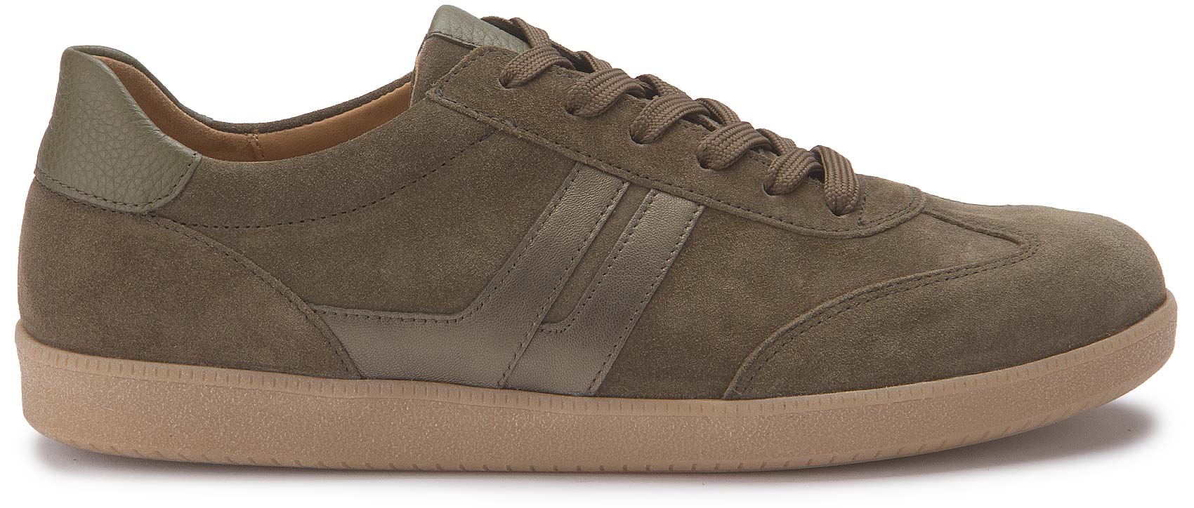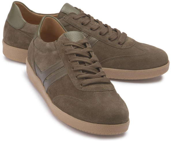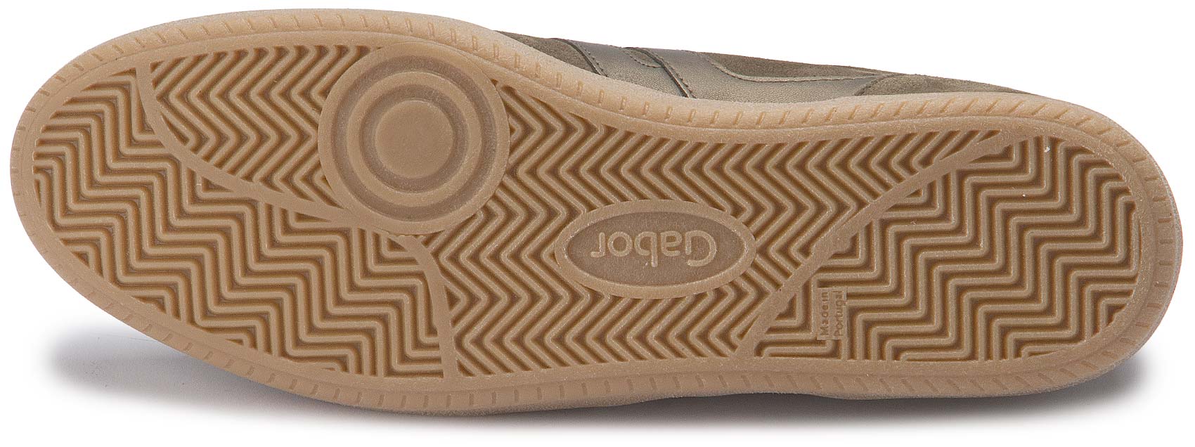 Der olivgrüne Sneaker von Gabor aus hochwertigem Rauleder überzeugt mit Lederfutter, dezenten Highlights und einem praktischen Wechselfußbett. Die Schnürung sorgt für eine optimale Passform und macht ihn zum perfekten Alltagsbegleiter.