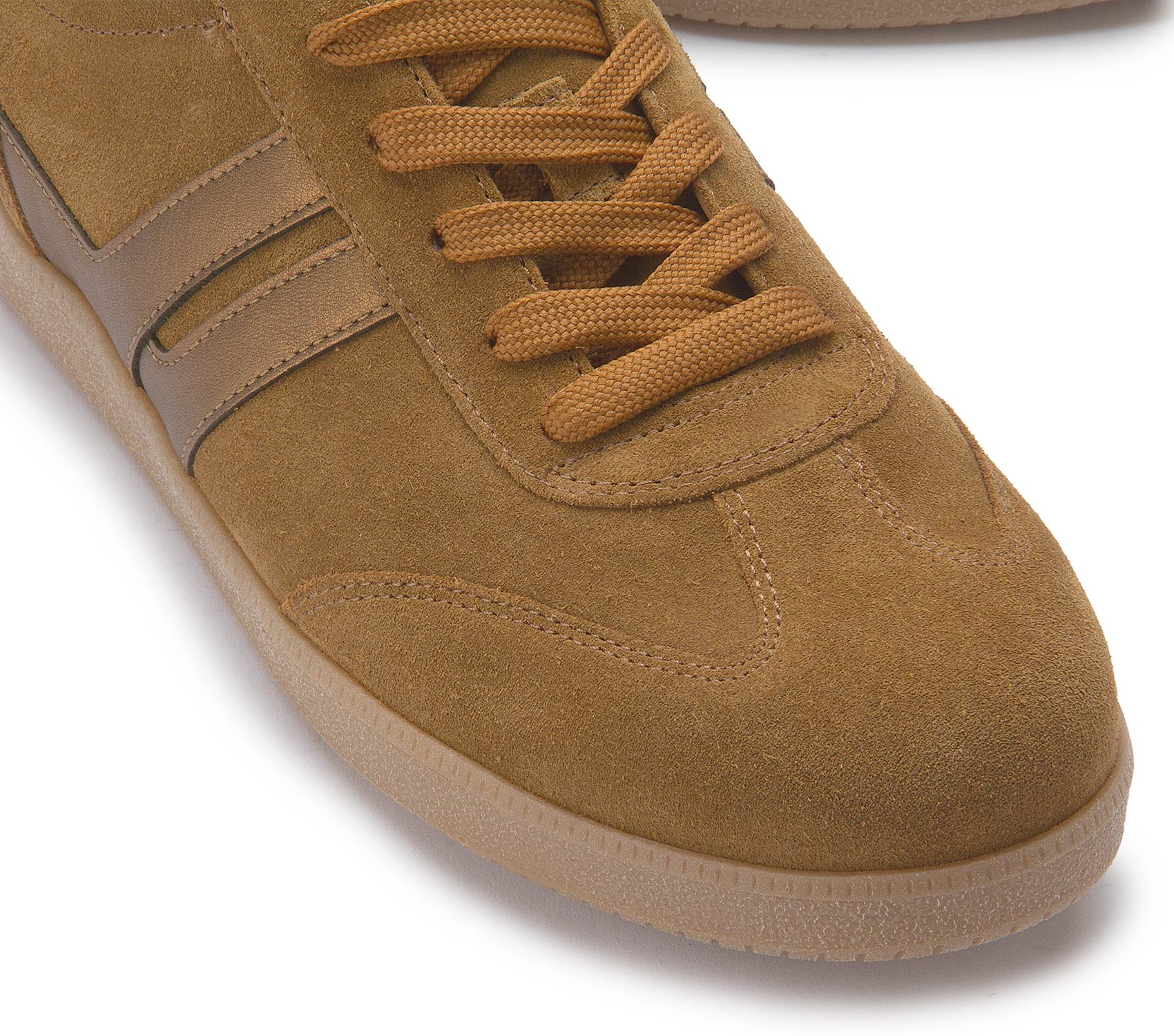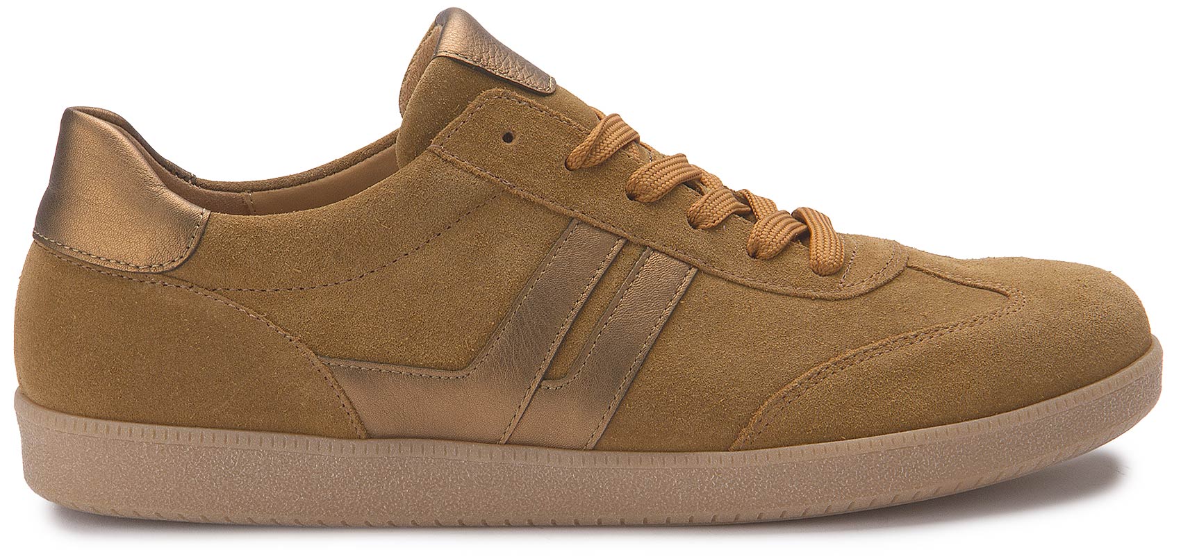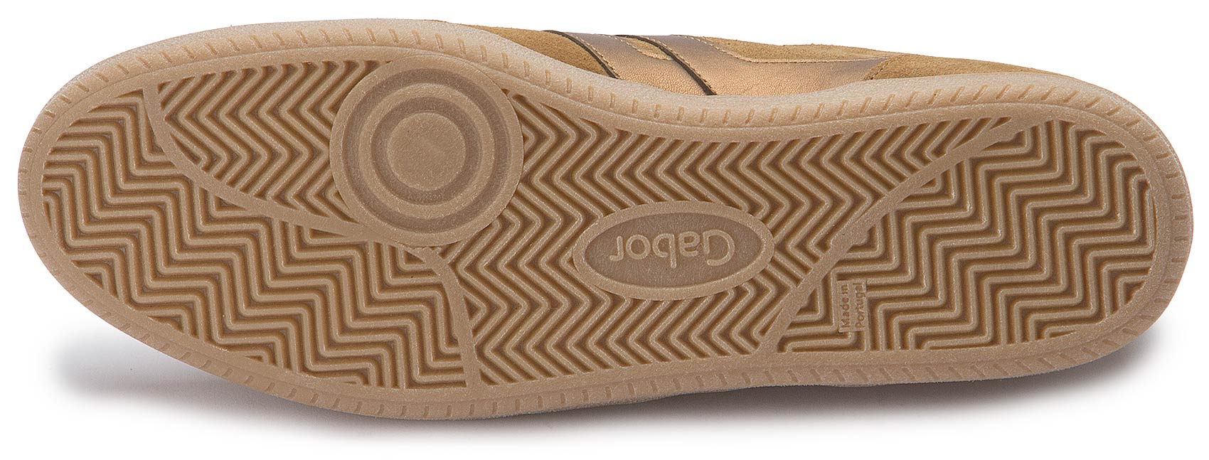 Der braunfarbene Sneaker von Gabor aus hochwertigem Rauleder überzeugt mit Lederfutter, dezenten Highlights und einem praktischen Wechselfußbett. Die Schnürung sorgt für eine optimale Passform und macht ihn zum perfekten Alltagsbegleiter.