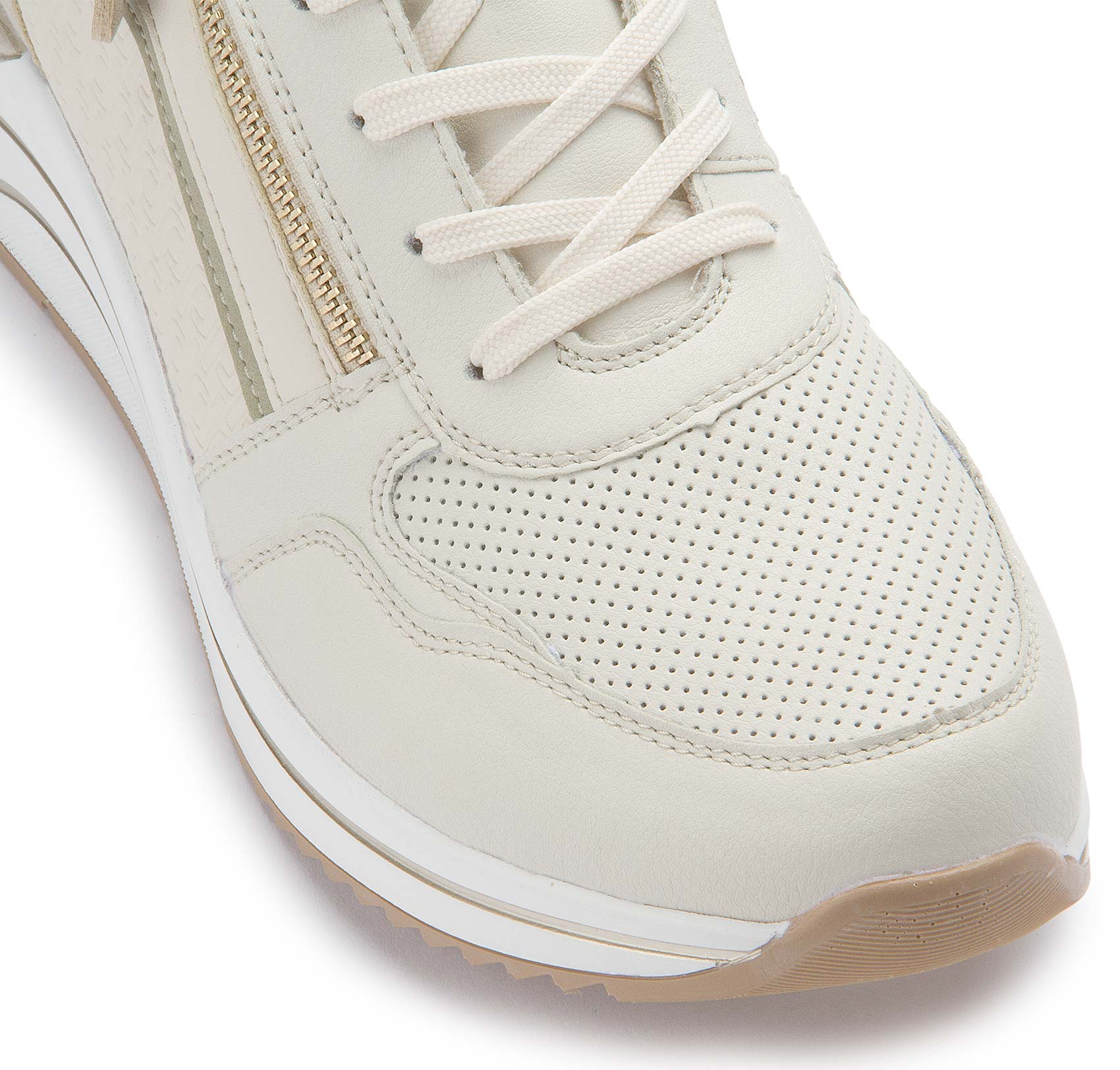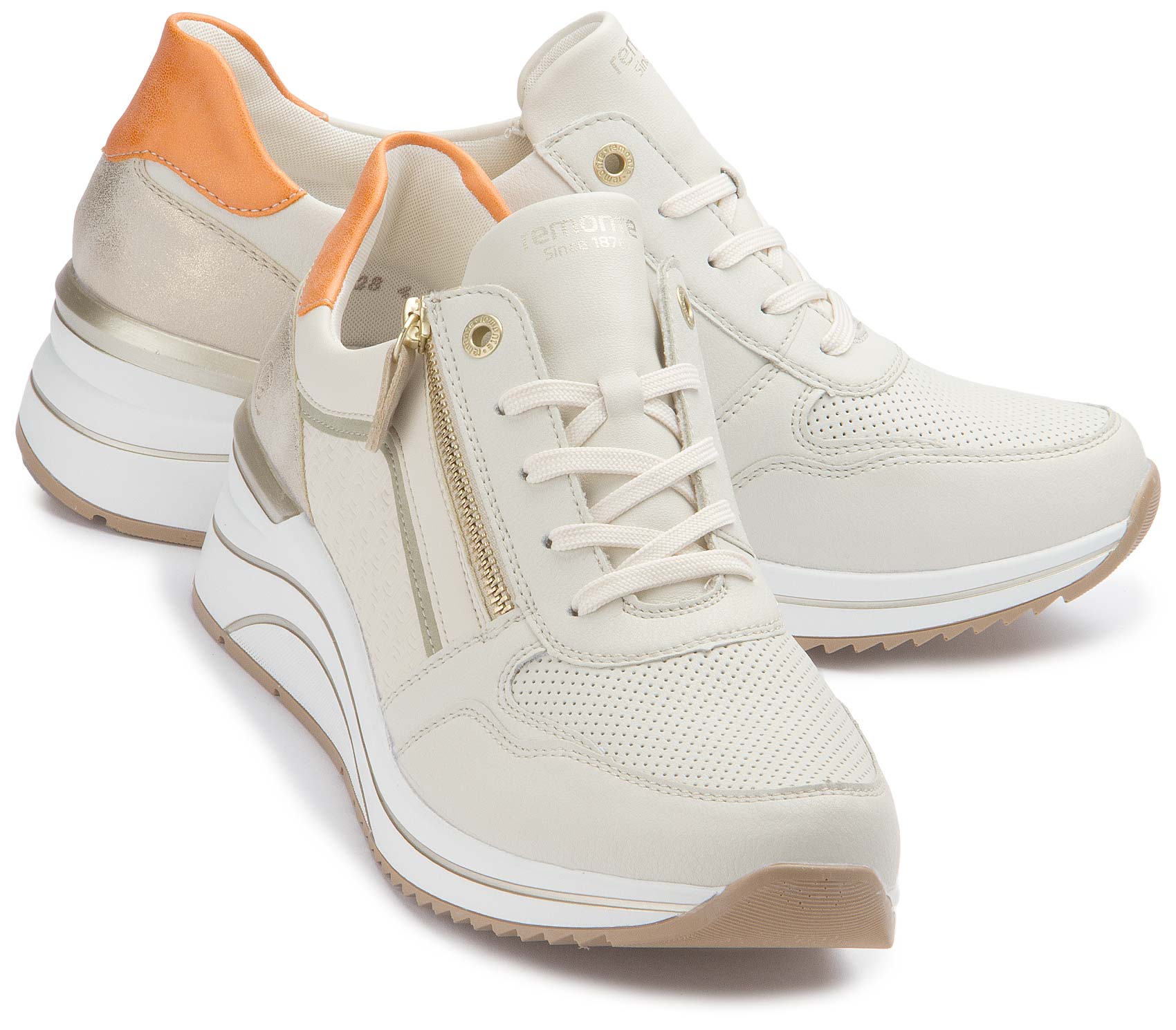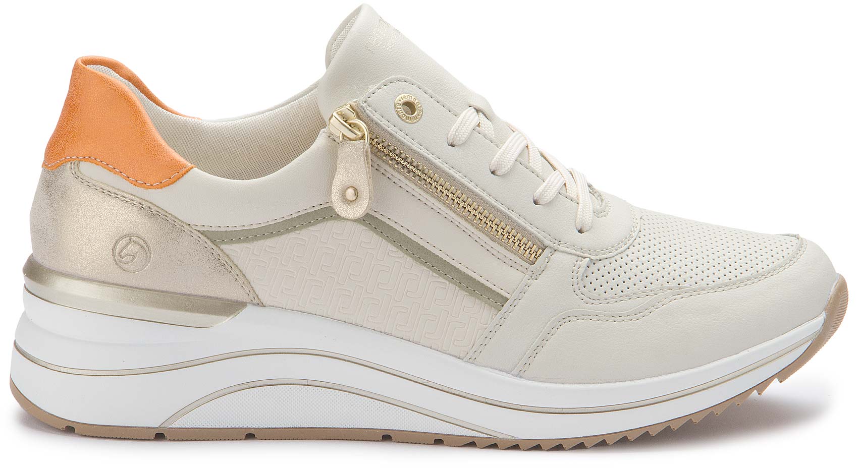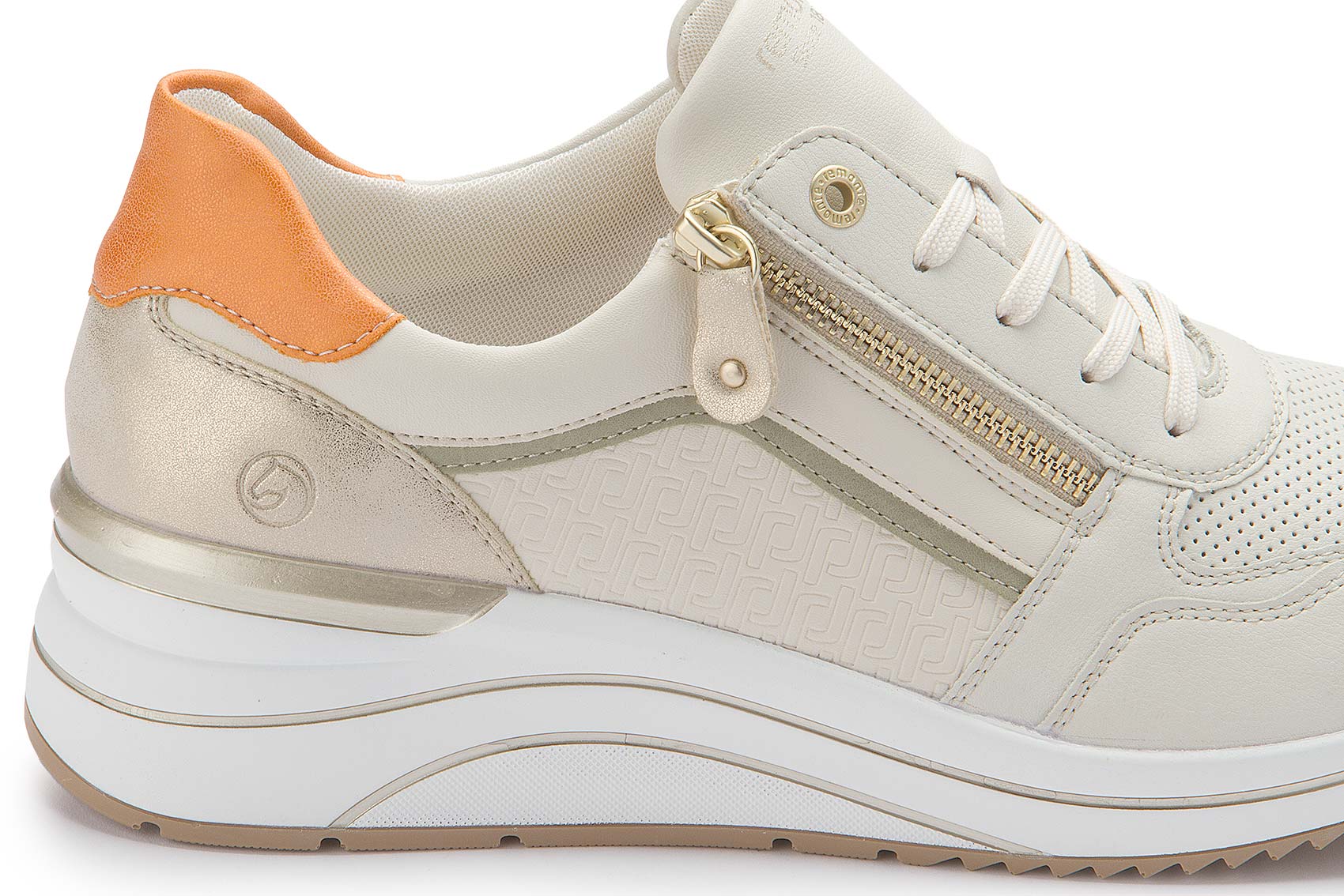 Diese weißen remonte Sneaker zeigen sich in klassischer Farbgebung, die einfach immer geht! Die Schnürung wird durch einen Reißverschluss ergänzt und garantiert somit optimalen Halt und eine perfekte Passform. Die Lite ´n Soft Technologie kombiniert eine super leichte Sohle mit gepolsterter und herausnehmbarer Einlegesohle. Das Modell ist in Extraweite geschnitten. Der Schuh ist mit leichtem Microvelour gefüttert, das atmungsaktiv ist. Mehr Komfort geht nicht!