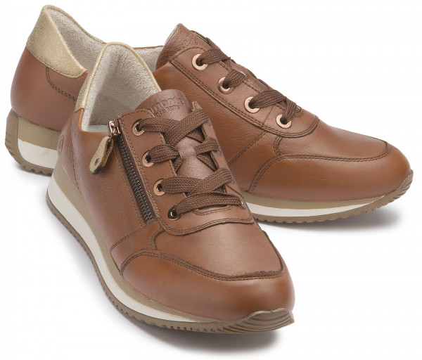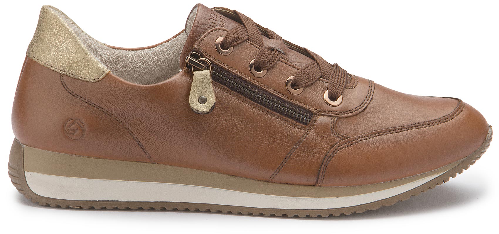 Der Remonte Sneaker ist ein eleganter Schuh in braun, der aus hochwertigem Leder gefertigt ist. Mit seitlichem Reißverschluss und Schnürsenkeln ist er nicht nur modisch, sondern auch leicht anzuziehen. Der Sneaker verleiht jedem Outfit eine elegante Note und bietet den ganzen Tag über hohen Tragekomfort. Entdecke den zeitlosen Stil und die außergewöhnliche Qualität des Remonte Sneakers.