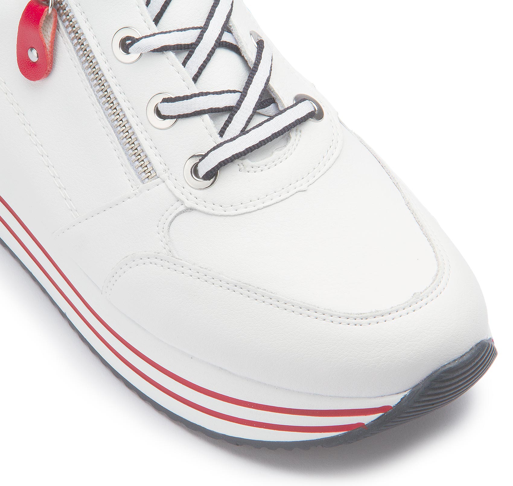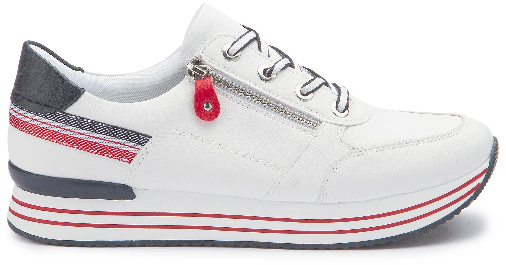 Stilvoll und komfortabel – präsentiert sich dieser herausragende Sneaker. Das hochwertige Obermaterial aus Leder verleiht dem Damenschuh nicht nur eine ansprechende Optik, sondern ermöglicht auch vielseitige Kombinationsmöglichkeiten mit verschiedenen Outfits. Das Wechselfußbett gewährleistet eine optimale Anpassung an den Fuß, was zu einer Schonung der Gelenke und Bänder führt. Bei Bedarf kann es mühelos gegen eigene Einlagen ausgetauscht werden. Die individuelle Anpassung des Schuhs wird durch die Schnürung erleichtert, wodurch eine optimale Passform am Fuß erreicht wird. Die strapazierfähige Synthetik-Laufsohle sorgt für ein angenehmes Laufgefühl. Wer auf der Suche nach einem modischen Begleiter für Alltag und Freizeit ist, wird an diesem Sneaker nicht vorbeikommen!