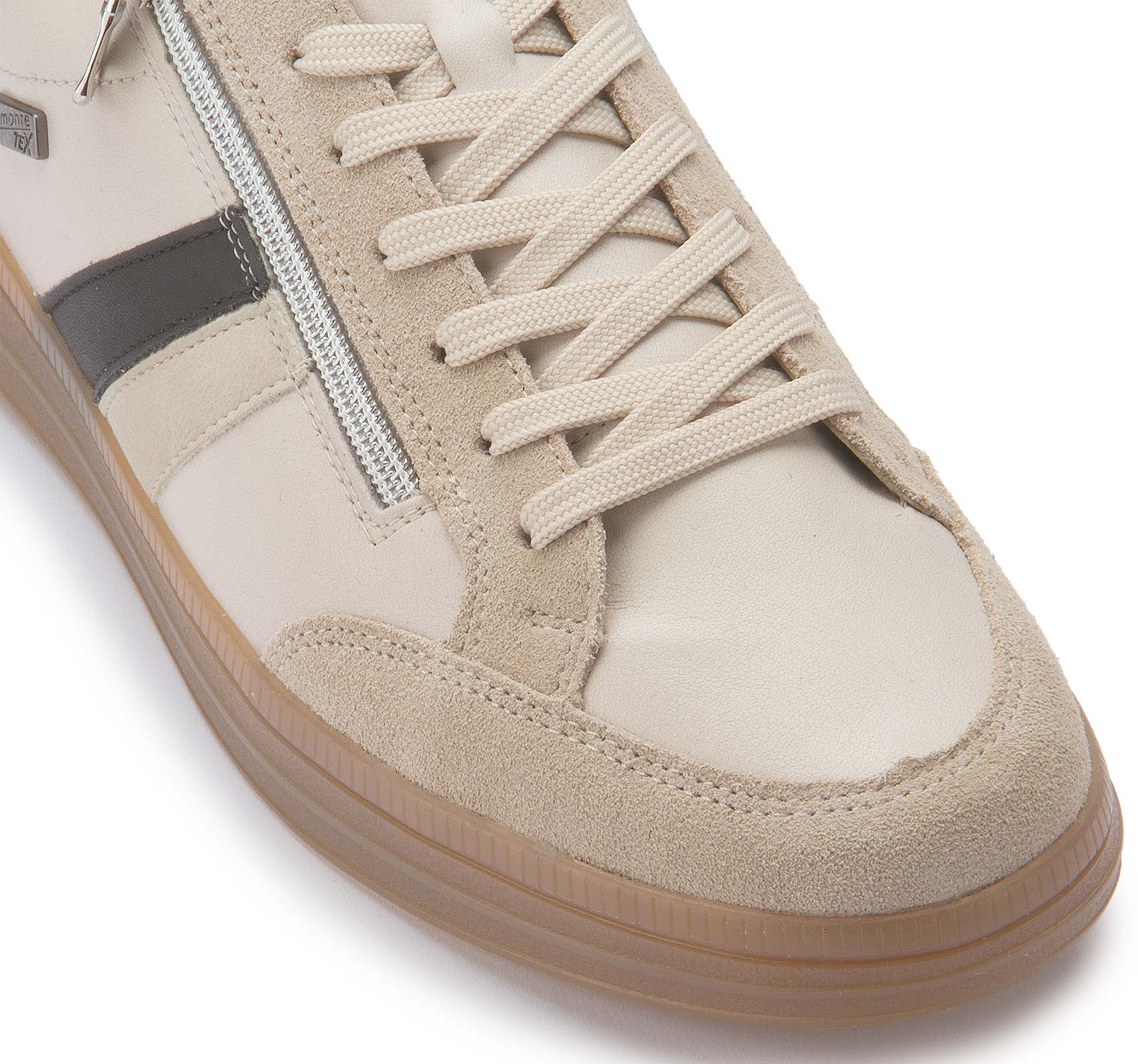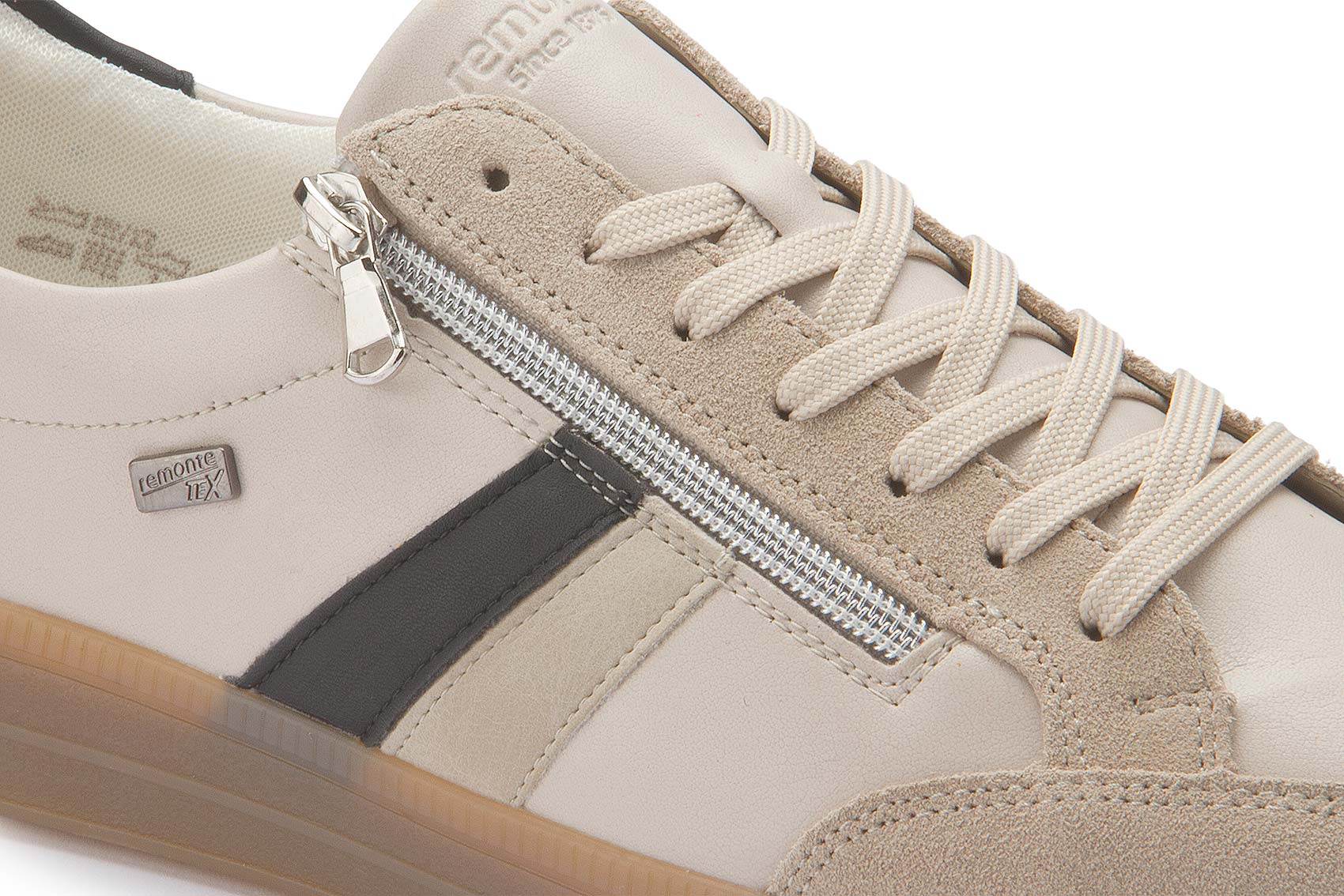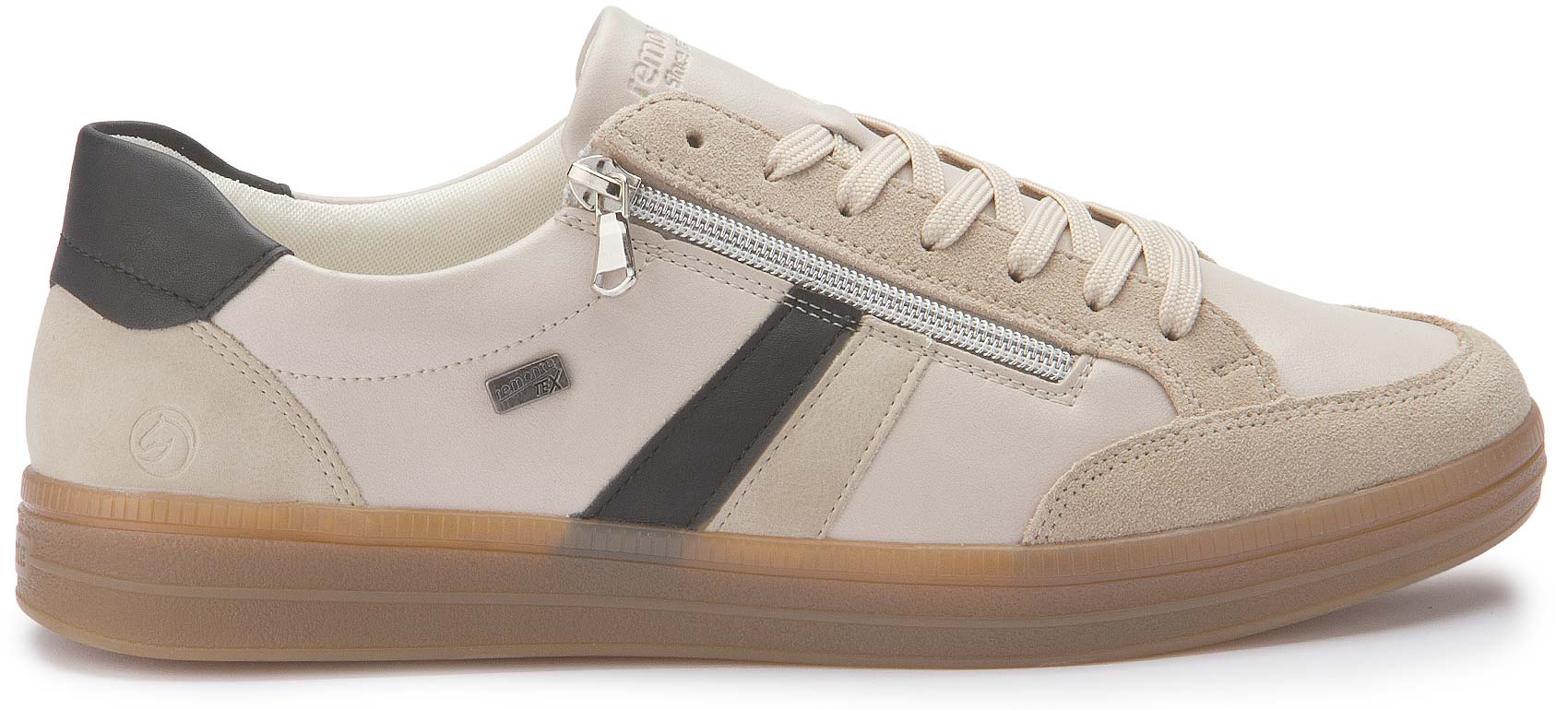 Dieser modische Sneaker von Remonte überzeugt in Beige sowie praktischen Details wie dem seitlichen Reißverschluss. Die leichte Laufsohle und das herausnehmbare gepolsterte Fußbett sorgen für angenehmen Tragekomfort – perfekt für den Alltag mit Stil