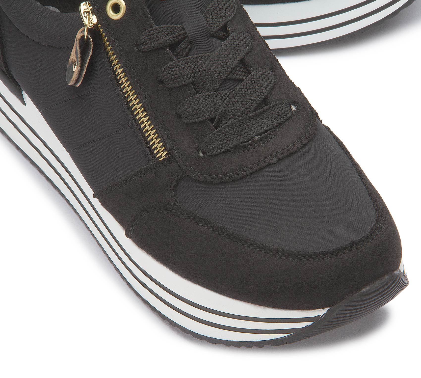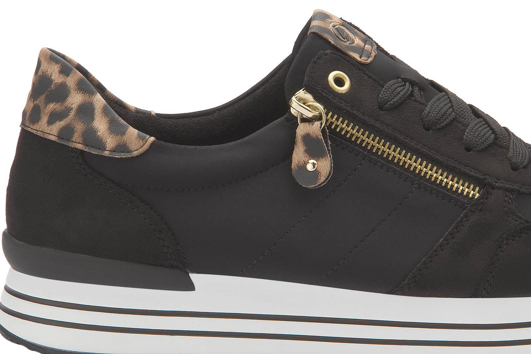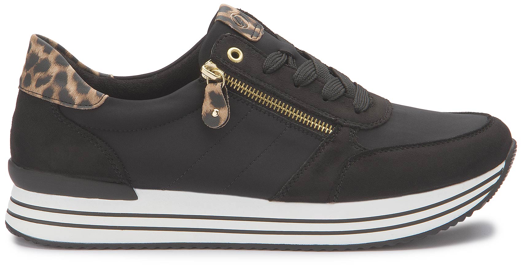 Ein Schuh für alle Fälle! Diese veganen, schwarzen remonte Sneaker dürfen auch in dieser Saison in keinem Schuhschrank fehlen. Eine Schnürung ergänzt den Reißverschluss und sorgt für Funktionalität und Komfort. Die funktionalen Highlights werden durch die gepolsterte und herausnehmbare Einlegesohle sowie die besonders leichte und flexible Plateausohle perfekt abgerundet. Dank der atmungsaktiven Innenfütterung aus Microvelour ist idealer Tragekomfort garantiert. Definitiv Lieblingsschuh-Potenzial!