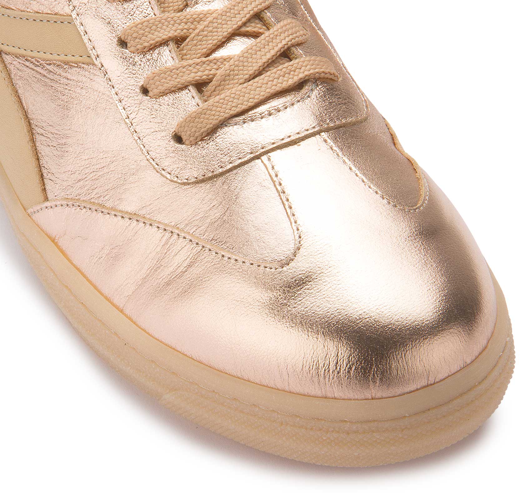 Mit diesen Sneakern von Bariello setzt du ein echtes Statement – stilvoll durch den Tag! Das roségoldfarbene Obermaterial aus Leder verleiht dem Schuh einen Hauch von Luxus und macht ihn zum glänzenden Highlight für deine Outfits. Ein vielseitiger Begleiter, der jedem Look das gewisse Etwas verleiht.