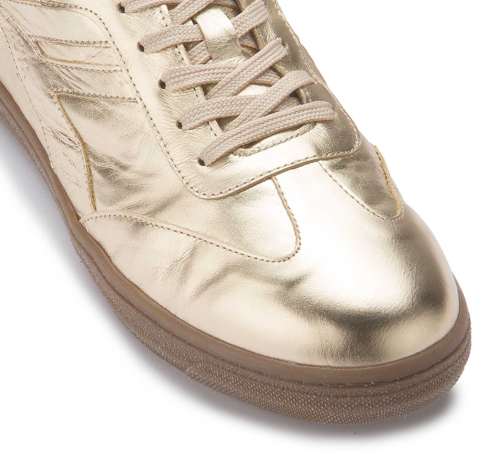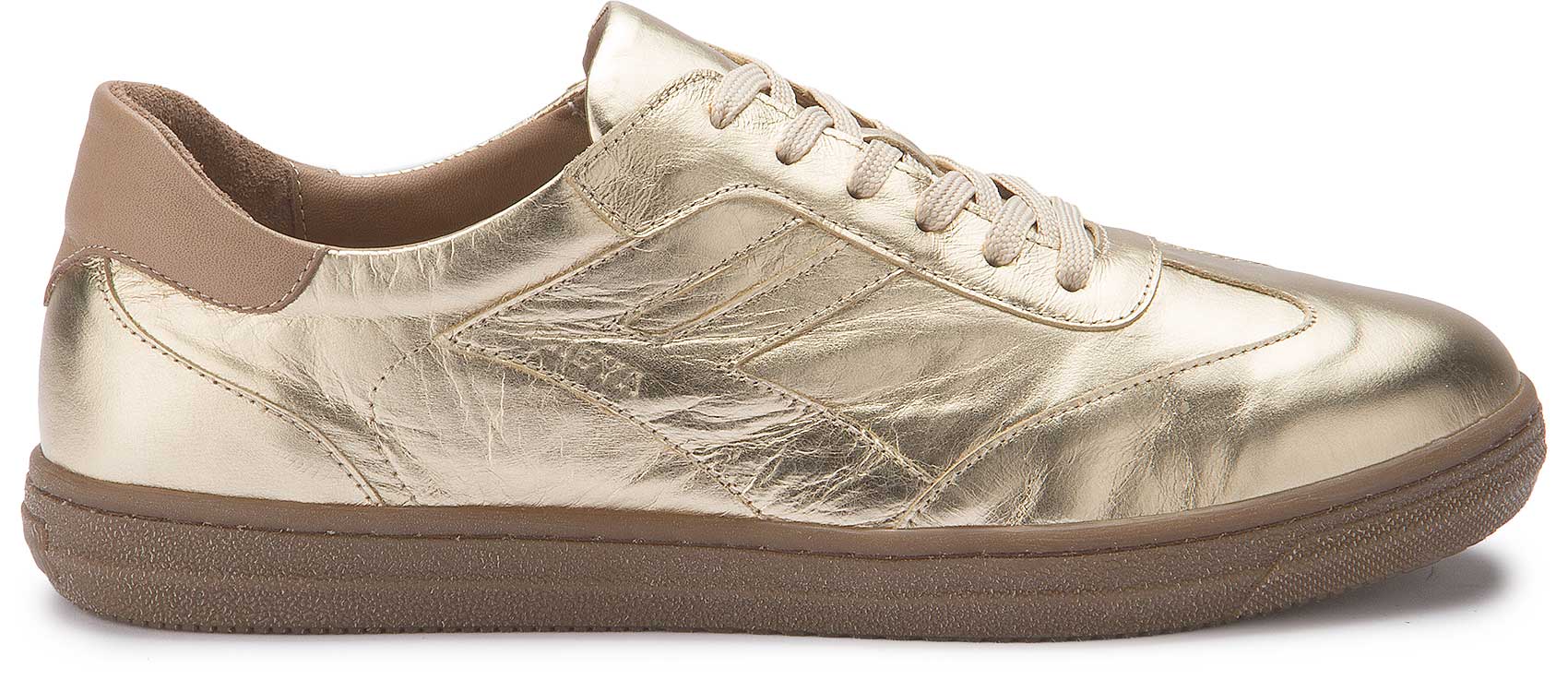 Mit diesen Sneakern von Bariello setzt du ein echtes Statement – stilvoll durch den Tag! Das goldfarbene Obermaterial aus Leder verleiht dem Schuh einen Hauch von Luxus und macht ihn zum glänzenden Highlight für deine Outfits. Ein vielseitiger Begleiter, der jedem Look das gewisse Etwas verleiht.
