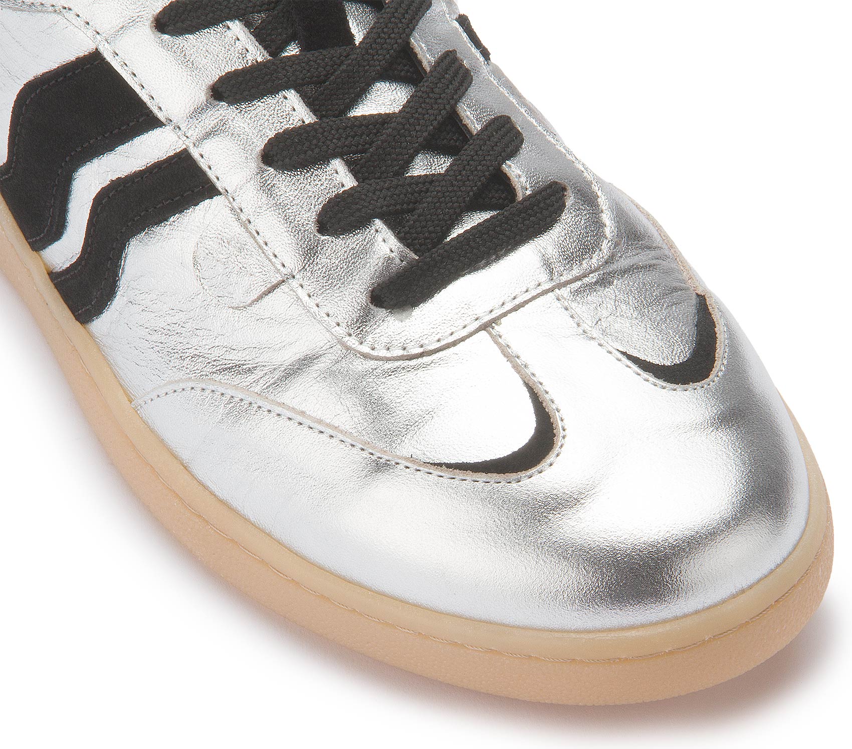 Mit diesen Sneakern bist du stylisch unterwegs – den ganzen Tag! Die silberne Glattleder Oberfläche verleiht den Schuhen einen modernen, auffälligen Look und macht sie zu echten Allroundern, die sich mühelos mit verschiedensten Outfits kombinieren lassen.