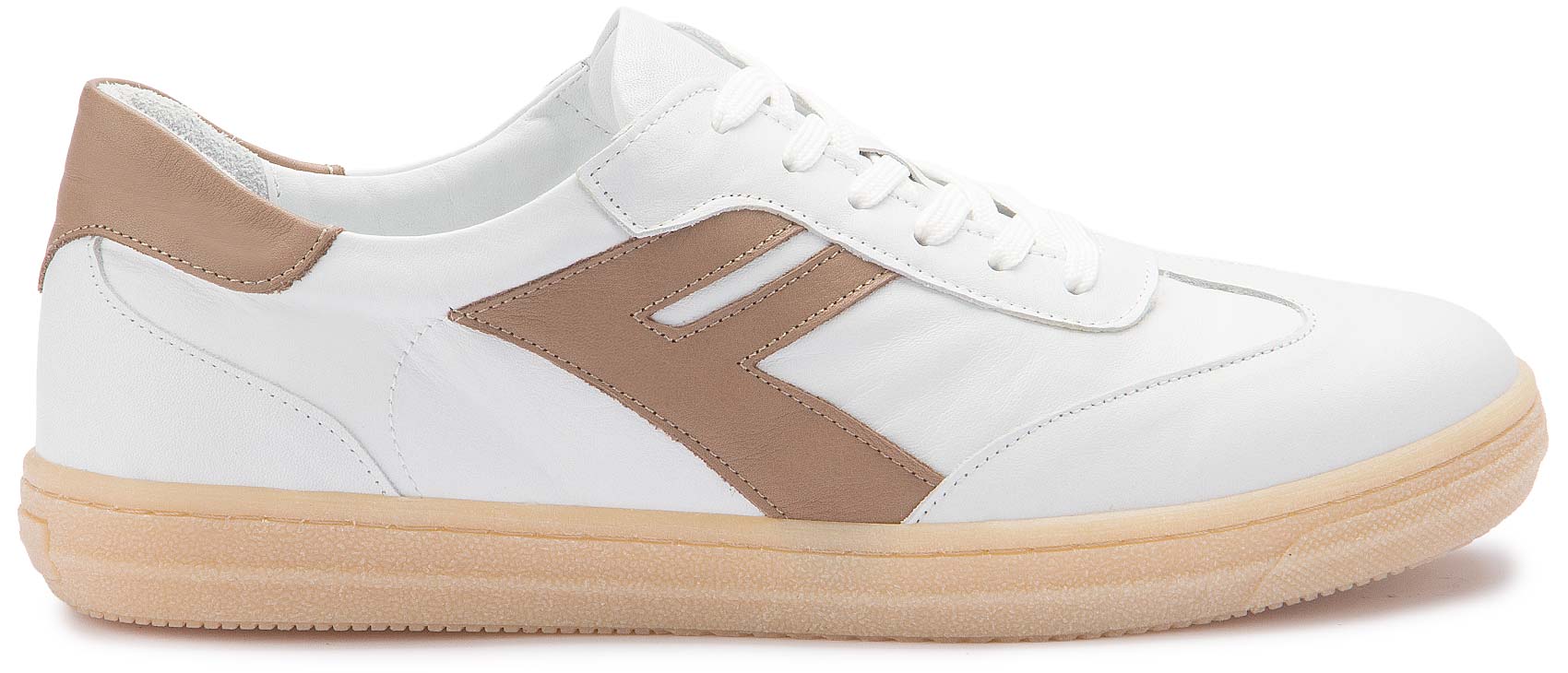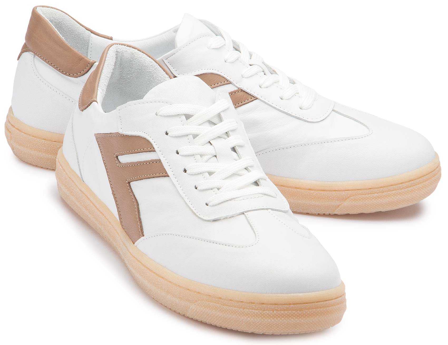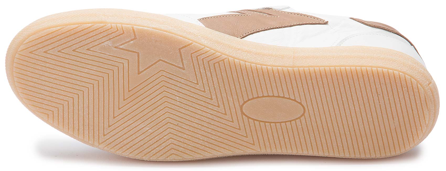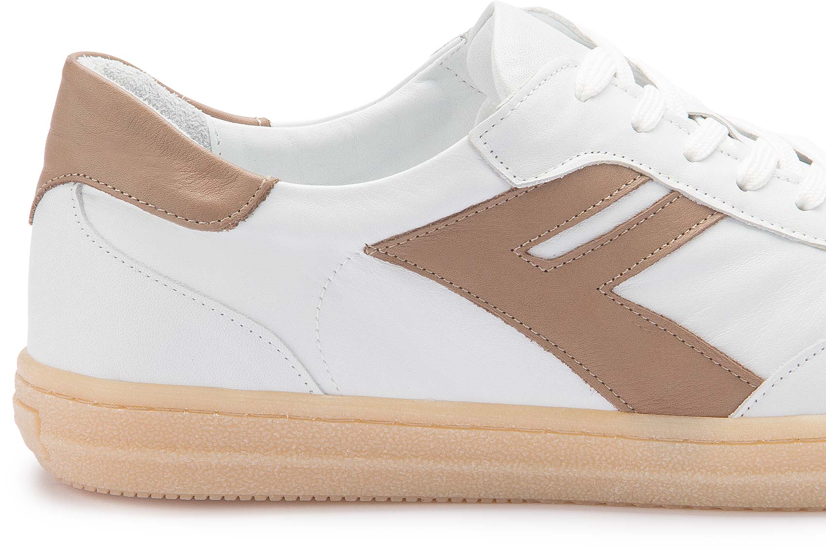 Dieser sportlich-elegante Sneaker überzeugt mit seinem cleanen Design in Weiß und stilvollen Kontrasten in warmem Beige. Das hochwertige Leder und die klassische Schnürung sorgen für optimalen Komfort und eine perfekte Passform. Ein vielseitiger Allrounder, der sowohl casual als auch schick kombiniert werden kann.