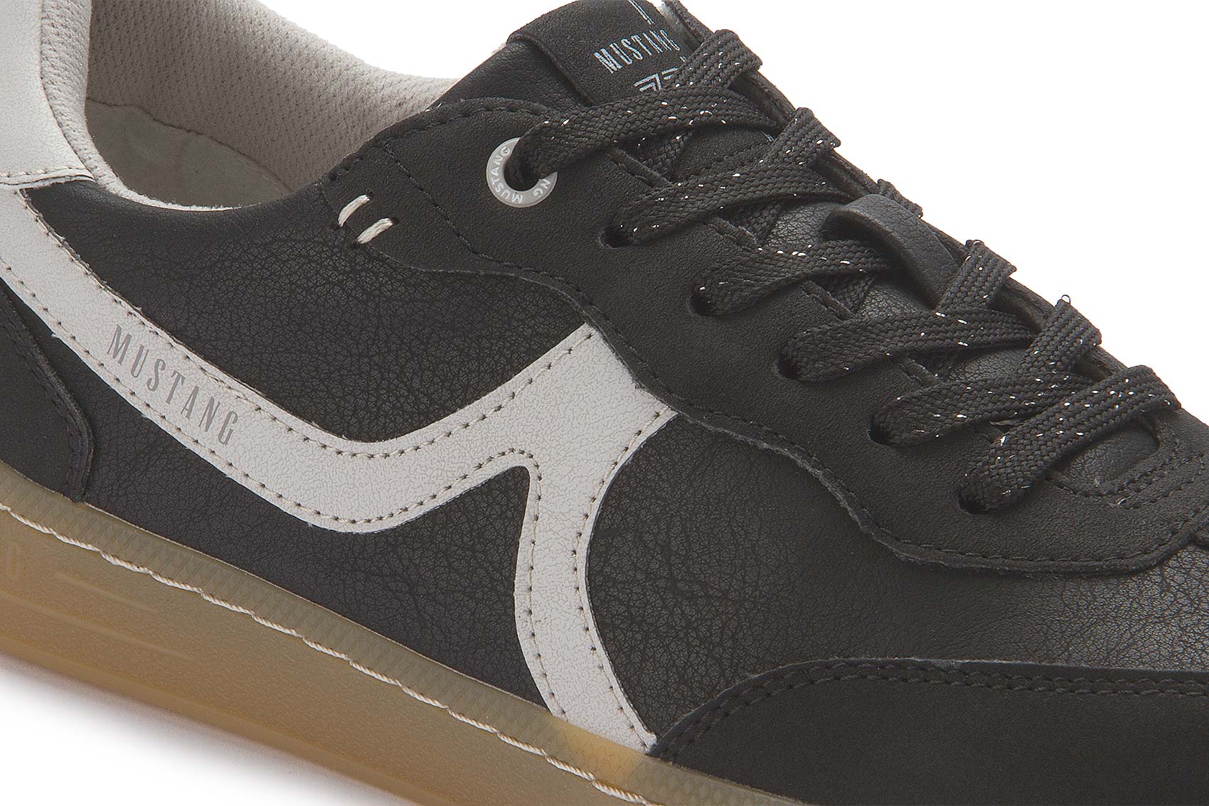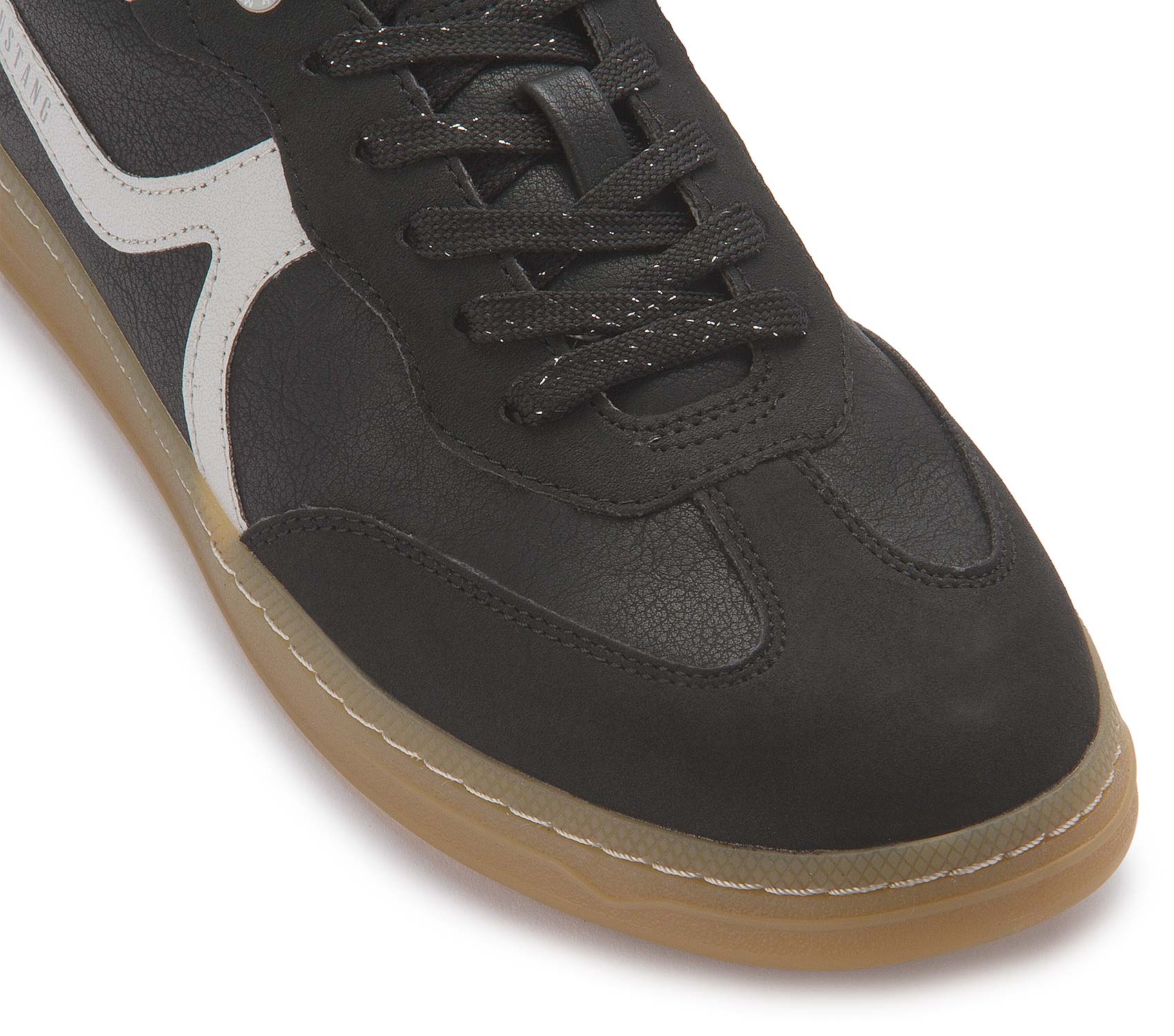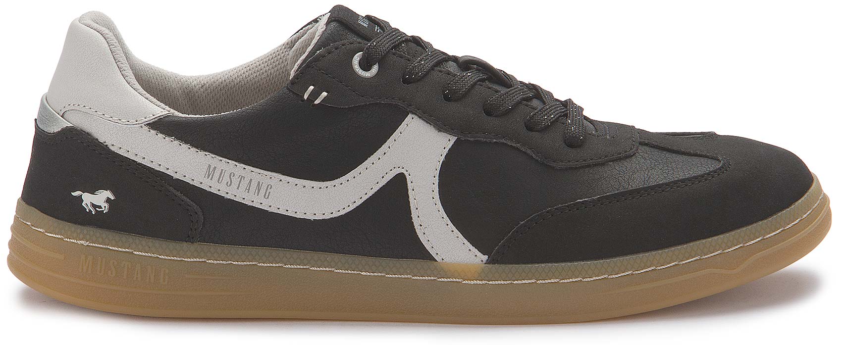Schöner Sneaker in Schwarz von Mustang aus hochwertigem Lederimitat. Die Details in weiß wirken modern. Kombiniert zur Jeans oder zu klassisch zur Stoffhose. Dieser Sneaker von Mustang ist ein wahres Kombinationstalent!