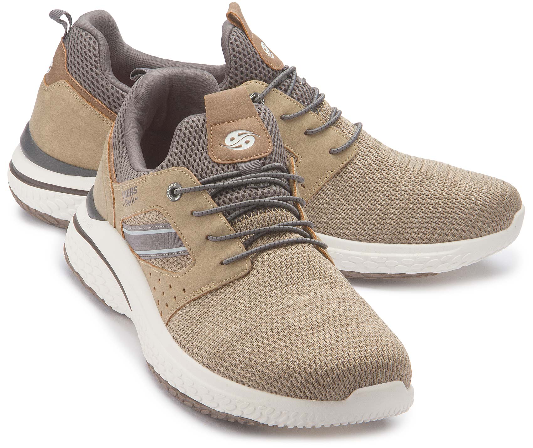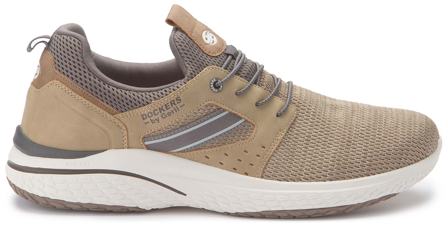 Cooler Sneaker von Dockers in Beige. Der Schuh besteht aus atmungsaktivem Mesh-Material und einer leichten Gummisohle. Beides garantiert tollen Laufkomfort. Weiteres Highlight sind die Schnürsenkel aus Gummi: Slipper und Sneaker in einem! Was will man mehr?