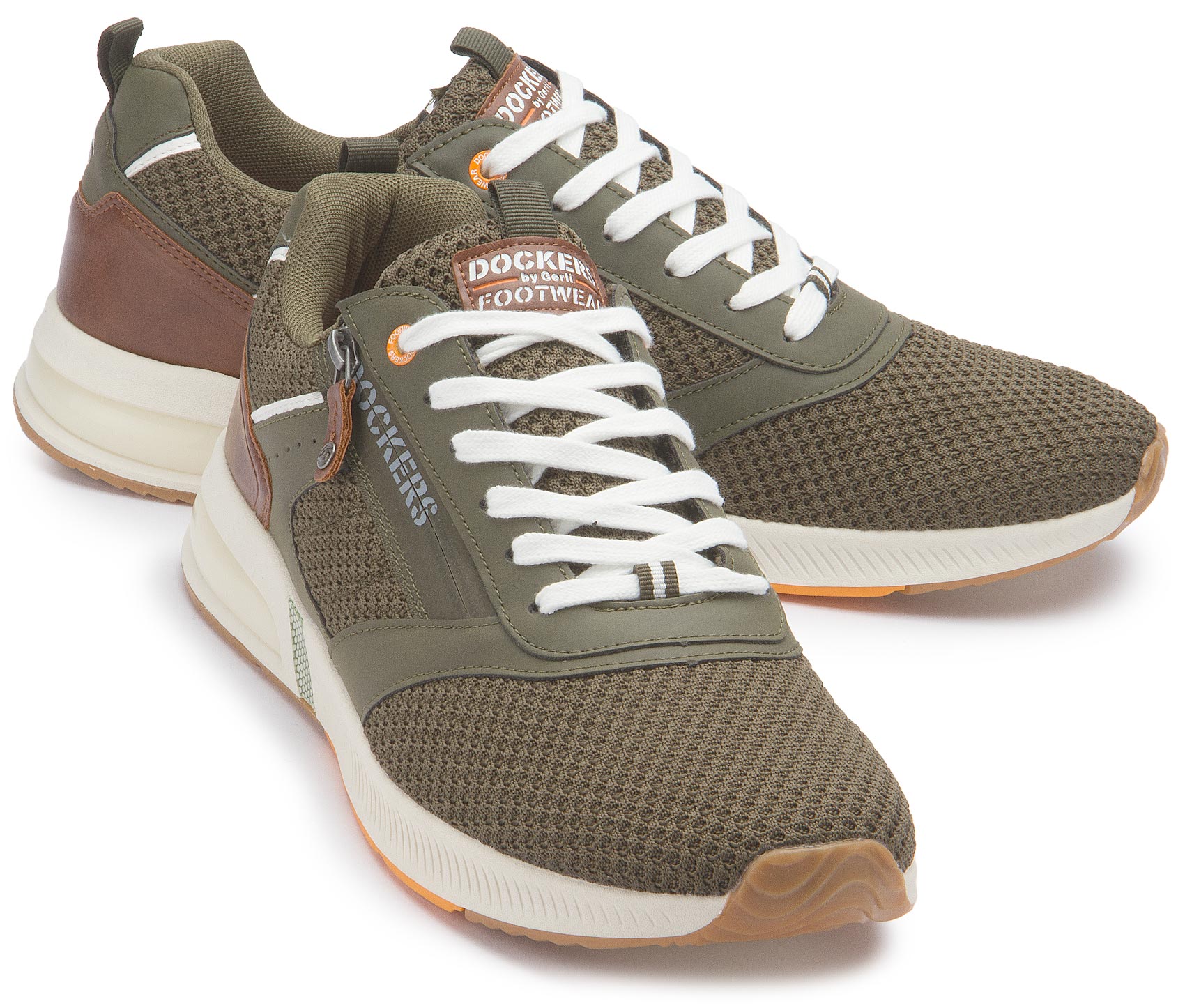 Mit diesen Sneakern sind Männer in nahezu jeder Situation perfekt angezogen. Wenn wie bei diesem Herrenschuh Robustheit, Flexibilität und Komfort gefragt sind, bieten sich Leder und Textil als Obermaterial an. Es ist vielfältig verwendbar und vermittelt einen geschmackvollen Eindruck. Im Inneren findet sich eine weiche Ausstattung aus Textil, die den Füßen auch an langen Tagen den nötigen Komfort liefert. Zudem bietet die Laufsohle aus Gummi hohe Flexibilität und besten Tragekomfort. Rundum gelungene Schuhe, die man am liebsten jeden Tag anziehen würde – das sind die Sneaker von DockerS