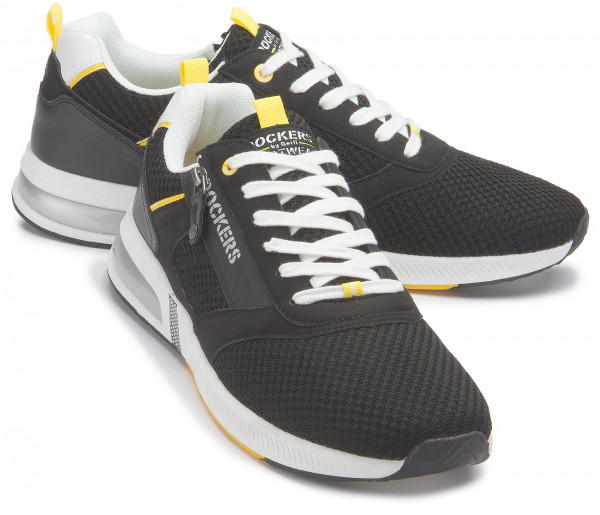 Mit diesen Sneakern sind Männer in nahezu jeder Situation perfekt angezogen. Wenn wie bei diesem Herrenschuh Robustheit, Flexibilität und Komfort gefragt sind, bieten sich Leder und Textil als Obermaterial an. Es ist vielfältig verwendbar und vermittelt einen geschmackvollen Eindruck. Im Inneren findet sich eine weiche Ausstattung aus Textil, die den Füßen auch an langen Tagen den nötigen Komfort liefert. Zudem bietet die Laufsohle aus Gummi hohe Flexibilität und besten Tragekomfort. Rundum gelungene Schuhe, die man am liebsten jeden Tag anziehen würde – das sind die Sneaker von DockerS