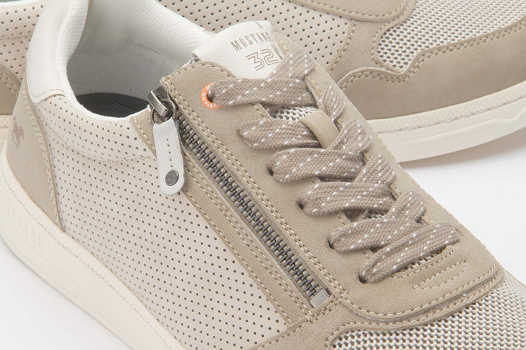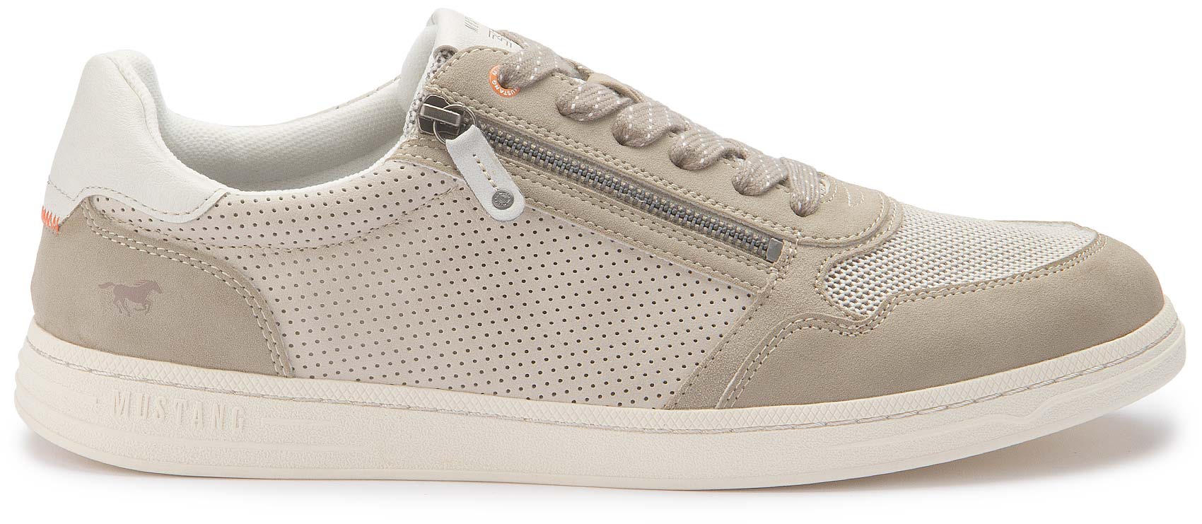 Schöner Sneaker aus dem Hause Mustang in feinem Beige, passend zum Frühjahr! Der seitliche Reißverschluss erleichtert das An-und Ausziehen. Der gepolsterte Schaftkragen garantiert ein tolles Laufgefühl! Zur Jeans oder Chino ein absolutes Must-Have!