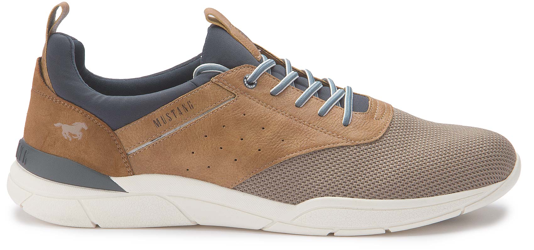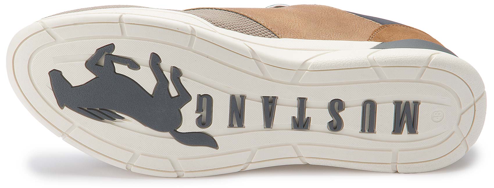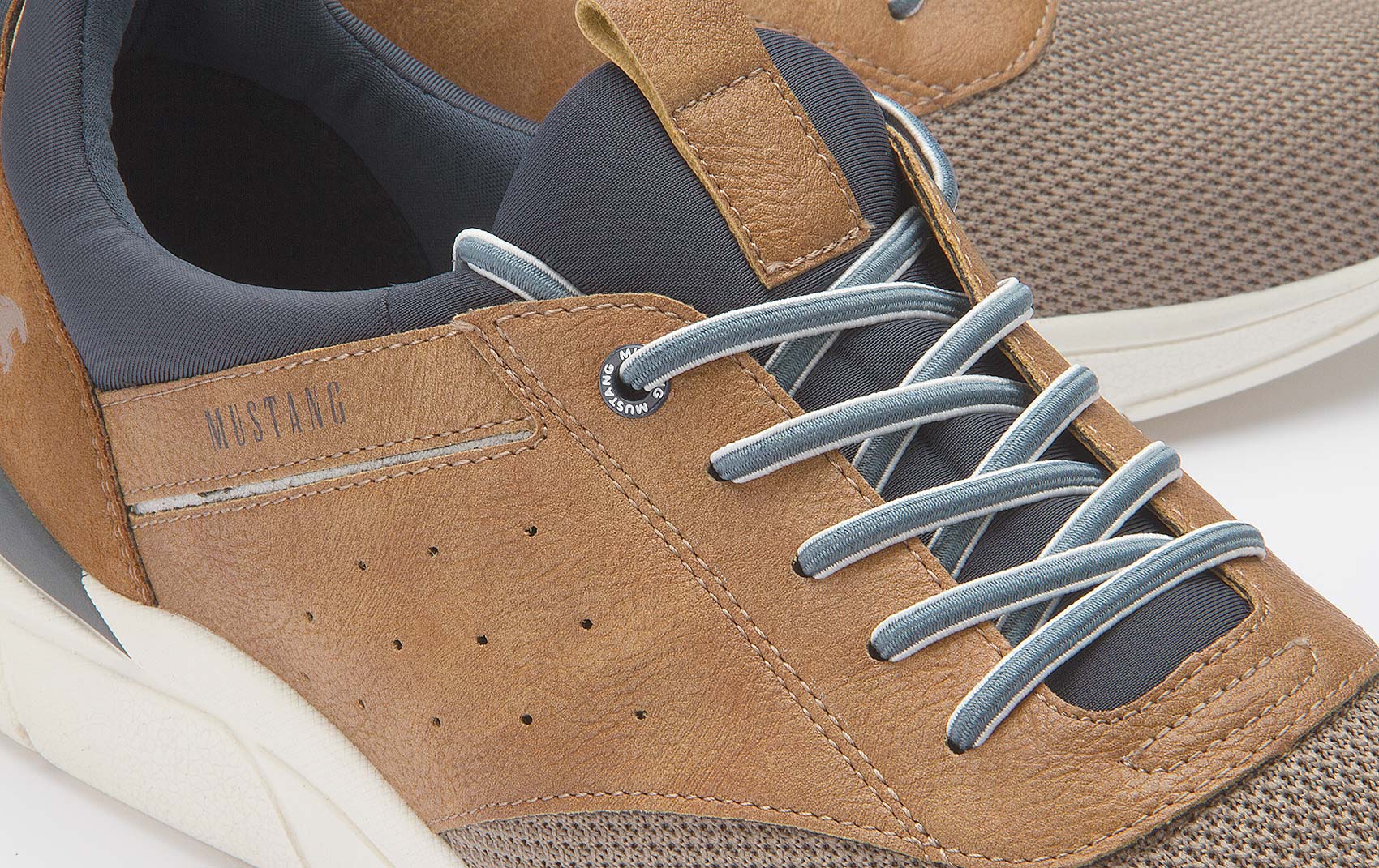 Schöner Sneaker in Braun der Marke Mustang im Kunstleder/Textilmix. Der Schaftkragen ist leicht gepolstert und sorgt so für maximalen Komfort. Die Schnürsenkel sind aus Gummi, somit kann man einfach hineinschlüpfen. Cooler und alltagstauglicher gehts nicht!