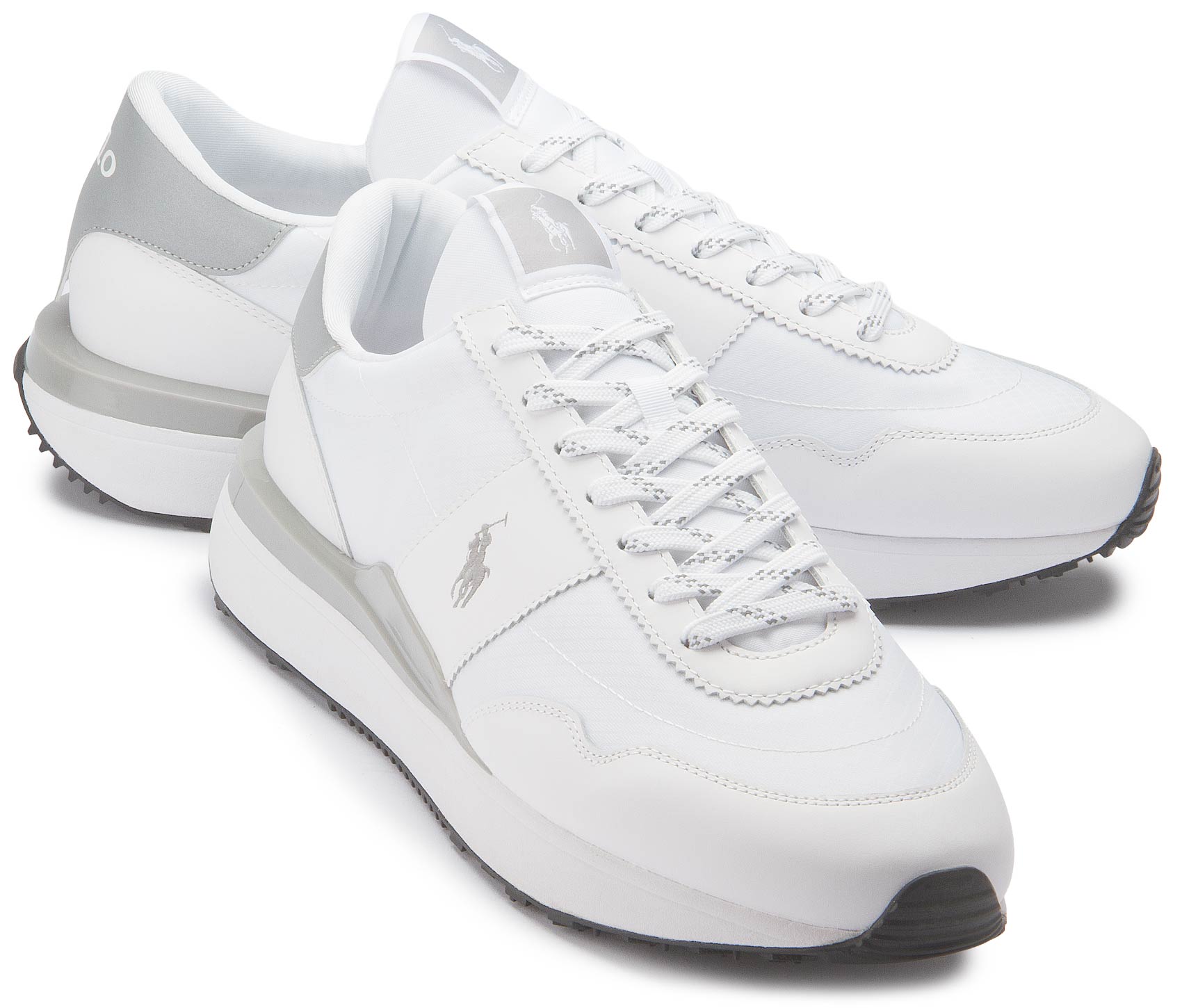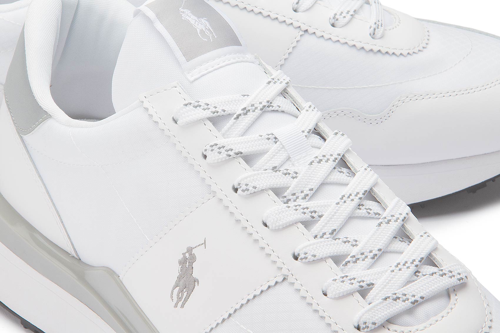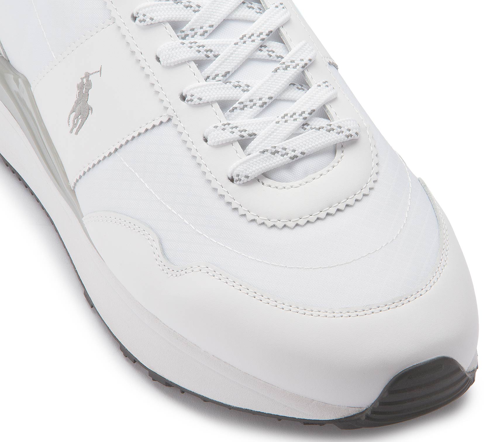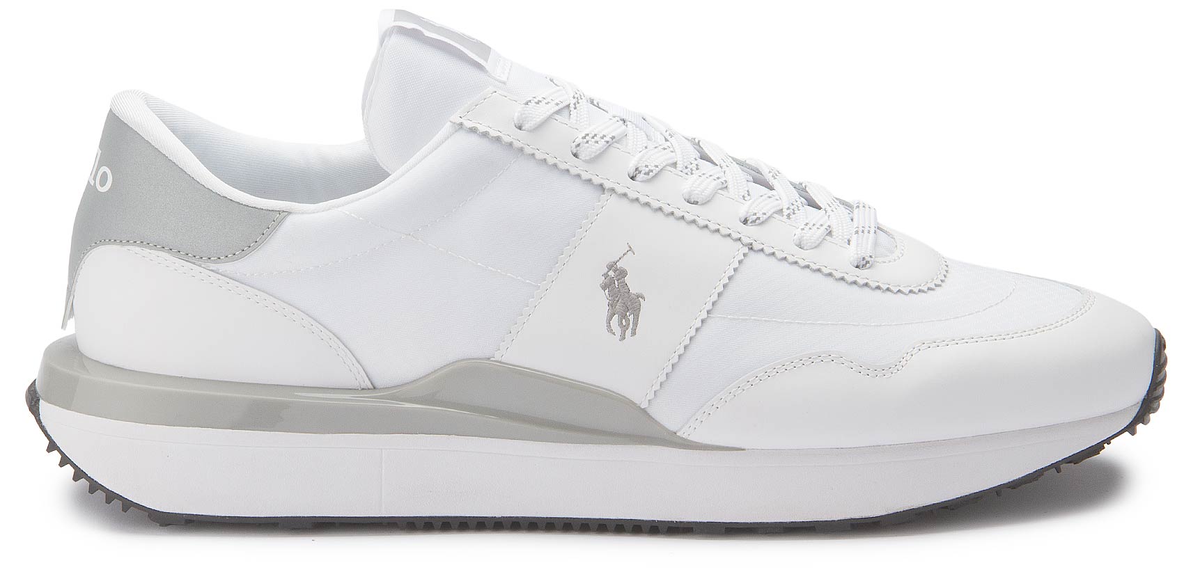 Der Sneaker interpretiert Polos klassischen, von den 1970er-Jahren inspirierten Lauf-Sneaker neu und präsentiert sich mit modernen Designelementen wie einem TPU-Einsatz an der Ferse und einer robusten Sohle. Der aus Leder und Textil gefertigte Schuh präsentiert sich an der Seite mit dem charakteristischen gestickten Pony von Ralph Lauren.
