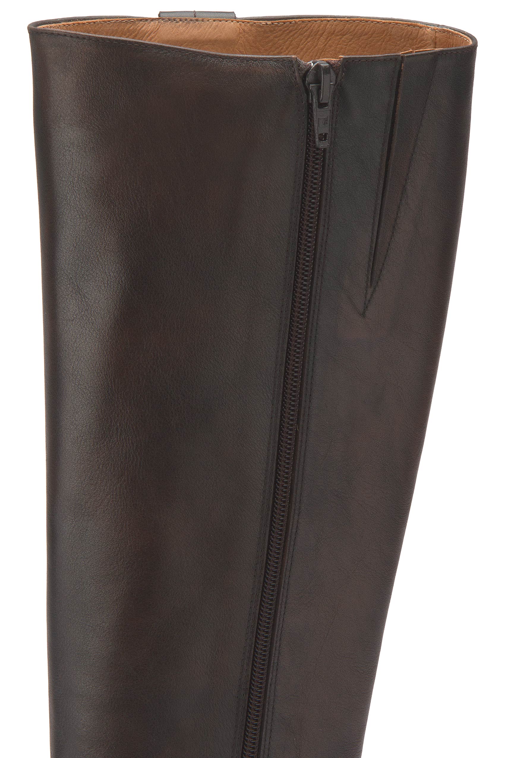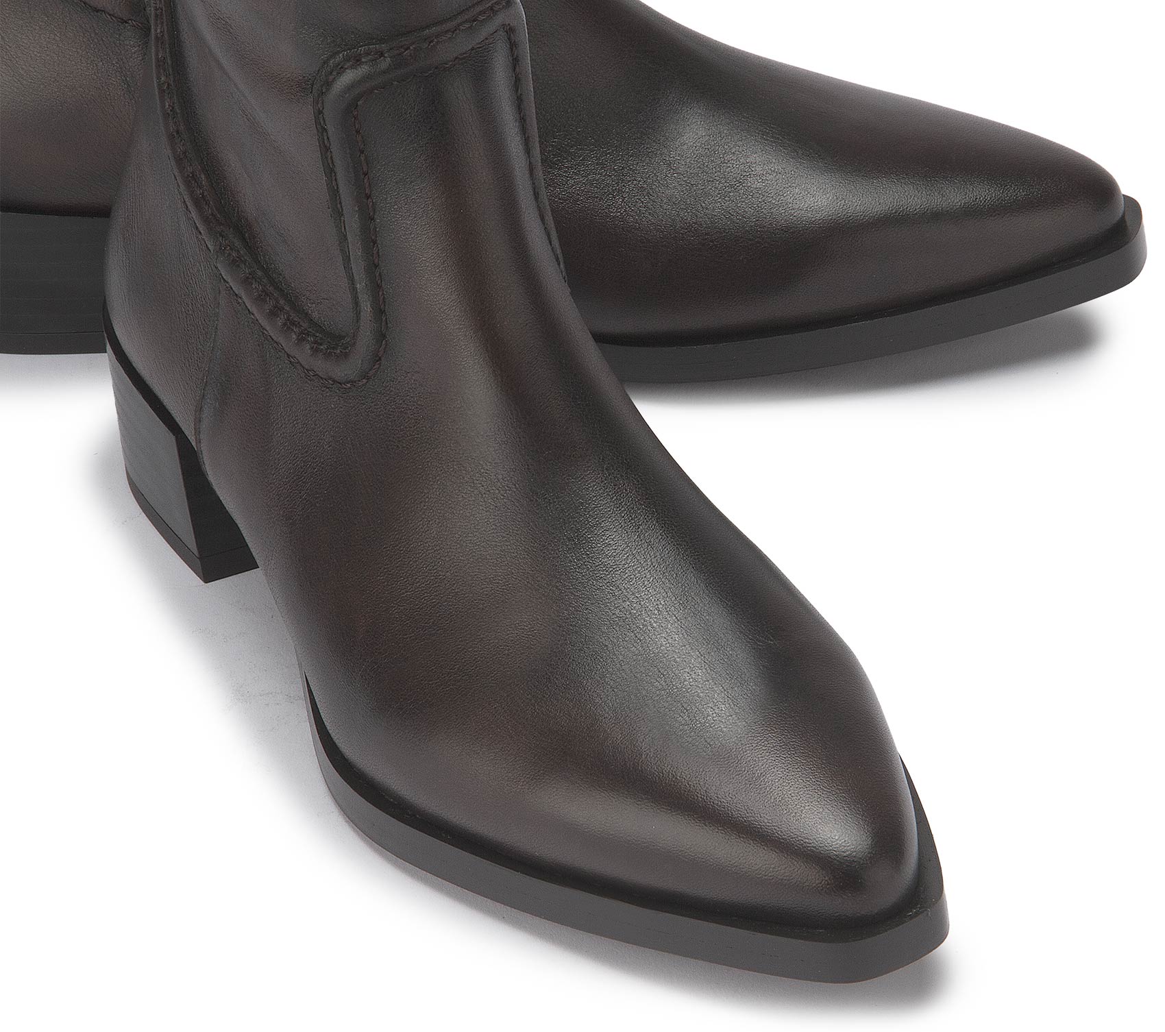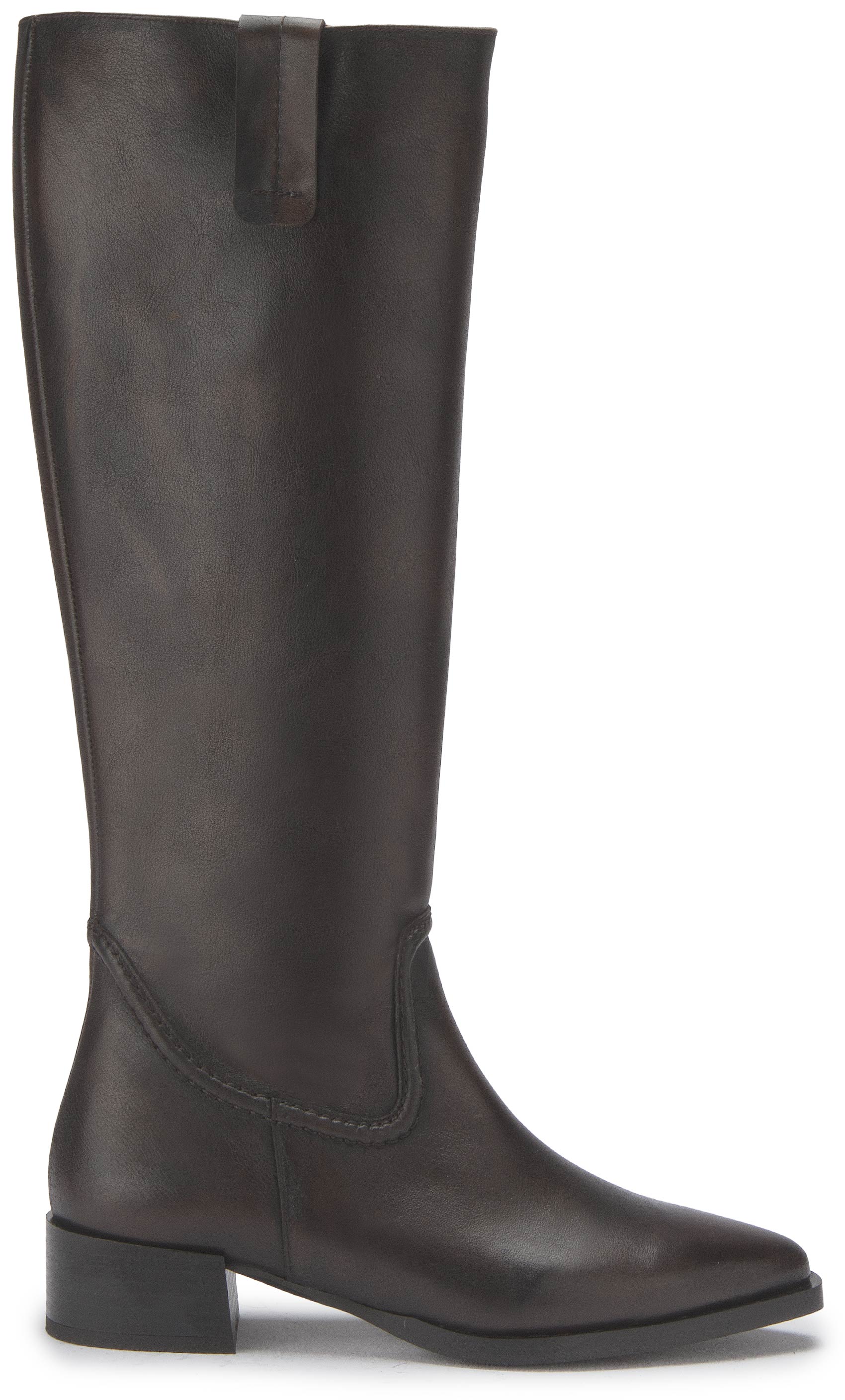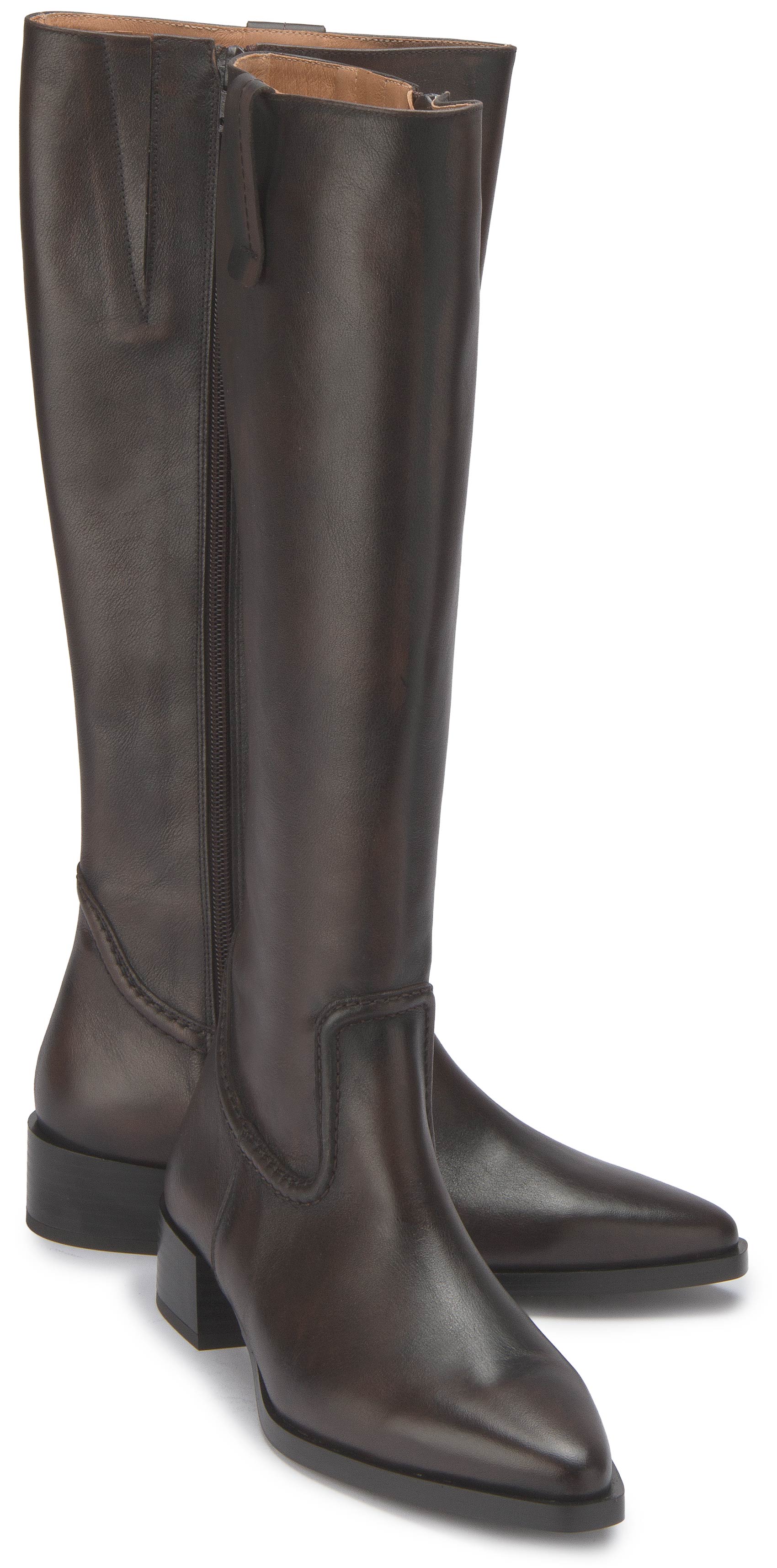 Dieser elegante Stiefel von Bariello aus fein glänzendem Glattleder überzeugt mit klassischem Design und edler Verarbeitung. Die spitz zulaufende Form und die dezenten Ziernähte verleihen ihm eine stilvolle Silhouette. Für optimalen Komfort sorgt der seitliche Reißverschluss, der ein einfaches An- und Ausziehen ermöglicht.