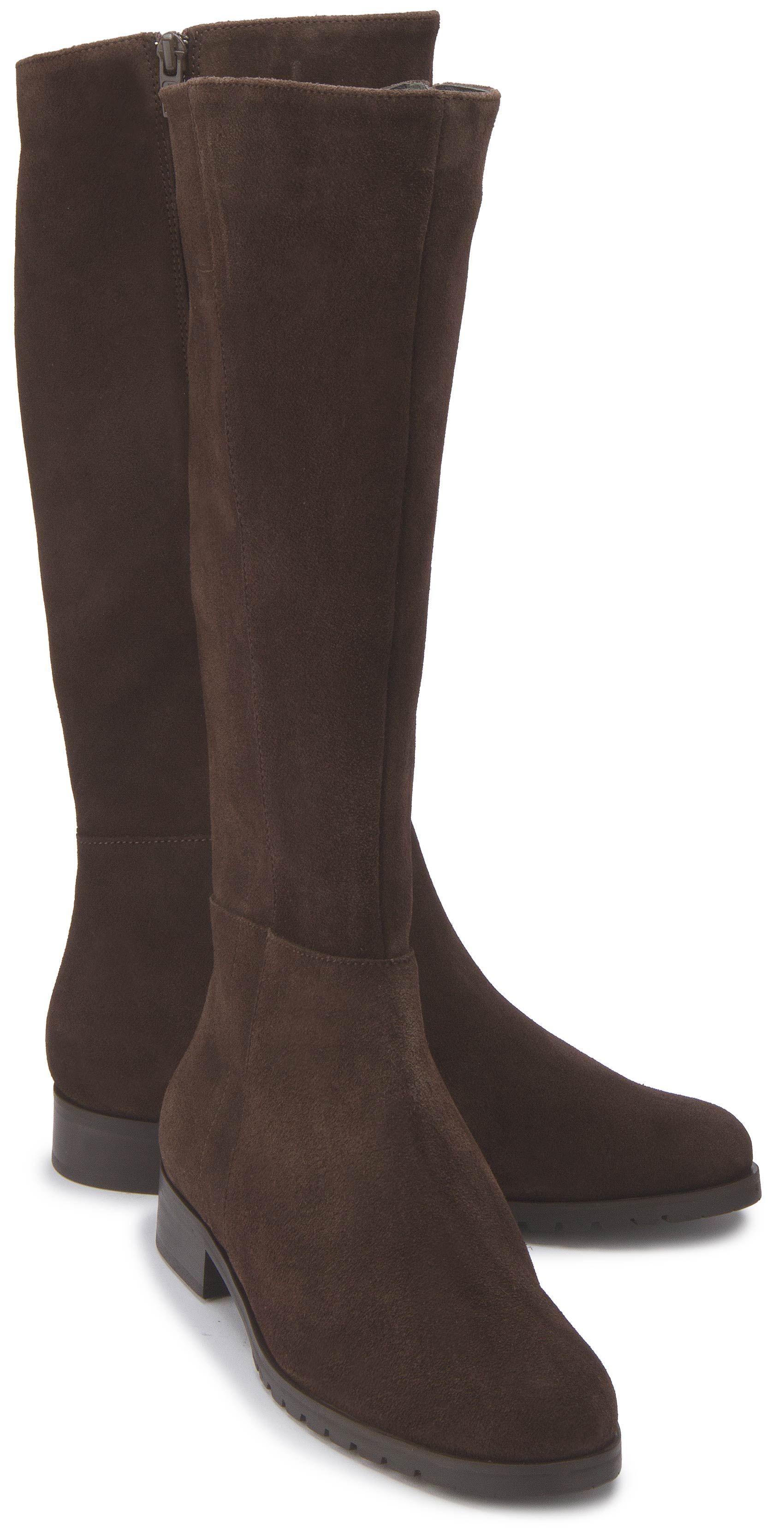 Der elegante Stiefel von Bariello überzeugt mit seinem edlen Rauleder in dunklem Braun und einem zeitlosen, schlanken Design. Dank der flachen Sohle mit leichtem Profil bietet er nicht nur Stil, sondern auch angenehmen Tragekomfort – ideal für den Alltag und stilvolle Auftritte.