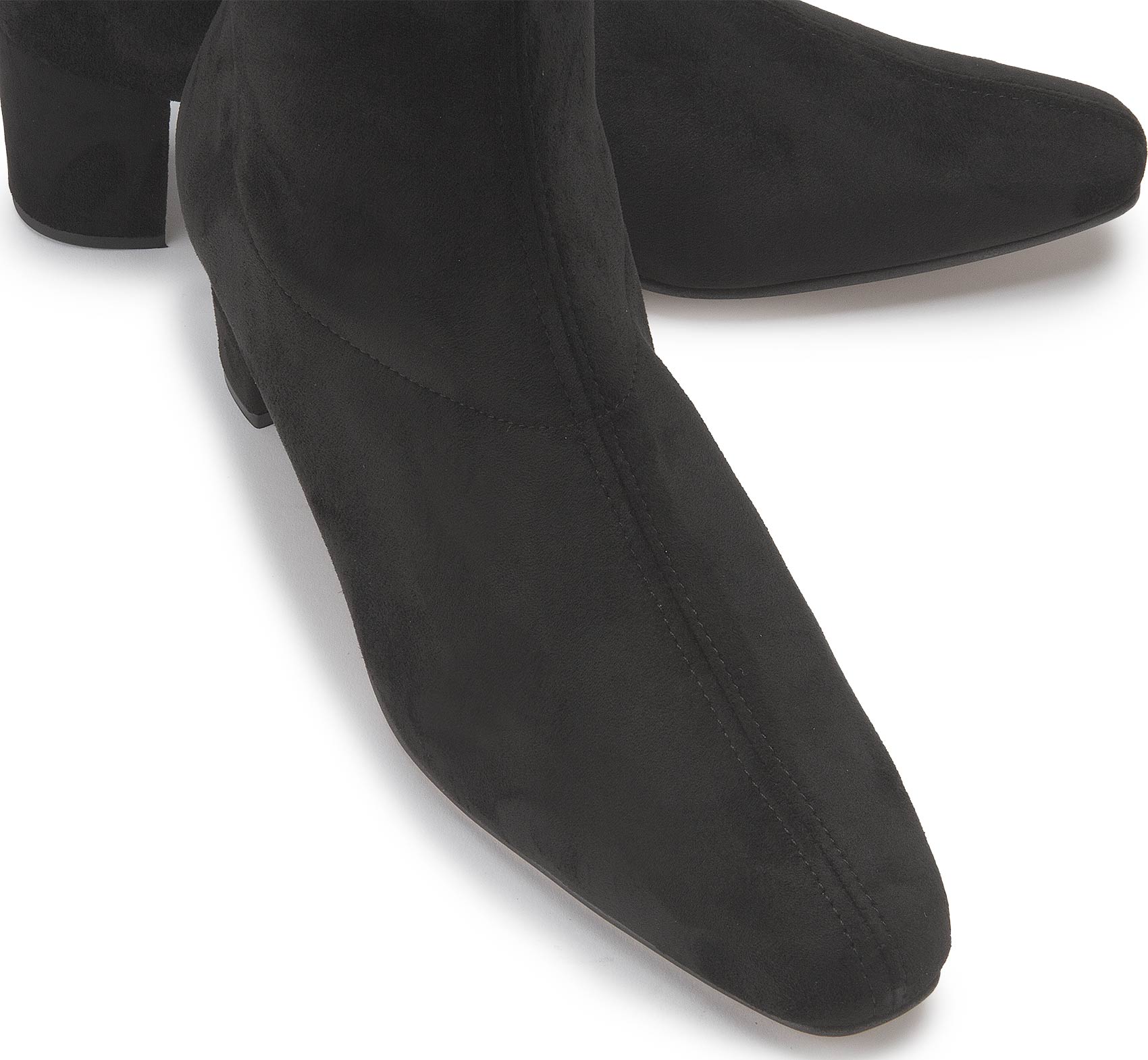 Schicker moderner Stiefel von Bariello, welcher perfekt zu Jeans oder zum Kleid getragen werden kann. Der angenehme Blockabsatz und das Leder komplettieren das modische Erscheinen des Stiefels. Das Stretchmaterial sorgt für eine gute Passform und ermöglicht ein leichtes Einsteigen.