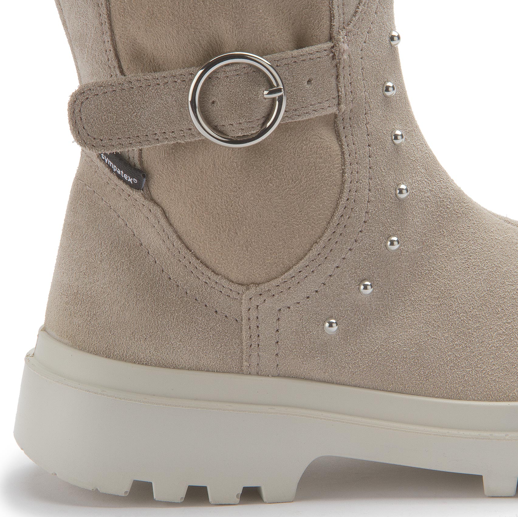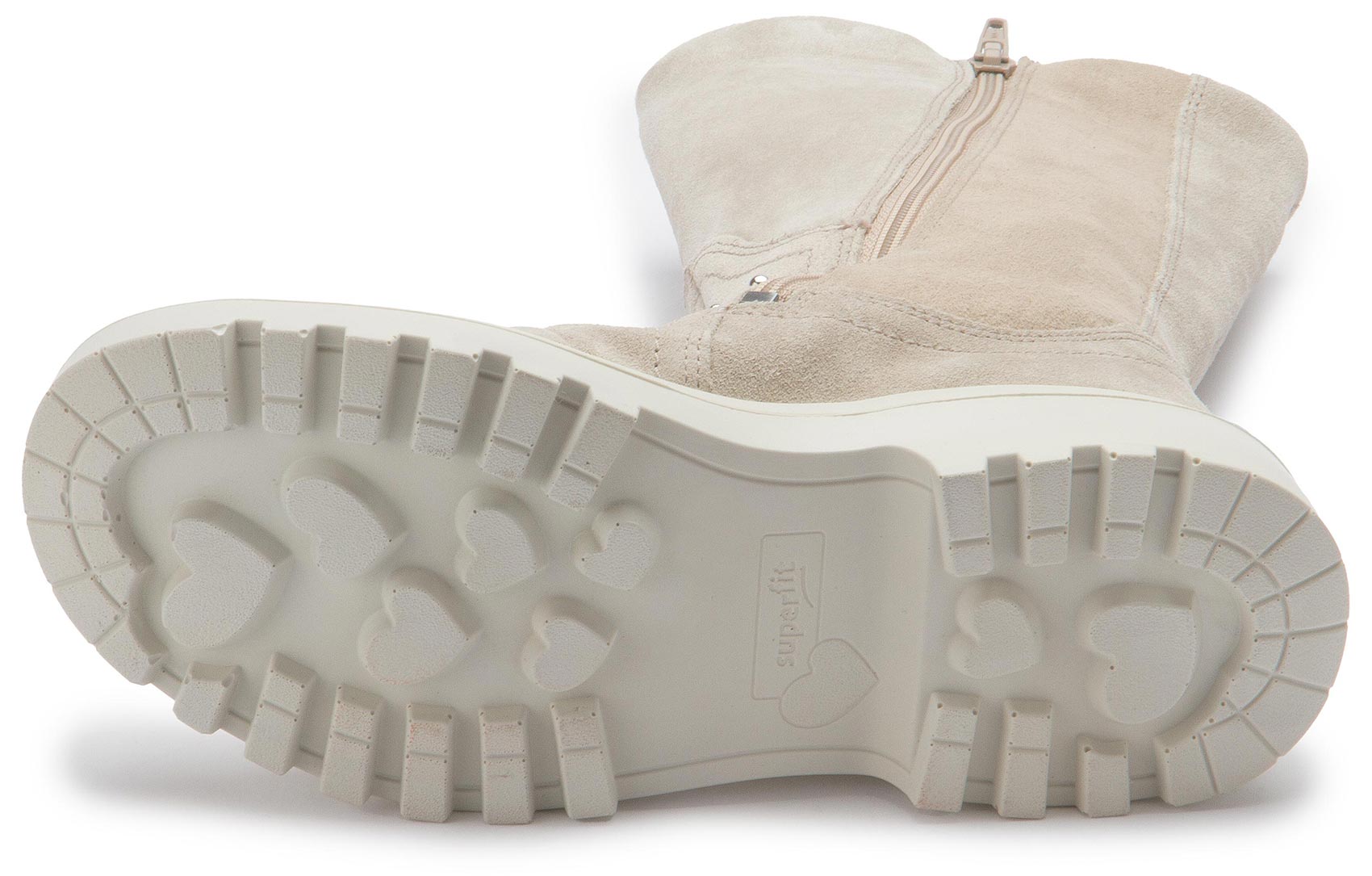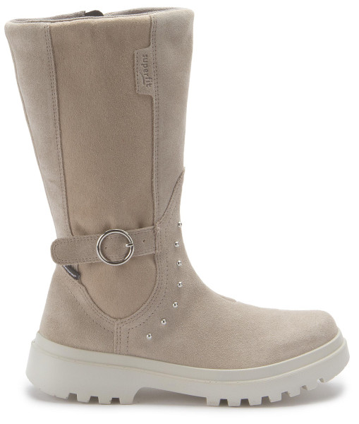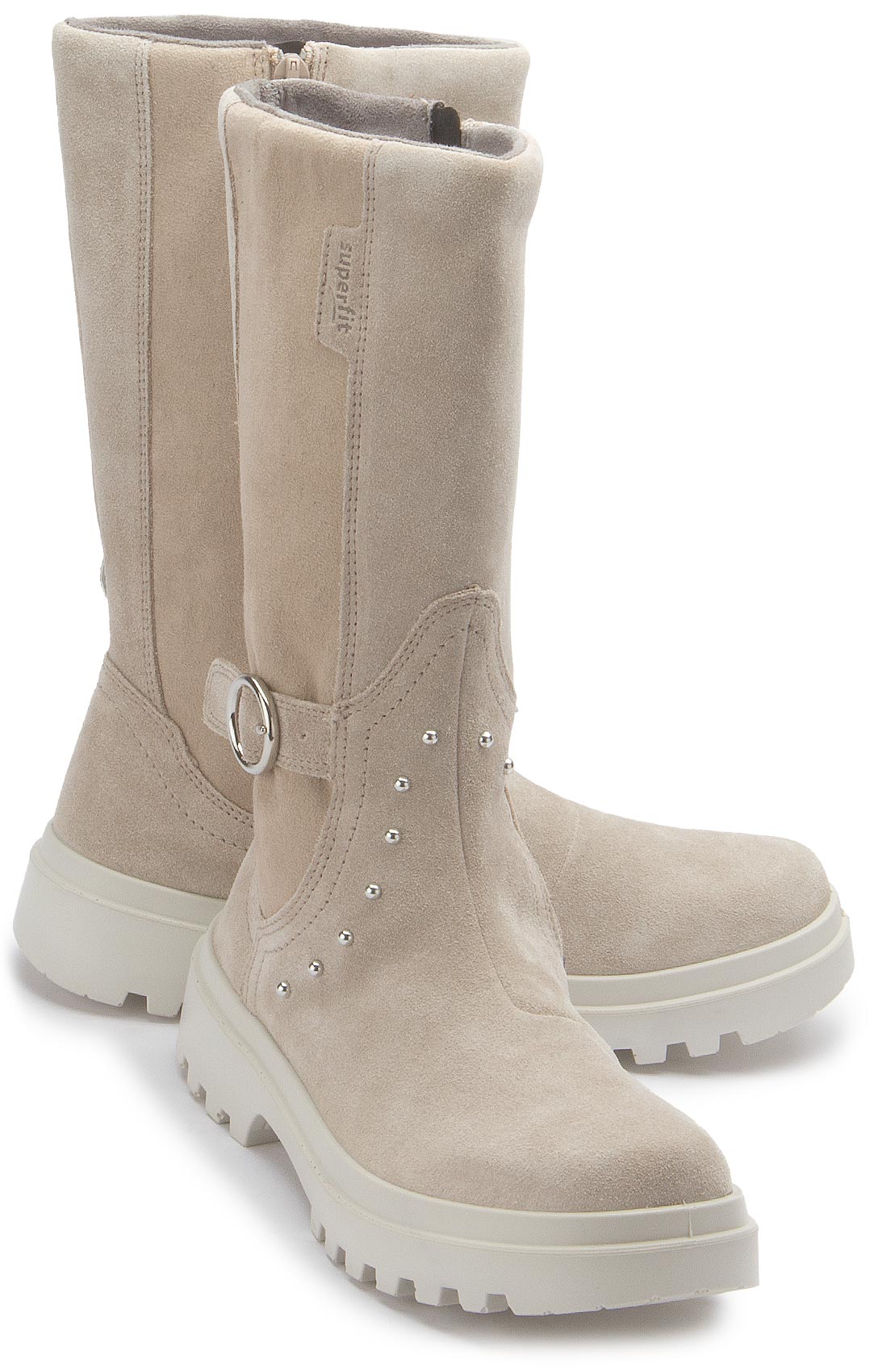 Perfekt für die kommenden Herbsttage präsentiert sich dieser modische Stiefel von Superfit in Velours. Dank Sympatex ist der Schuh wasser- und windabweisend. Der Reißverschluss macht das Reinschlüpfen zum Kinderspiel. Durch die Schnalle an der Außenseite und die Nietenapplikationen sind sie der Hingucker in jedem Outfit.