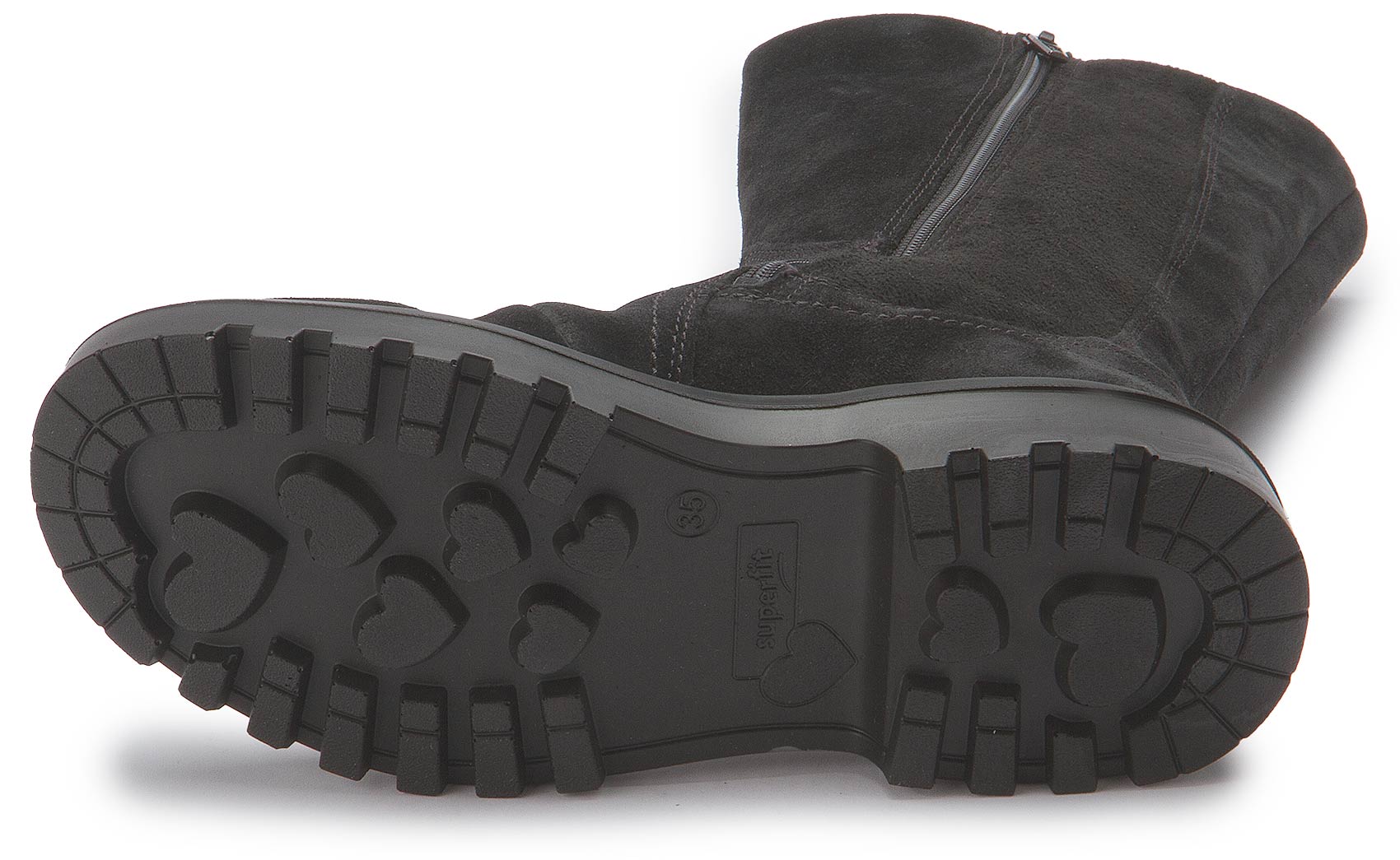 Perfekt für die kommenden Herbsttage präsentiert sich dieser modische Stiefel von Superfit in Velours. Dank Sympatex ist der Schuh wasser- und windabweisend. Der Reißverschluss macht das Reinschlüpfen zum Kinderspiel. Durch die Schnalle an der Außenseite und die Nietenapplikationen sind sie der Hingucker in jedem Outfit.