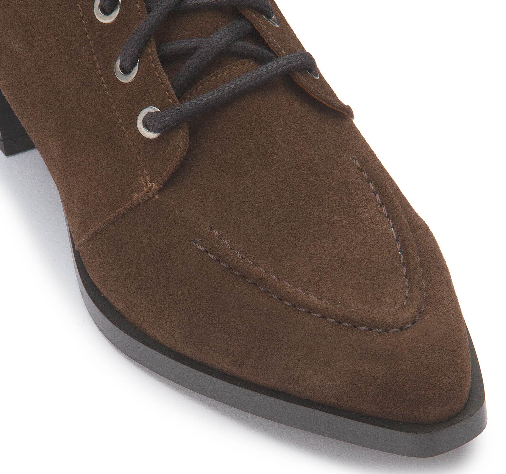 Zeitlos schlicht und stilvoll: Die Bariello Stiefelette aus softem, braunem Rauleder überzeugt mit puristischem Design und einem komfortablen Blockabsatz. Dank der Kombination aus seitlichem Reißverschluss und Schnürung lässt sie sich mühelos an- und ausziehen. Dezente Details runden den vielseitig kombinierbaren Look perfekt ab.