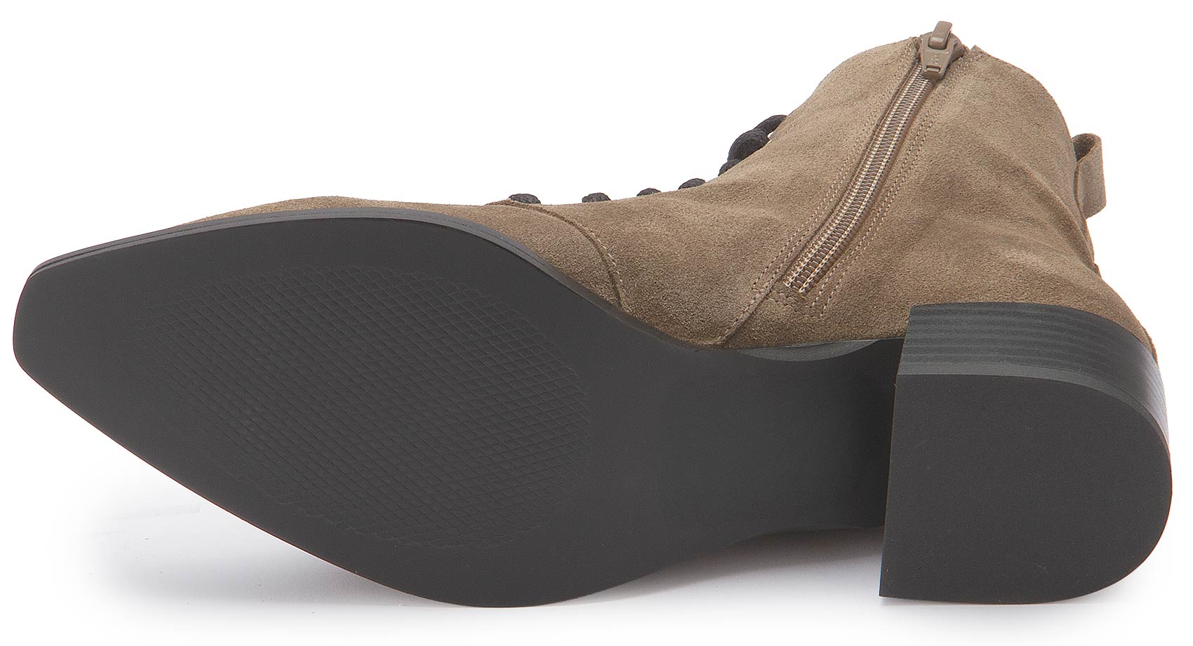Zeitlos schlicht und stilvoll: Die Bariello Stiefelette aus softem, braunem Rauleder überzeugt mit puristischem Design und einem komfortablen Blockabsatz. Dank der Kombination aus seitlichem Reißverschluss und Schnürung lässt sie sich mühelos an- und ausziehen. Dezente Details runden den vielseitig kombinierbaren Look perfekt ab.