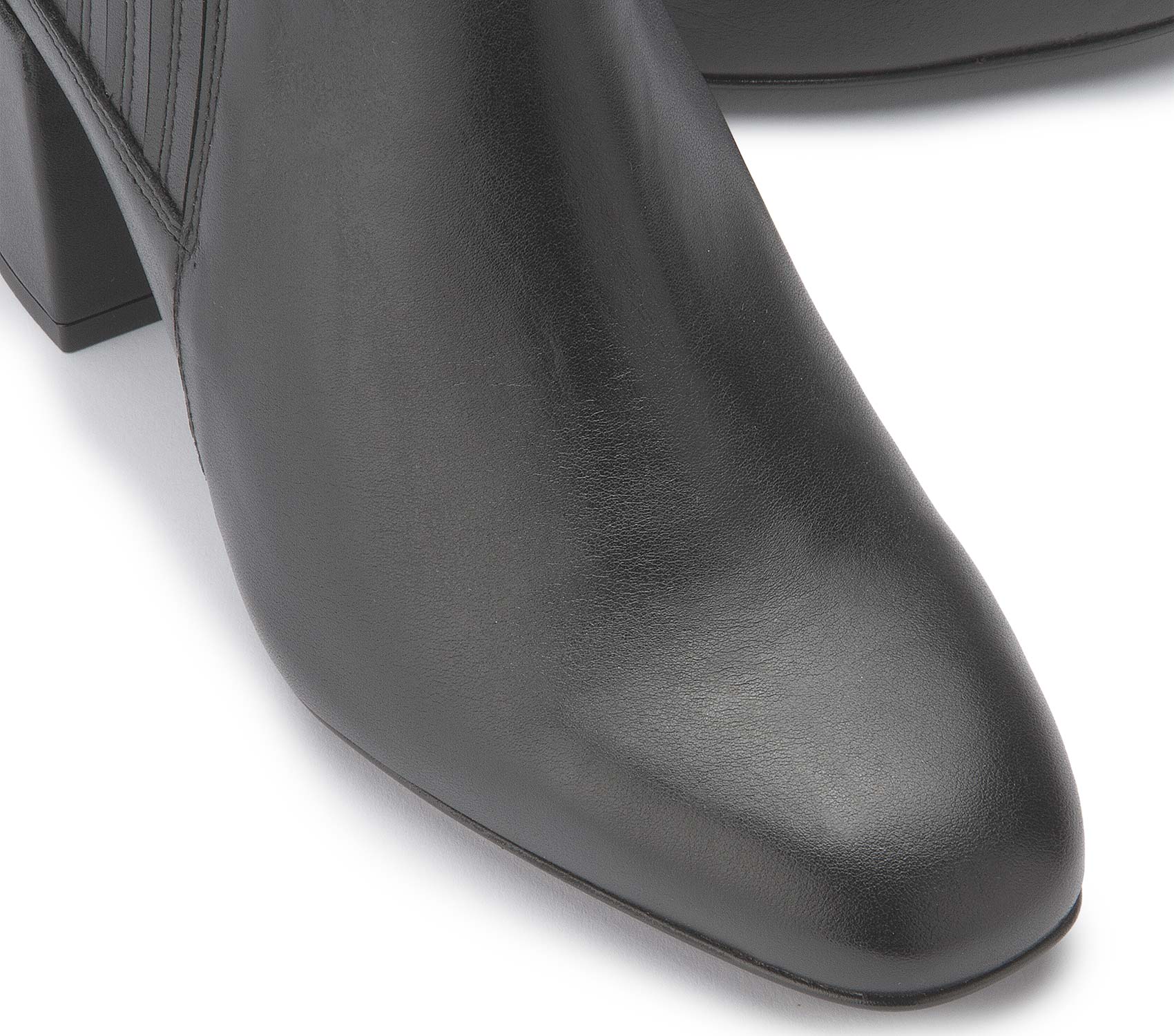 Diese stilvolle Stiefelette von Bariello besticht durch seine klassiche Farbgebung und klare Linienführung. Der breite Blockabsatz sorgt für einen sicheren Auftritt, während das hochwertige Leder und die seitlichen Stretch-Einsätze Komfort und Eleganz perfekt verbinden.