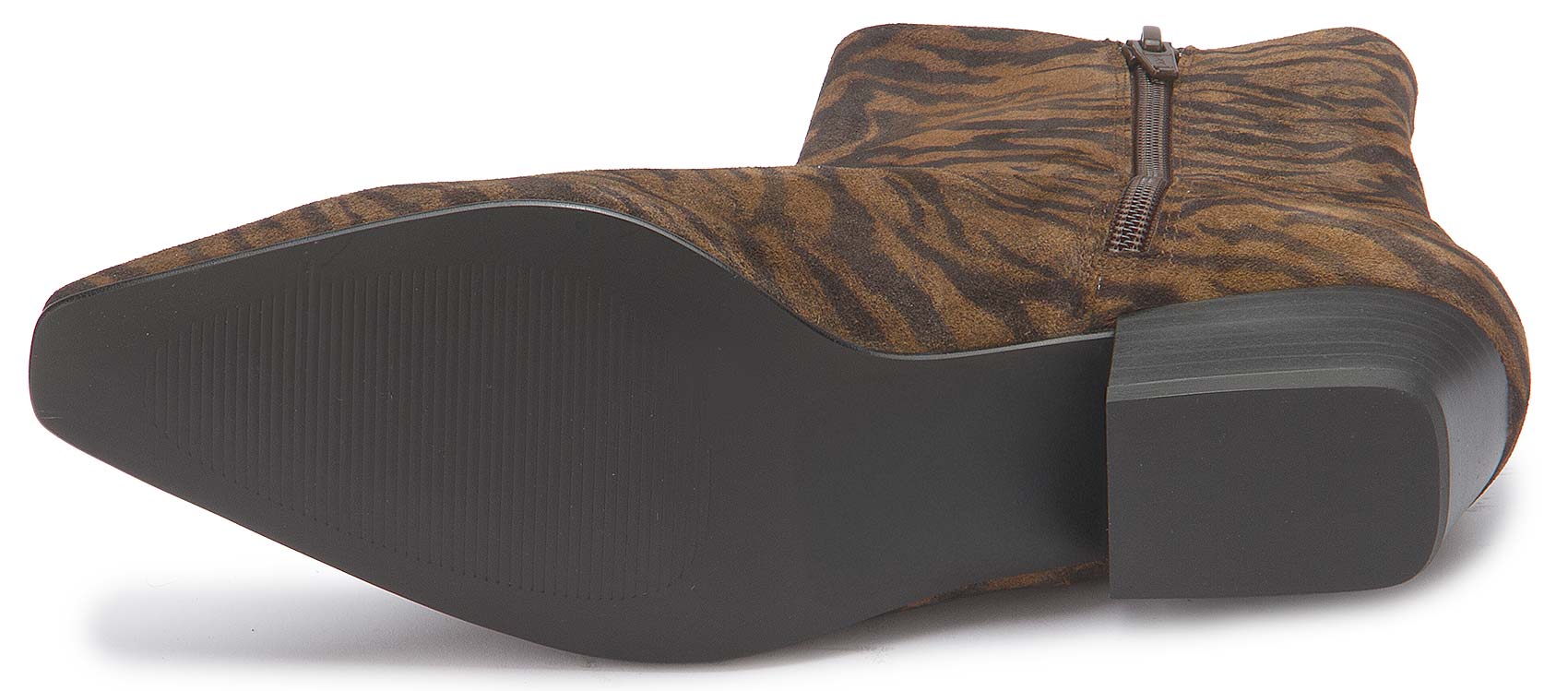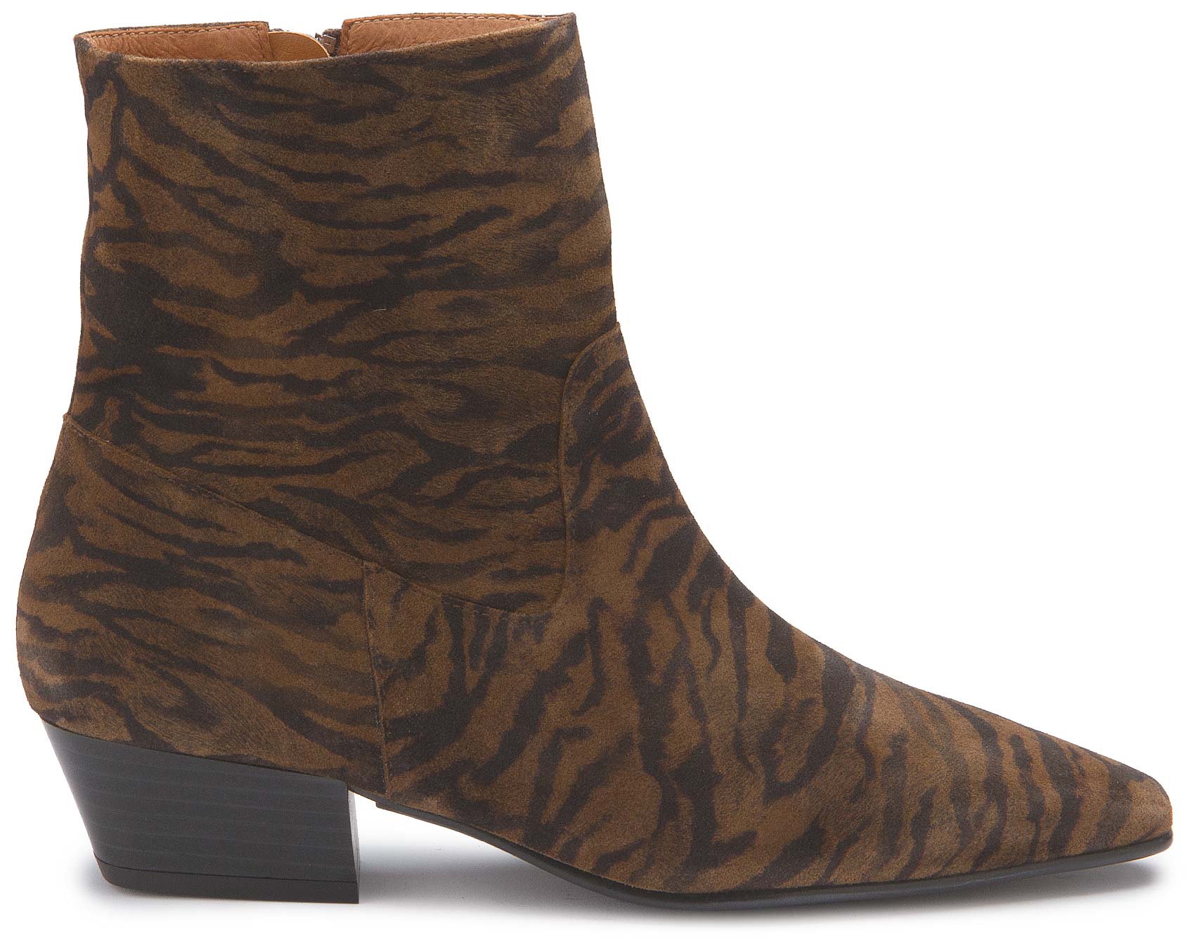 Ein Statement-Piece mit Wild-Charme: Diese Stiefeletten von Bariello überzeugt mit einem markanten Zebraprint auf feinem Rauleder. Die spitz zulaufende Form und der seitliche Reißverschluss runden das Design stilvoll ab – perfekt für mutige Looks mit Charakter.
