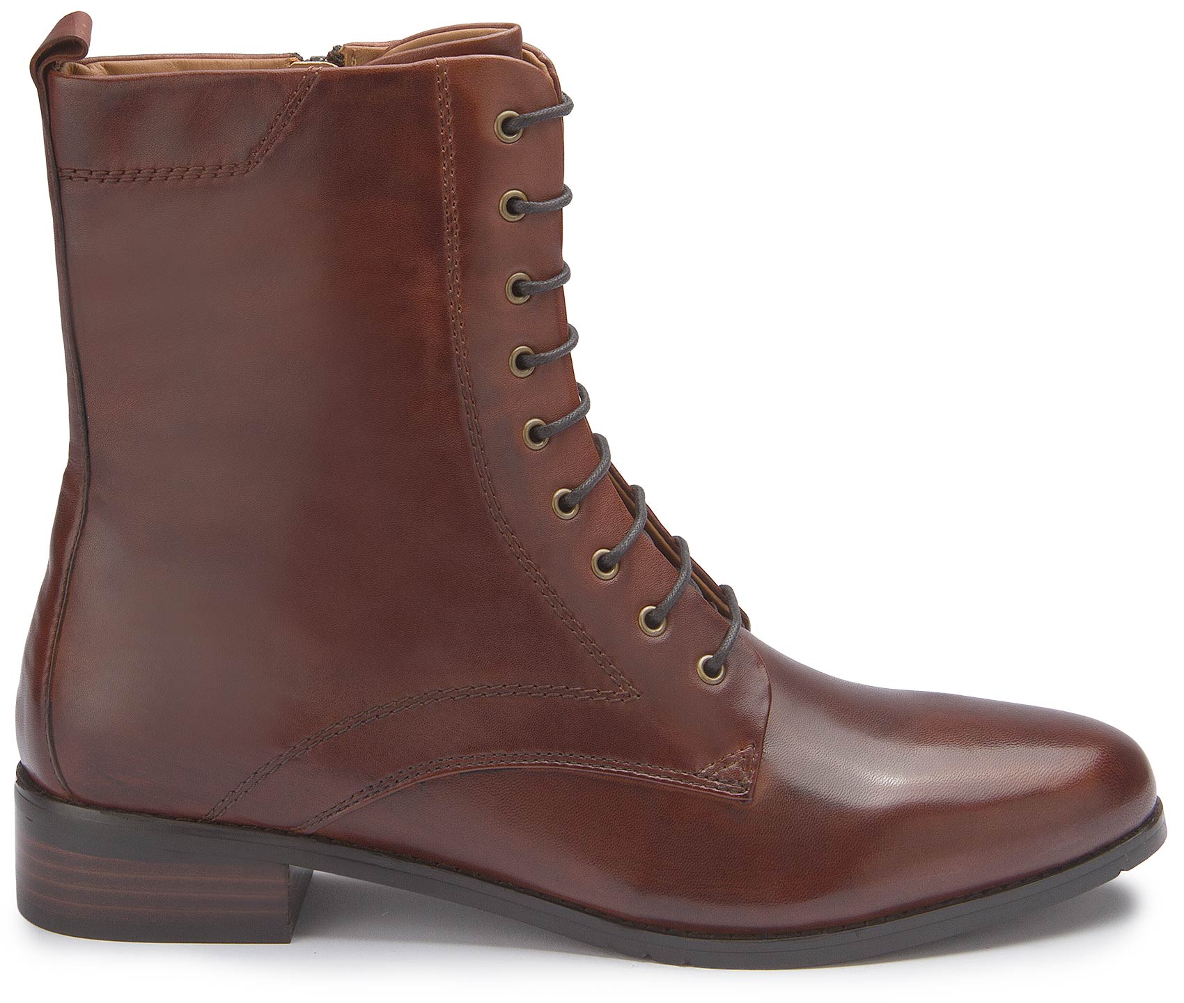 Diese eleganten Stiefeletten aus braunem Glattleder überzeugen mit einem zeitlosen Design. Die klassische Schnürung verleiht ihnen eine edle Note, während der seitliche Reißverschluss für bequemes An- und Ausziehen sorgt. Perfekt kombinierbar zu Business- und Freizeit-Looks.