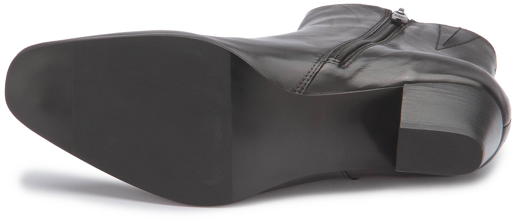 Diese eleganten schwarzen Leder-Stiefeletten vereinen zeitloses Design mit modernem Komfort. Der seitliche Reißverschluss sorgt für bequemes An- und Ausziehen, während der blockige Absatz einen sicheren und stilvollen Auftritt garantiert. Perfekt kombinierbar für Büro, Alltag oder Abendlooks.