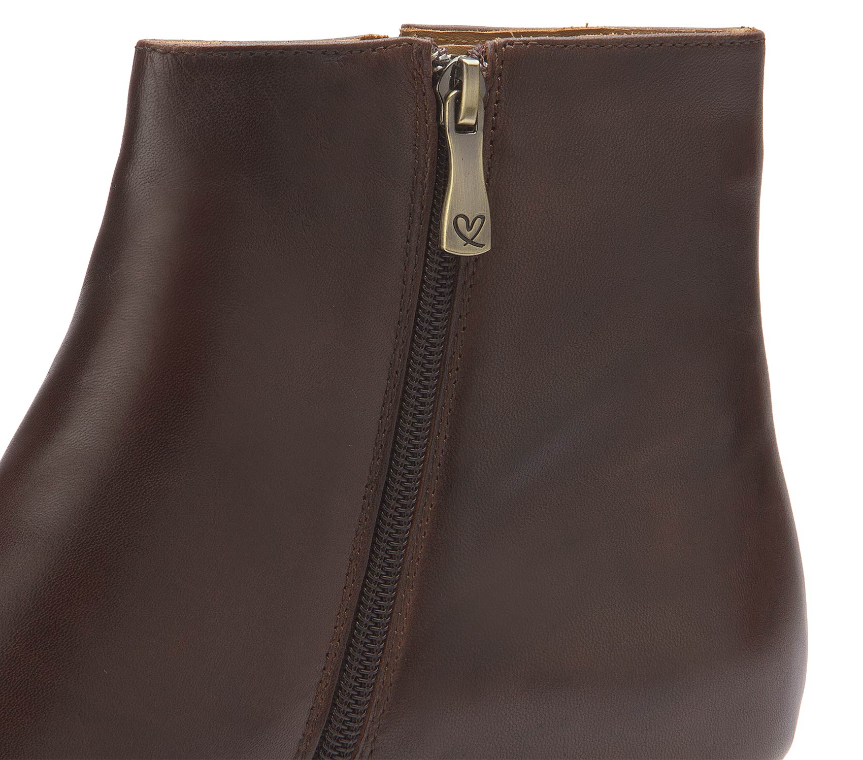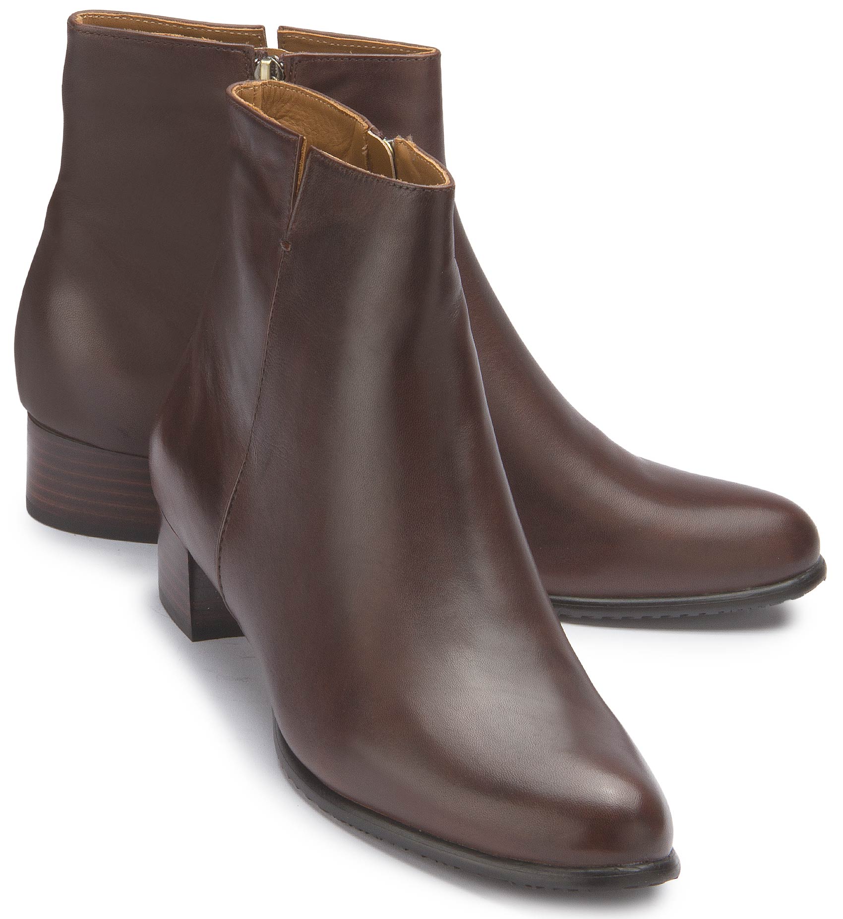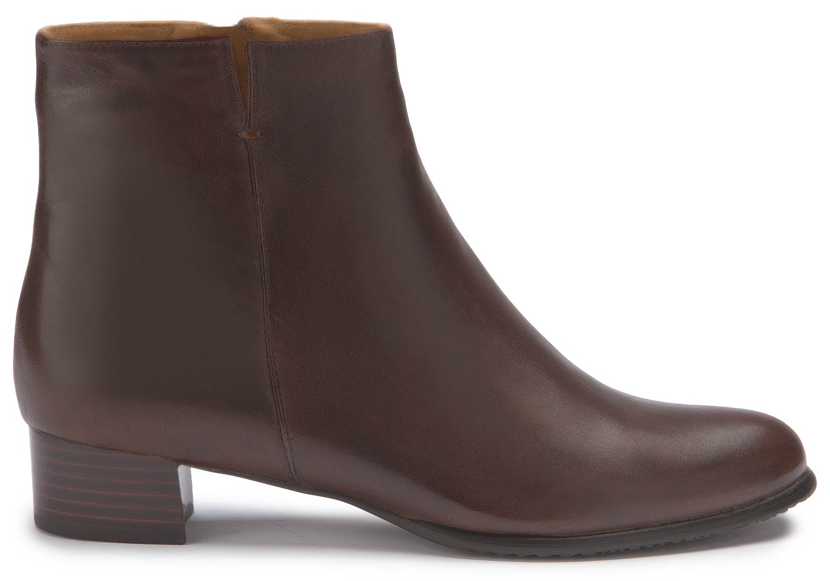 Diese eleganten Stiefeletten in edlem Braun überzeugen durch ihre klare Linienführung und zeitlose Schlichtheit. Der komfortable Blockabsatz sorgt für angenehmes Tragegefühl, während der seitliche Reißverschluss ein bequemes An- und Ausziehen ermöglicht. Ideal für vielseitige Alltags- und Business-Looks.