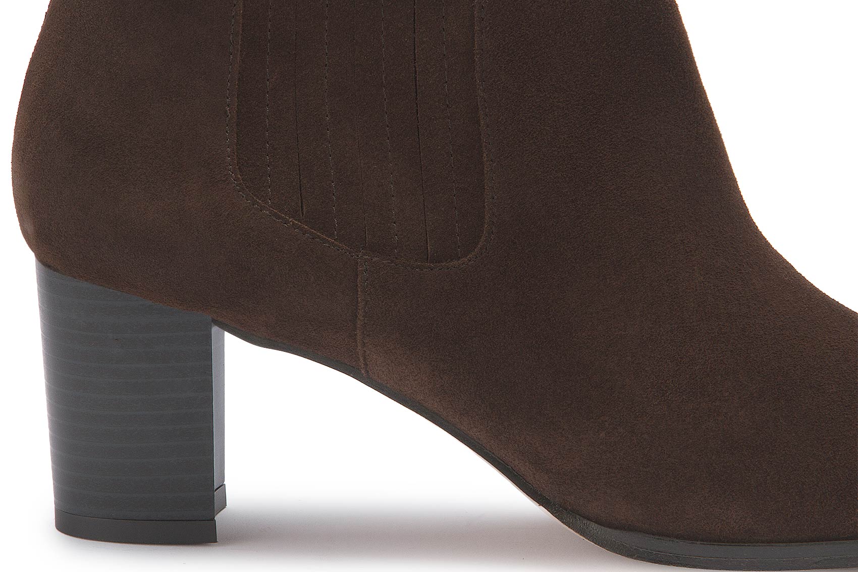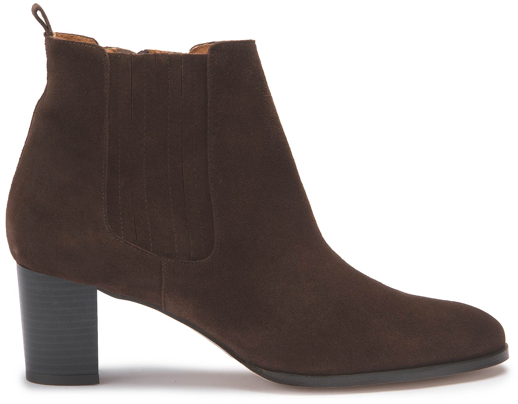 Diese eleganten Stiefeletten in Dunkelbraun überzeugen mit klarer Linienführung und einem modernen Blockabsatz. Dank seitlicher Elastikeinsätze und Reißverschluss bieten sie angenehmen Tragekomfort und einen sicheren Halt. Ein vielseitiger Klassiker, der sich besonders gut für stilvolle Herbst-Looks eignet.