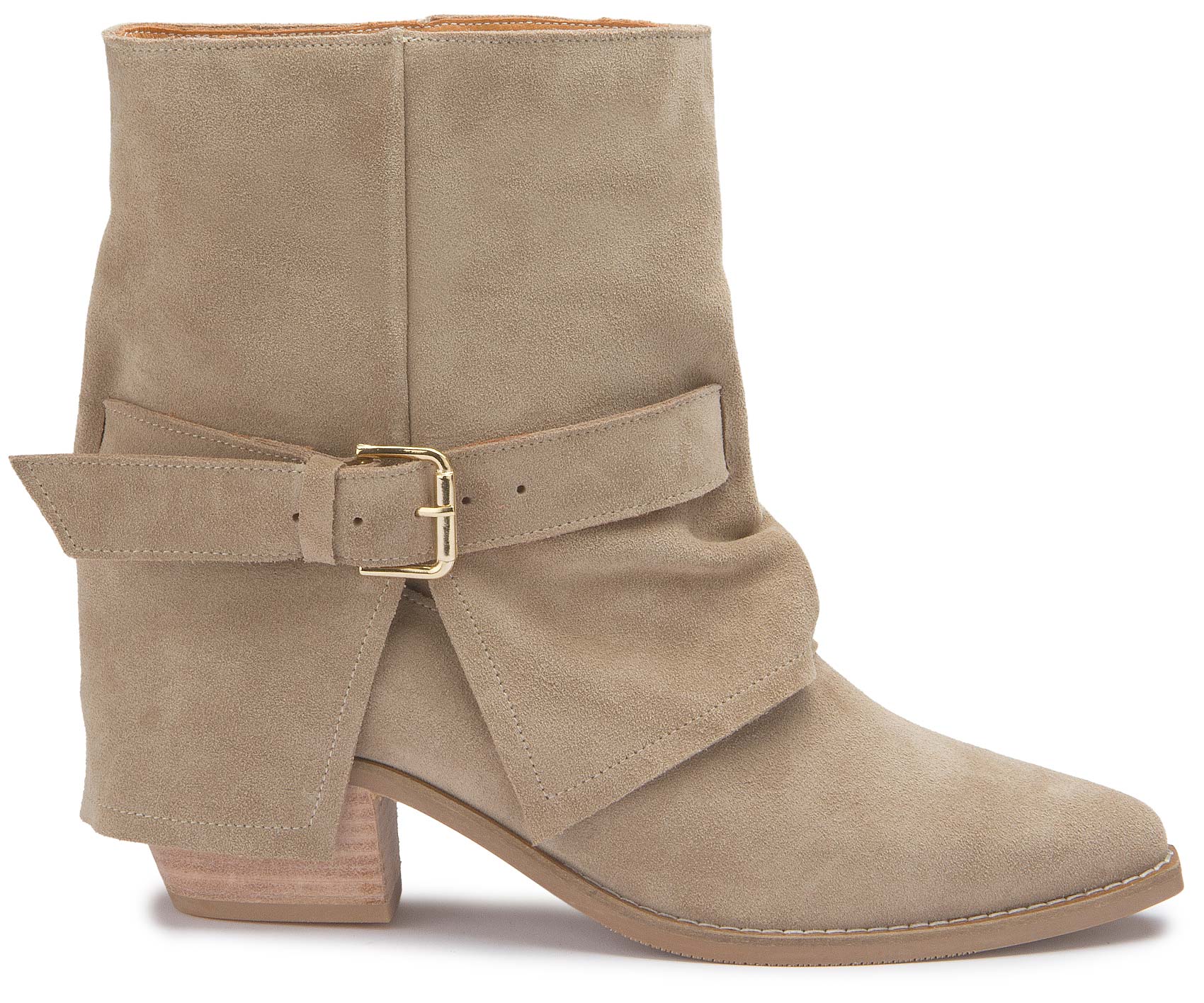 Diese stylischen Stiefeletten von Miotti aus hochwertigem Rauleder überzeugen mit ihrem lässig-eleganten Look. Die weiche, beige Oberfläche und der seitliche Ziergürtel mit goldener Schnalle verleihen dem Schuh eine edle Note. Dank des bequemen Blockabsatzes und der flexiblen Laufsohle bieten sie optimalen Tragekomfort für den Alltag.