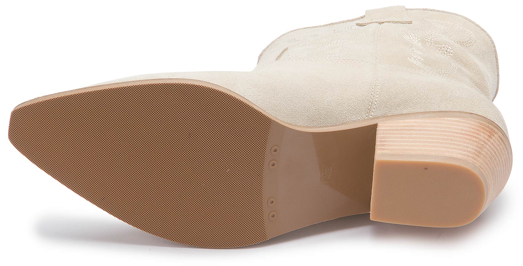 Ob bei Festivals oder bei besonderen Anlässen – mit dem modischen Westernboot von Miotti triffst du stets den richtigen Ton in Sachen Stil! Gefertigt aus geschmeidigem, besticktem beigem Leder, kombiniert er authentisches Design mit herausragendem Tragekomfort und langer Lebensdauer. Die kunstvollen Stickereien verleihen dem Boot eine unverwechselbare Note und setzen ein klares Fashion-Statement. Zeige deine Abenteuerlust und tauche ein in den Charme des Westens – trendbewusst, zeitlos und voller Eleganz!