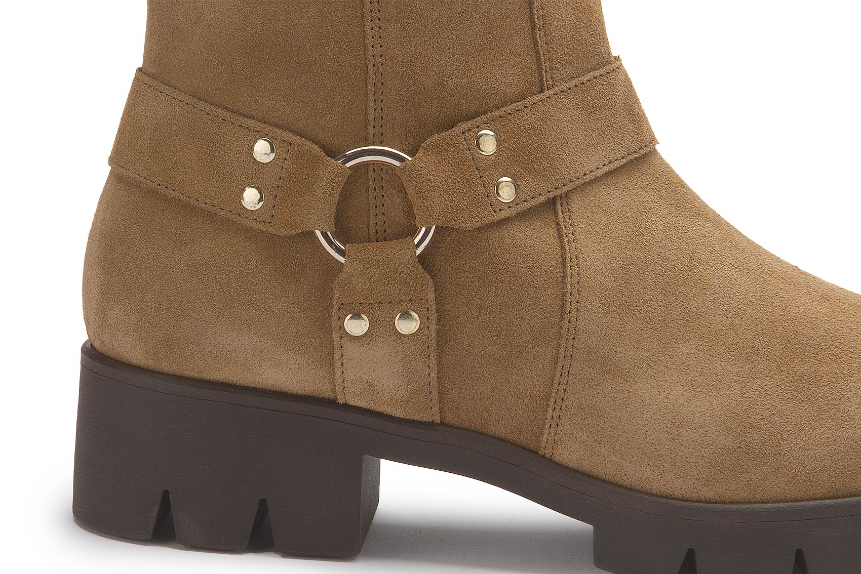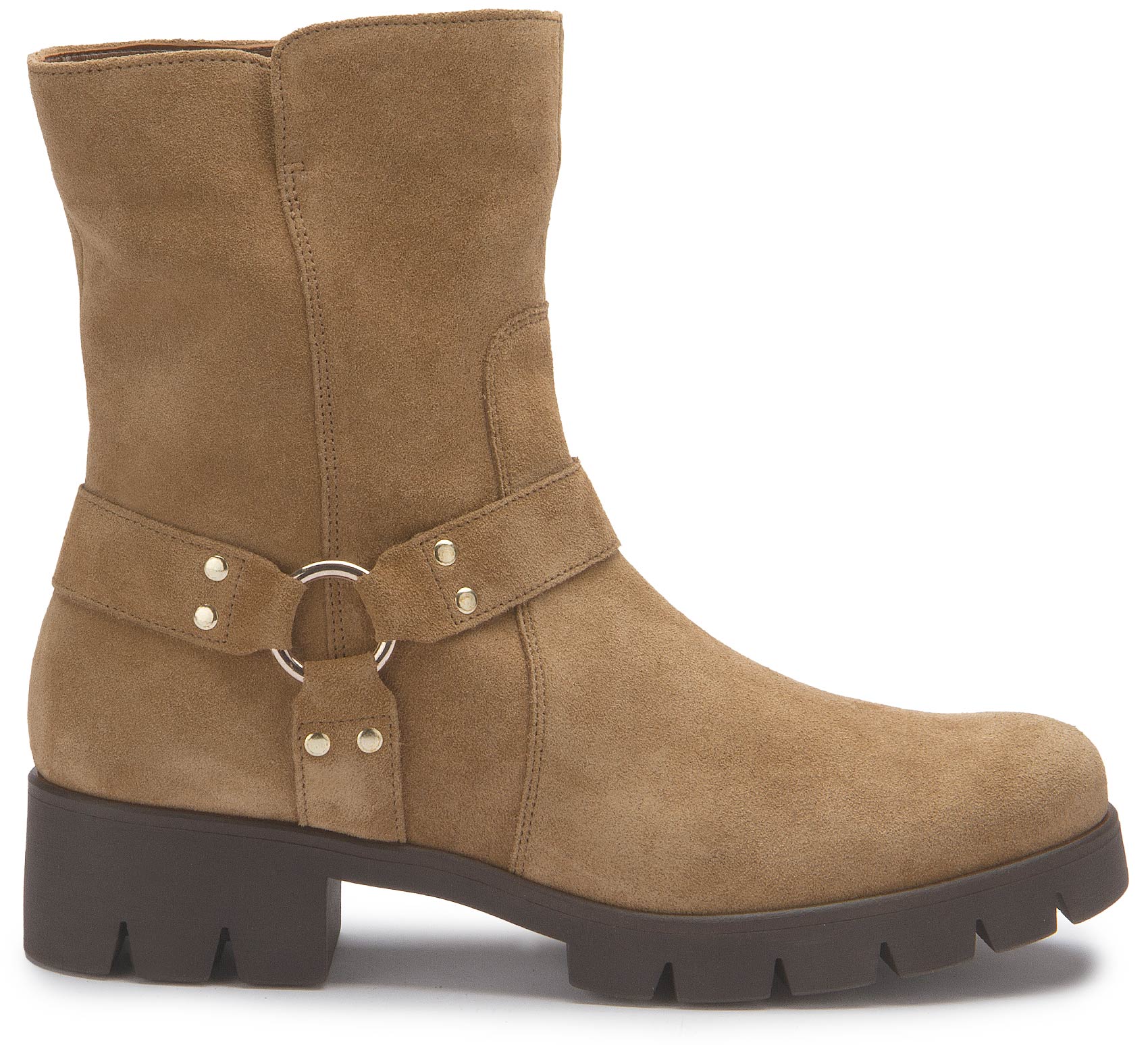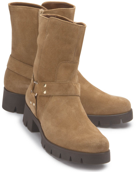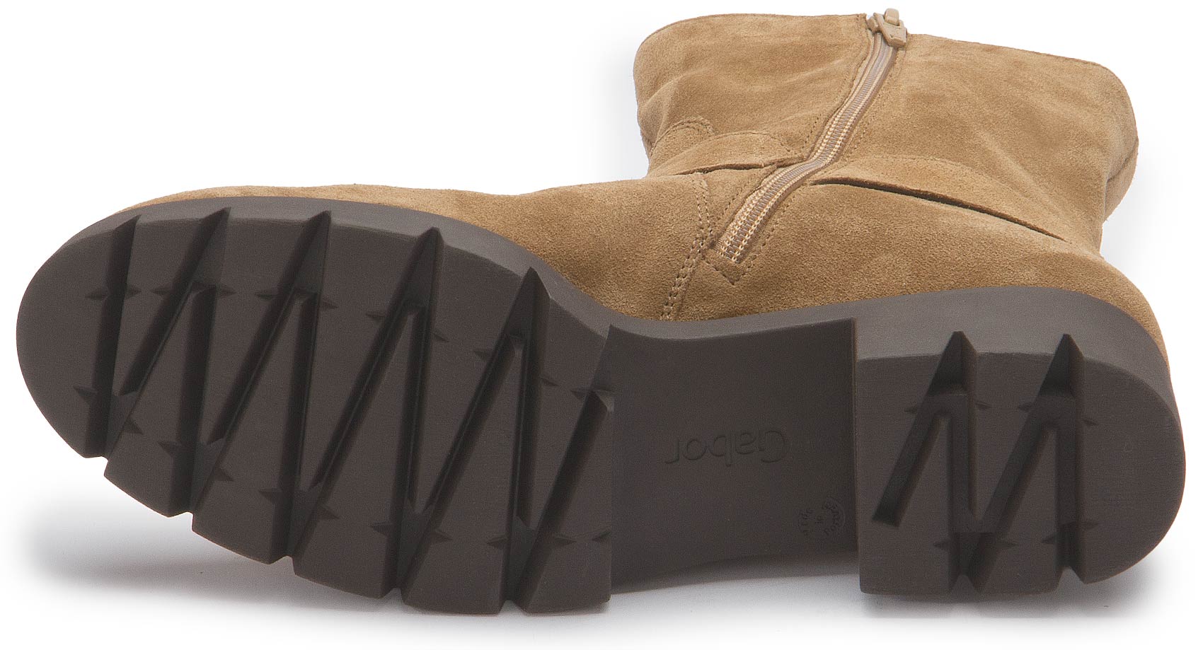 Der beige Wildlederboot von Gabor überzeugt durch seine robuste Eleganz und hochwertige Verarbeitung. Die weiche Wildlederoberfläche sorgt für einen edlen Look, während der seitliche Reißverschluss das An- und Ausziehen erleichtert. Der breite, profilierte Blockabsatz bietet hervorragenden Halt und Komfort, ideal für den täglichen Einsatz. Die dekorativen Nieten verleihen dem Boot eine modische Note. Perfekt kombinierbar für Freizeit und Alltag, ist dieser Boot ein vielseitiger und stilvoller Begleiter.