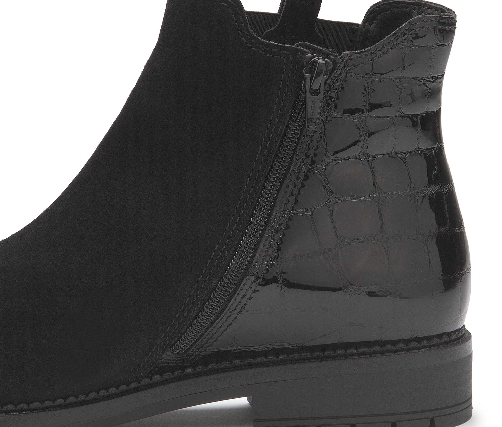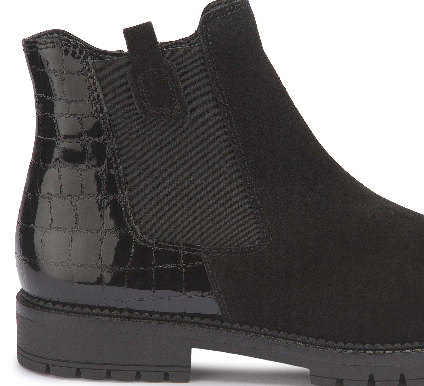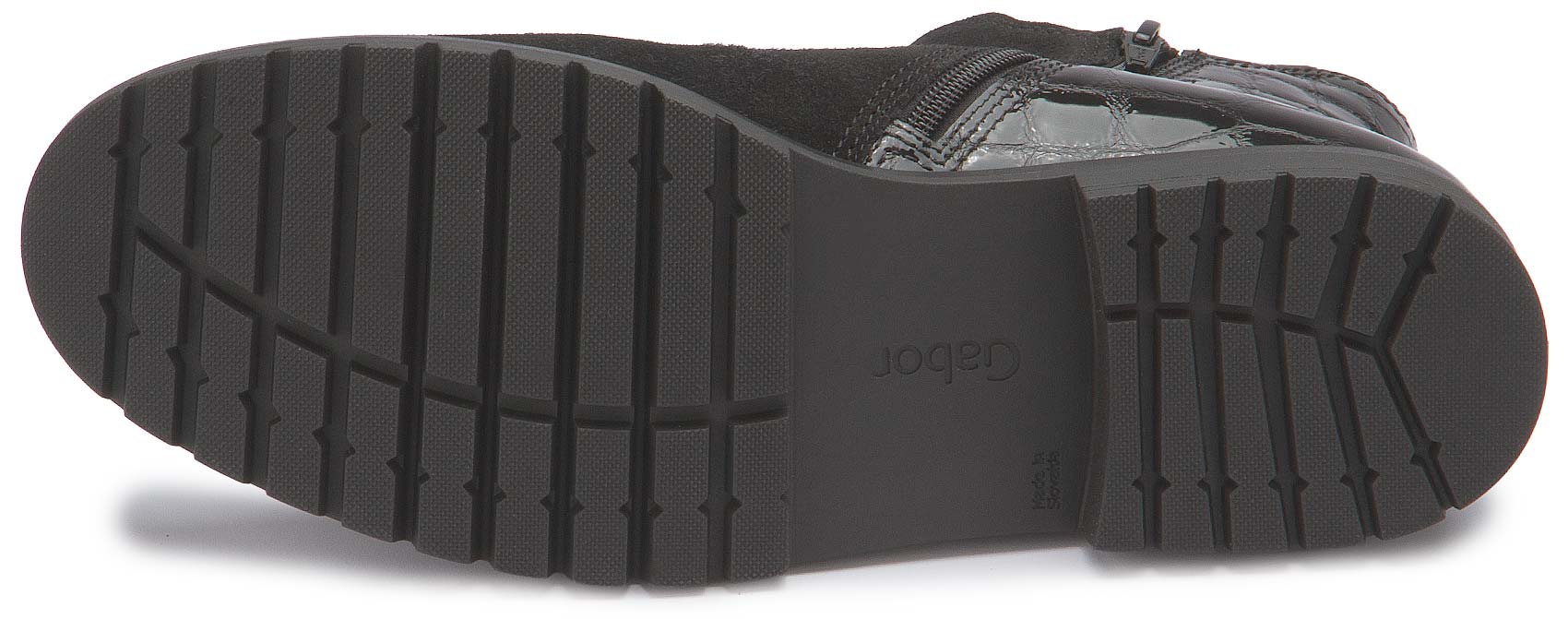 Die komfortable Gabor Stiefelette in H-Weite bietet dank Wechselfußbett höchsten Tragekomfort und individuelle Anpassung. Gefertigt aus edlem Rauleder, wird sie durch eine texturierte Fersenkappe stilvoll akzentuiert. Ein seitlicher Elastikeinsatz erleichtert das Anziehen, während die profilierte Sohle sicheren Halt auf jedem Untergrund gibt.