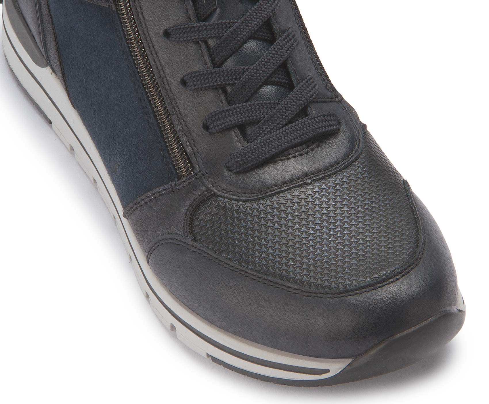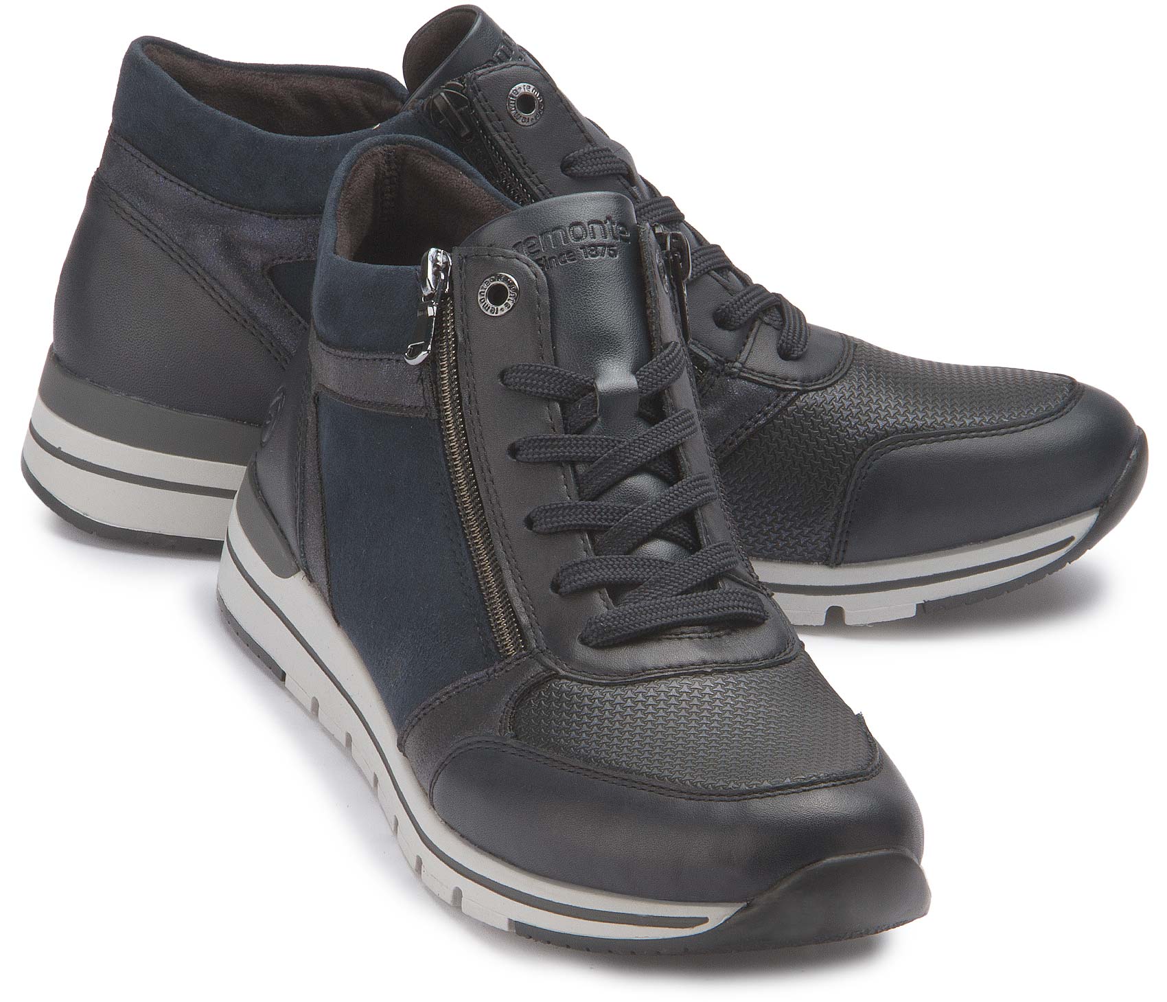 Maximal stylisch, maximal komfortabel! Diese blauen remonte Kurzstiefel für Damen aus Rauleder wissen genau, wie Style funktioniert. Die clevere Kombination aus Schnürung und Reißverschluss ermöglicht ein einfaches An- und Ausziehen. Eine griffige und leichte Sohle sowie die gepolsterte und herausnehmbare Einlegesohle sind weitere Argumente für diesen Kurzstiefel. Durch die Komfortweite ist dir mehr Freiraum im Schuh geboten. Die Innenfütterung aus atmungsaktivem Microvelour bietet lang anhaltenden Tragekomfort. Ganz nach dem Motto Komfort meets Style!